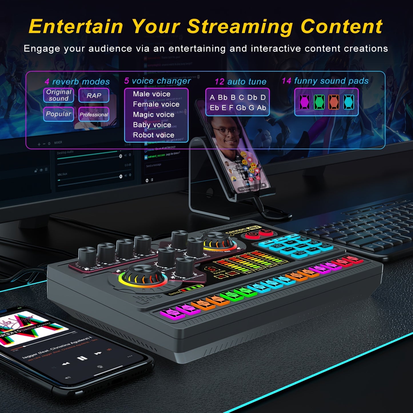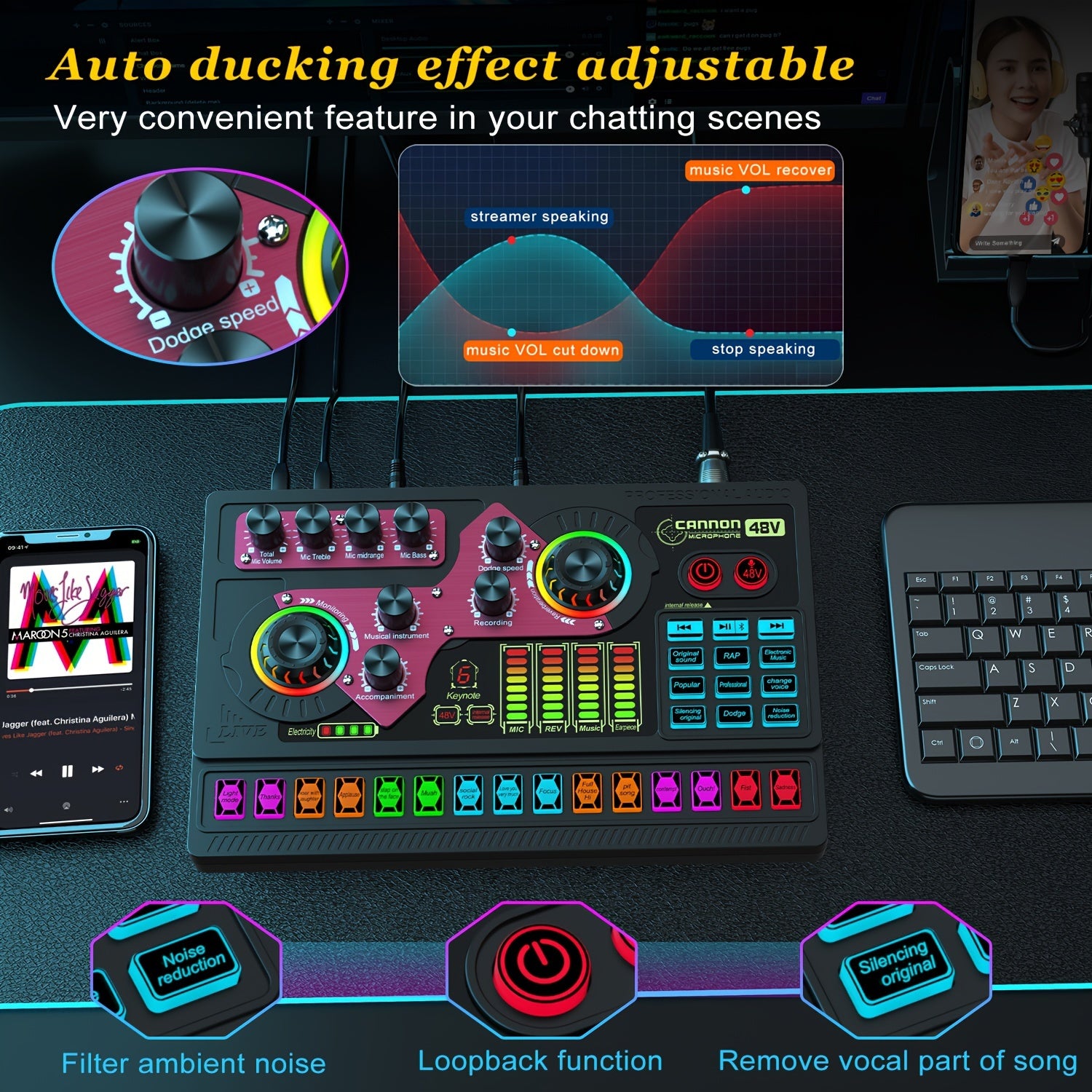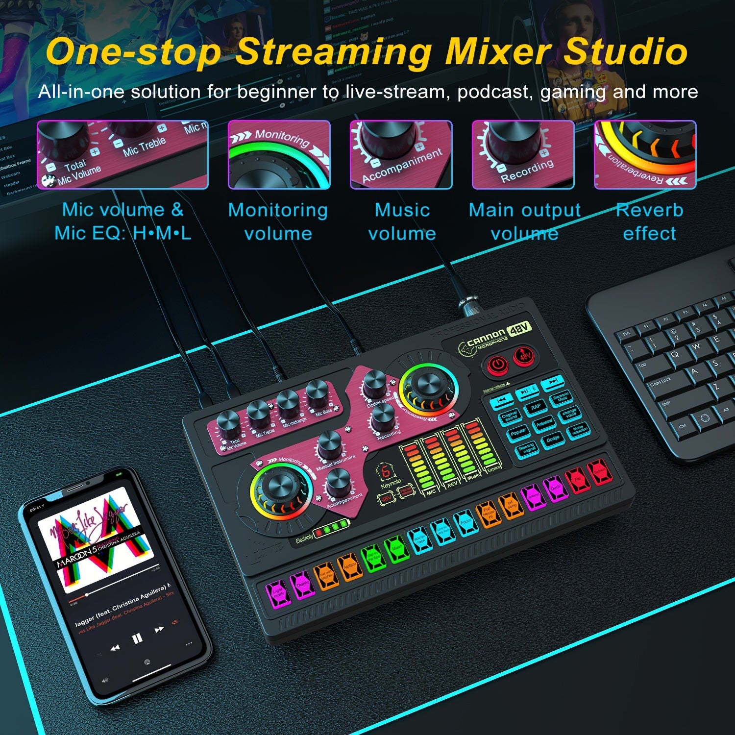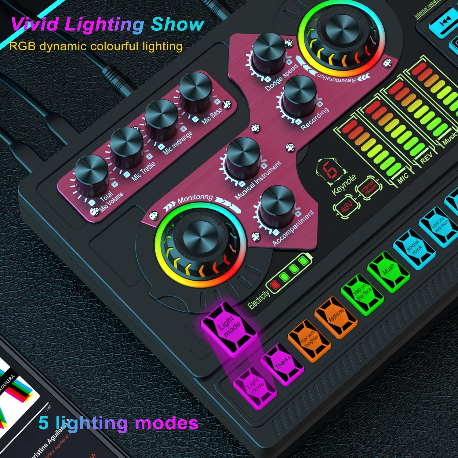 Ensemble d'équipement de podcast, interface audio X5 avec mixeur et effets vocaux, changeur de voix de carte son, mixeur audio de jeu, mixeur PC RVB de streaming avec interface de microphone XLR, studio tout-en-un mixeur DJ XLR pour téléphone PC diffusion