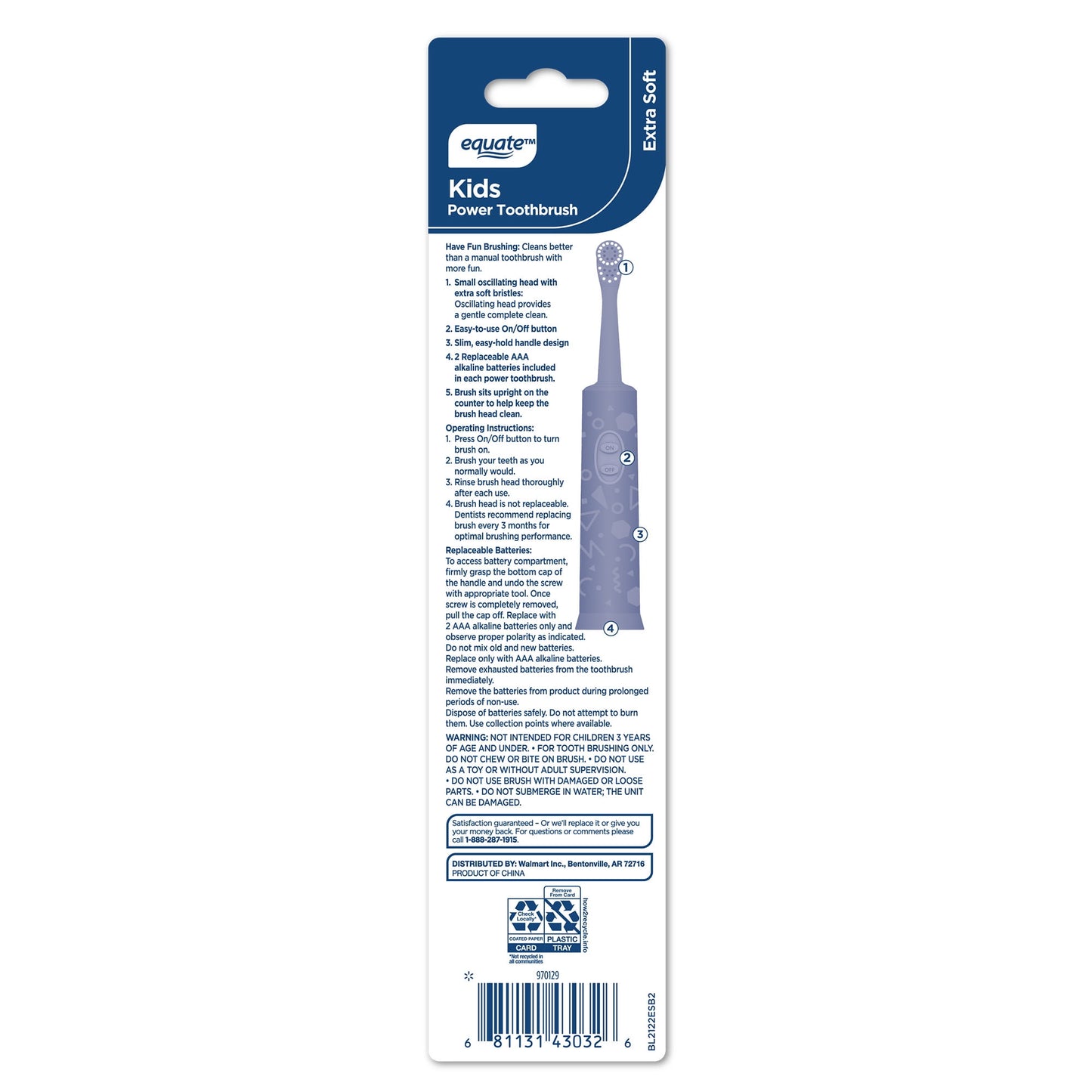 - INCLUDES: 1 Equate Kids Power Toothbrush and 2 AAA batteries