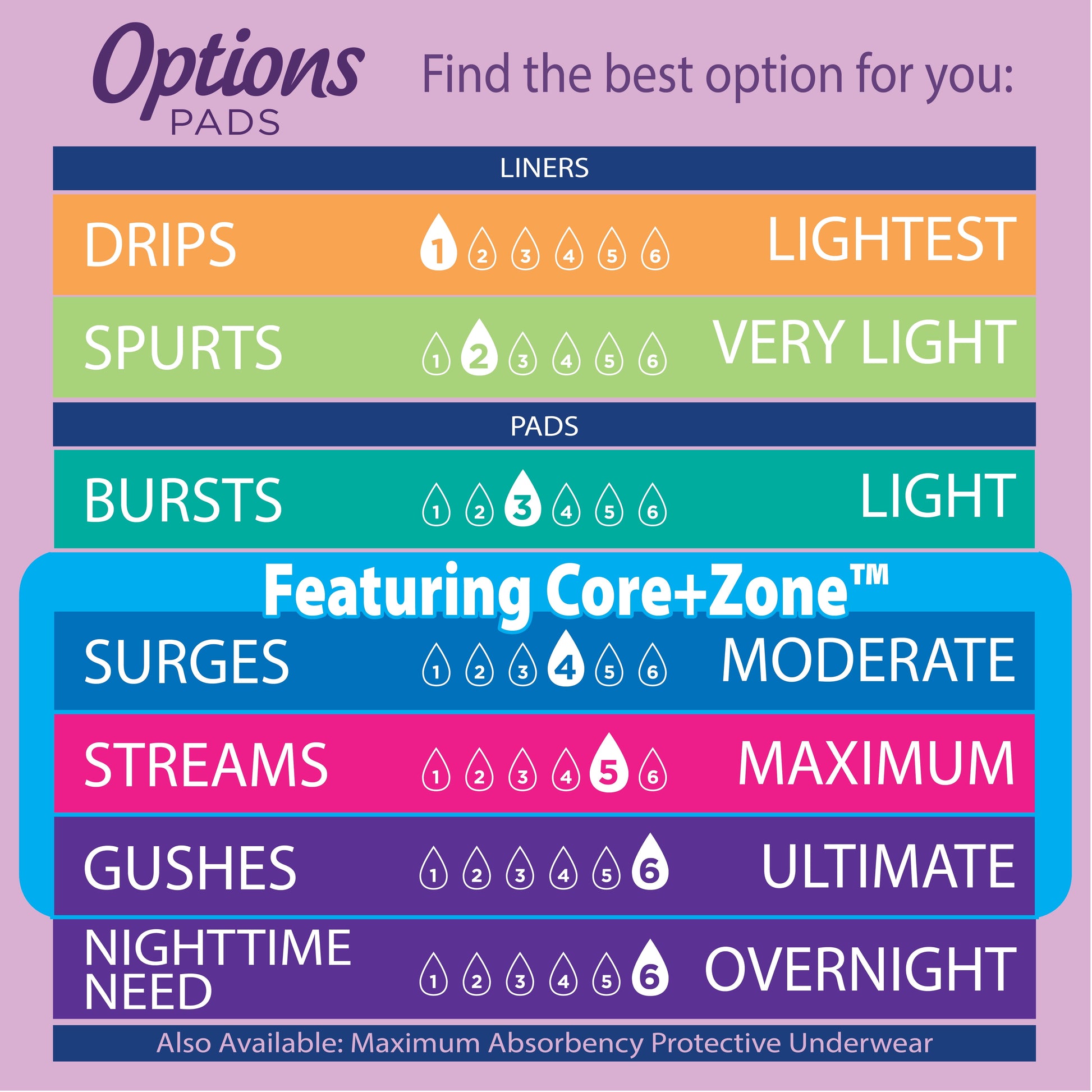 - Equate Options Women's Incontinence Pads, Ultimate Absorbency, Long Length (102 Count)