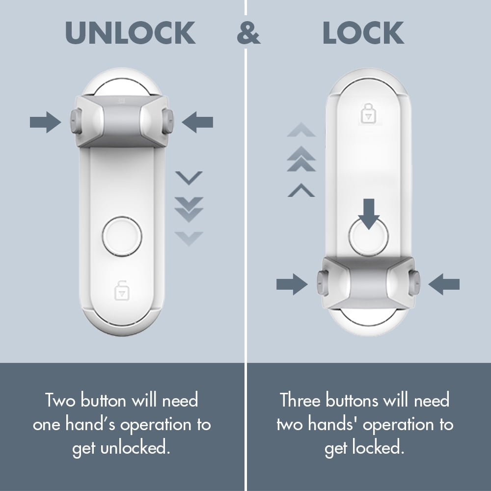 EUDEMON baby safety products help make your home a safer place for babies. Why need it? no more kids or pets locking you or themselves in a room, stop kids from getting into specific rooms like the toilets or the storerooms without adults' supervision. Prevent children from playing with the door and pinching their fingers. Tips - Definitely "Unlock" the safety lock when your child isn't around. Please make sure under the "Locking" and "Unlocking" positions, the arm can't be pushed up or down.
