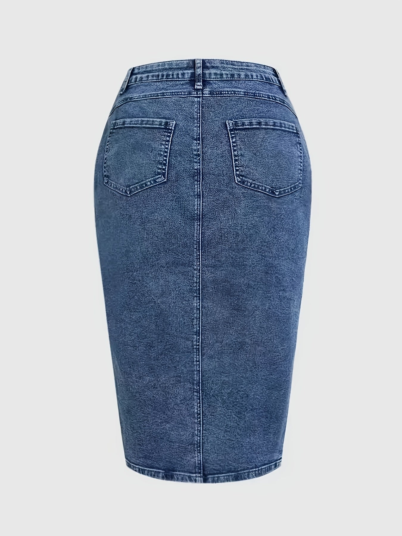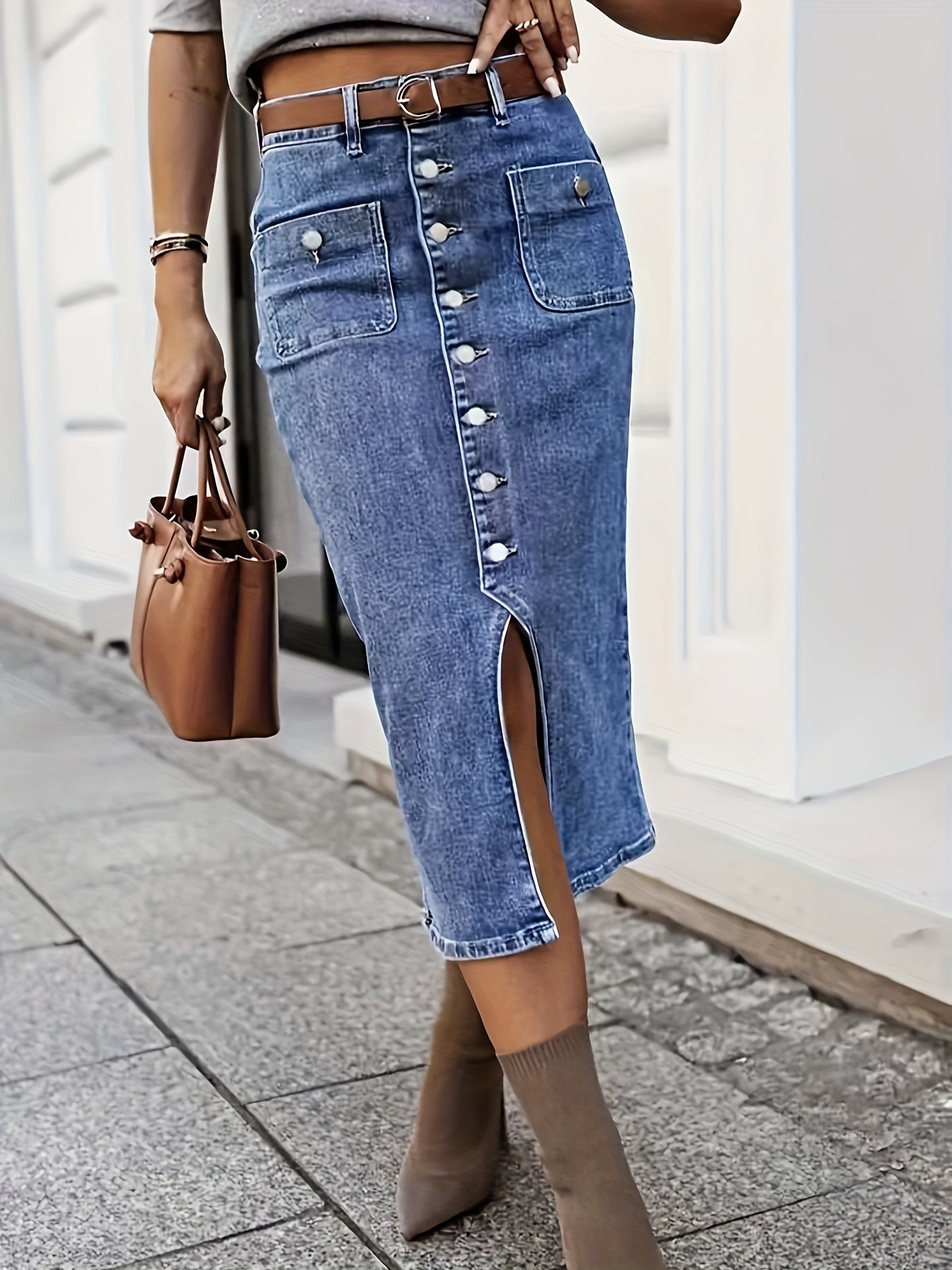 European And American Vintage Street Style High-Waisted Button-Front Mid-Length Denim Skirt