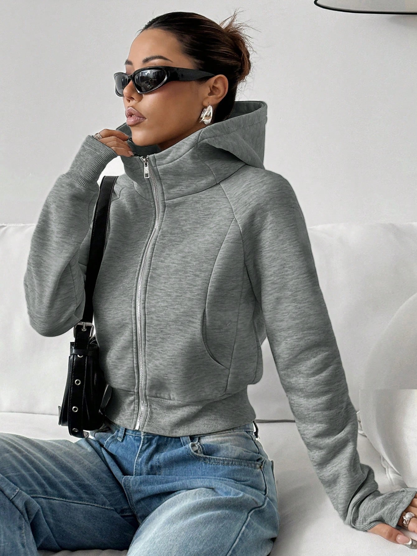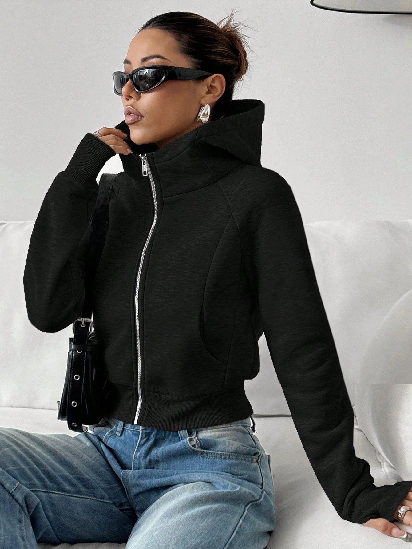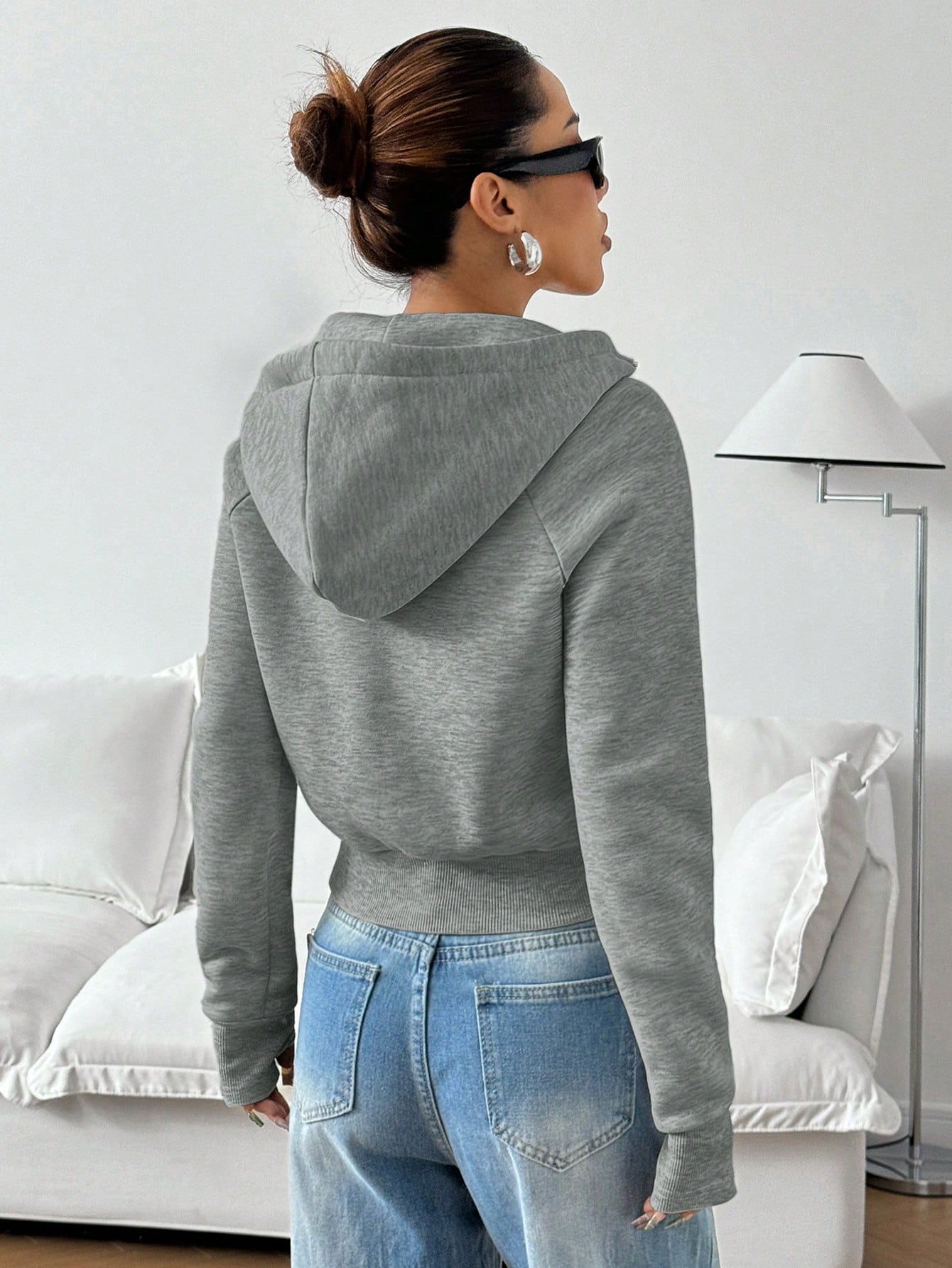EZwear Women Casual Everyday Zipper Front Hooded Pullover Sweatshirt With Raglan Sleeves, Autumn