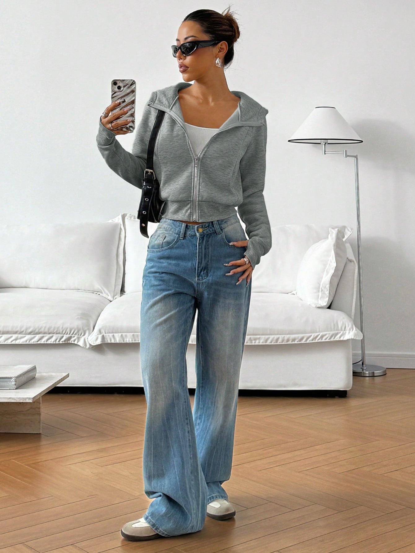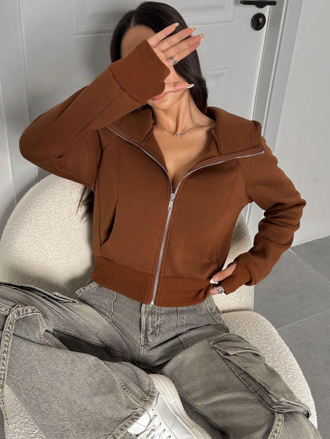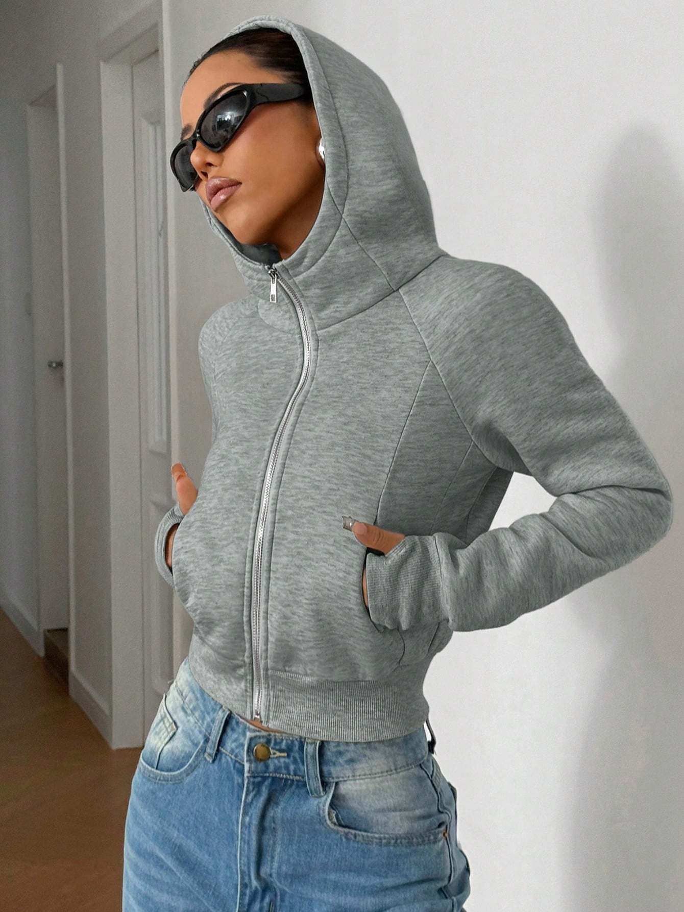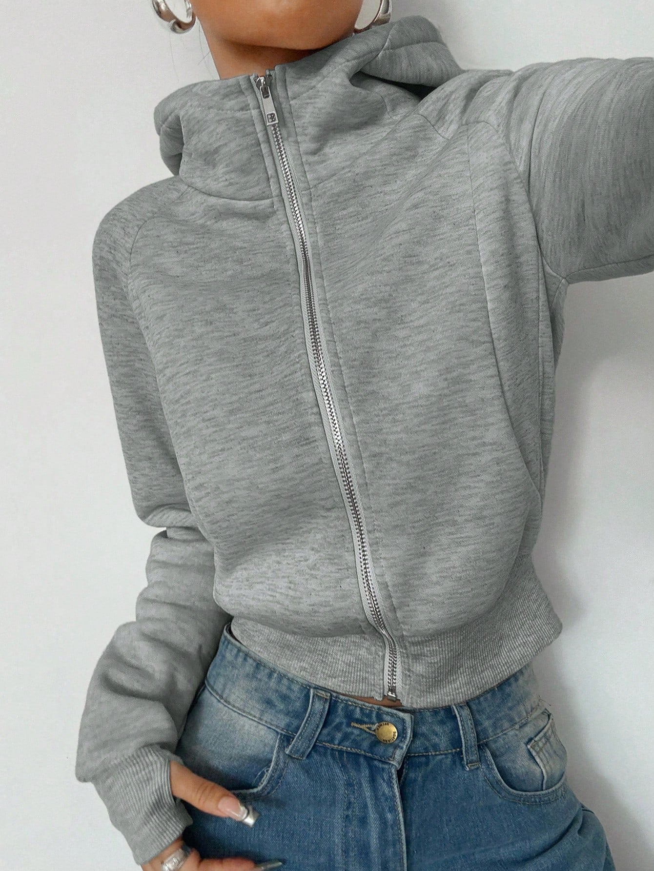 EZwear Women Casual Everyday Zipper Front Hooded Pullover Sweatshirt With Raglan Sleeves, Autumn