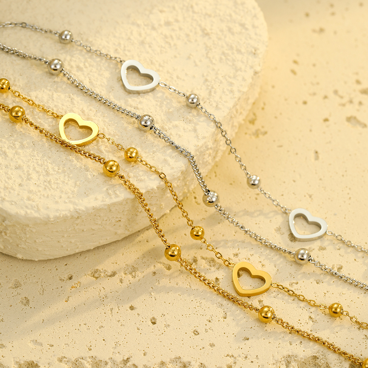 Fashionable Stainless Steel Double Layers Loving Heart Twin 18K Gold Non Fading Valentine Day Gift Bracelet