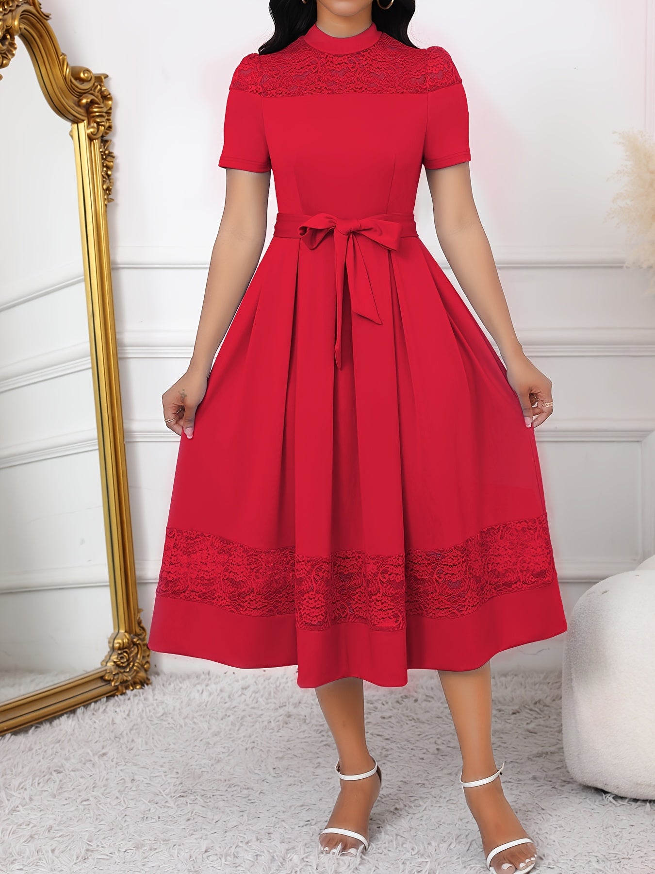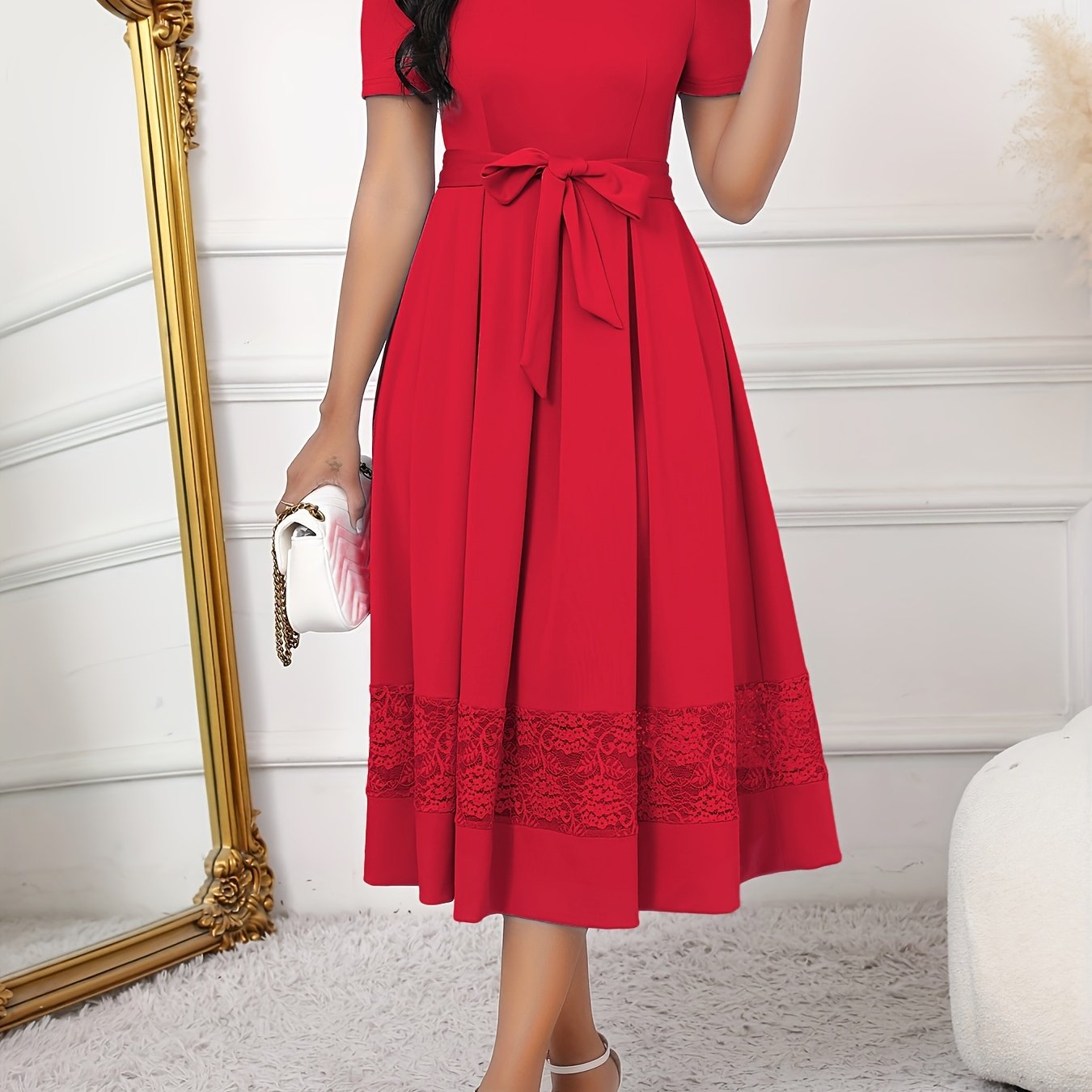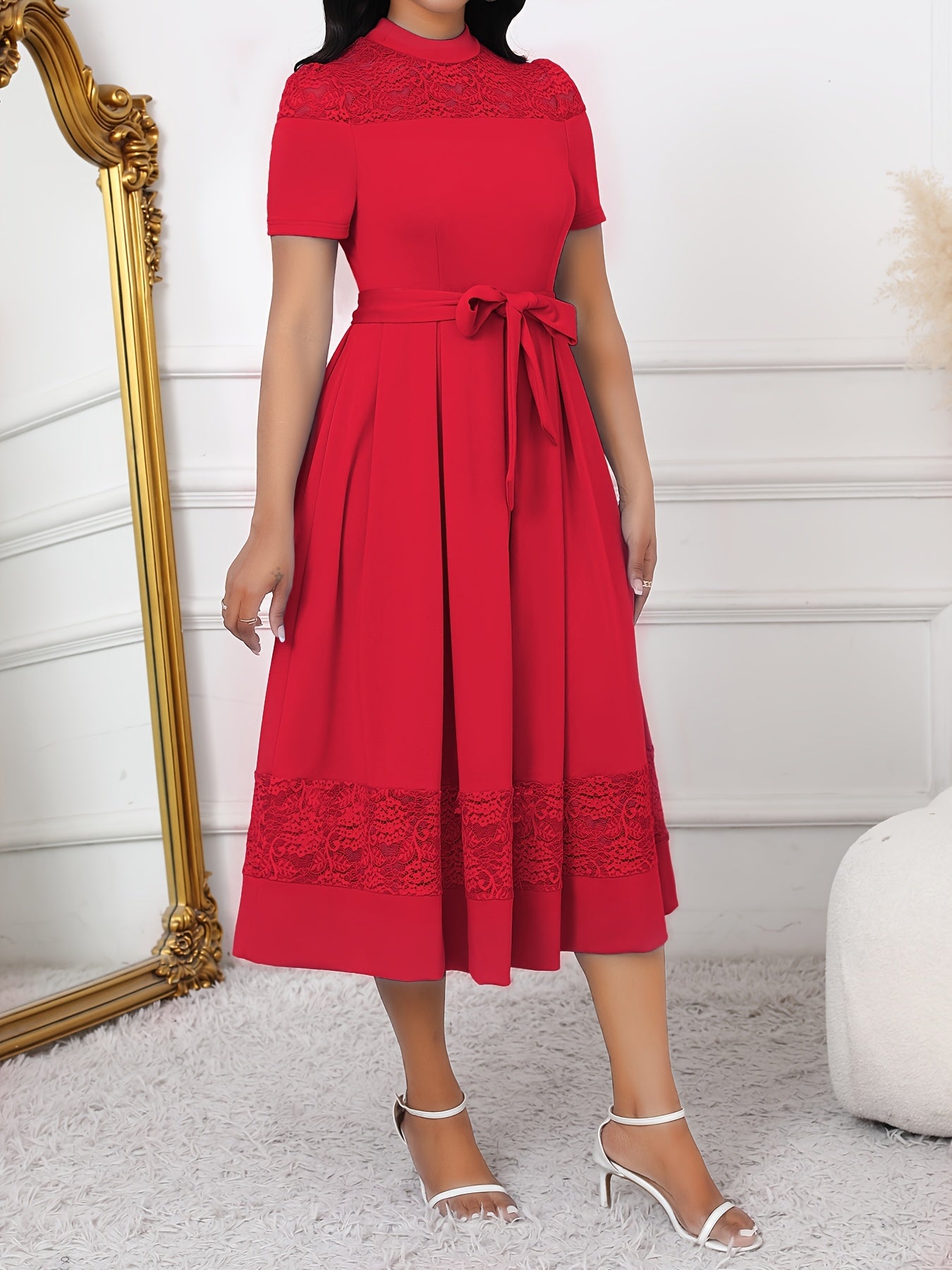 Fashionable Temperament, Elegant Slim Slim Lace Patchwork Dress, Belt HRYY078