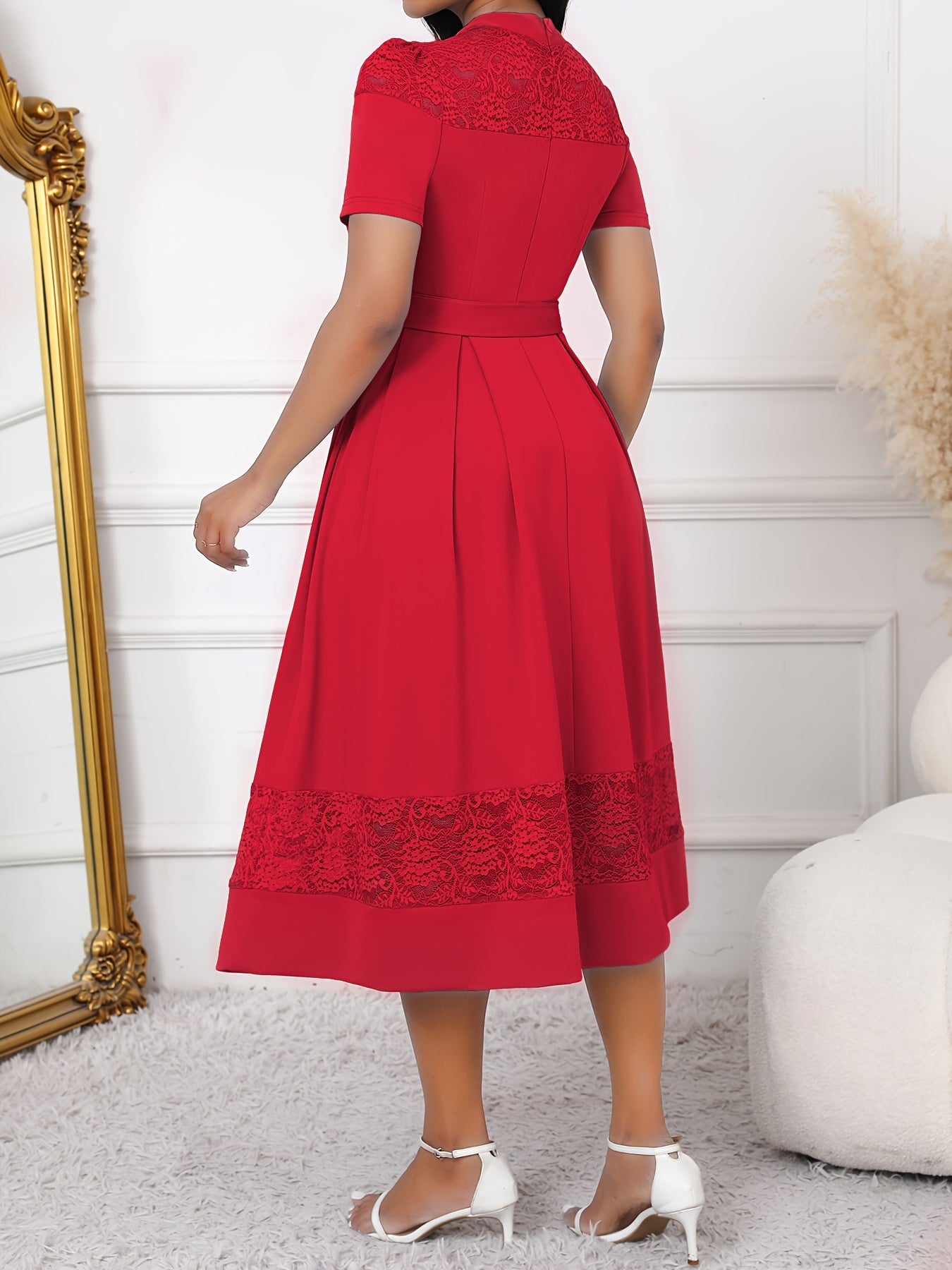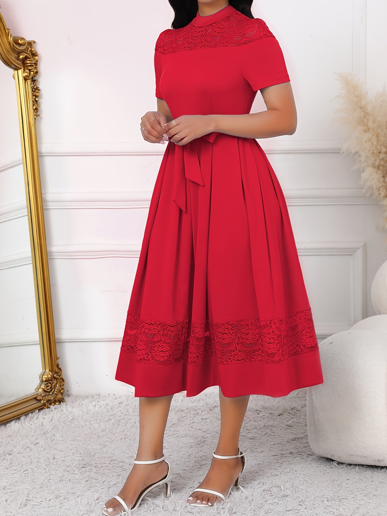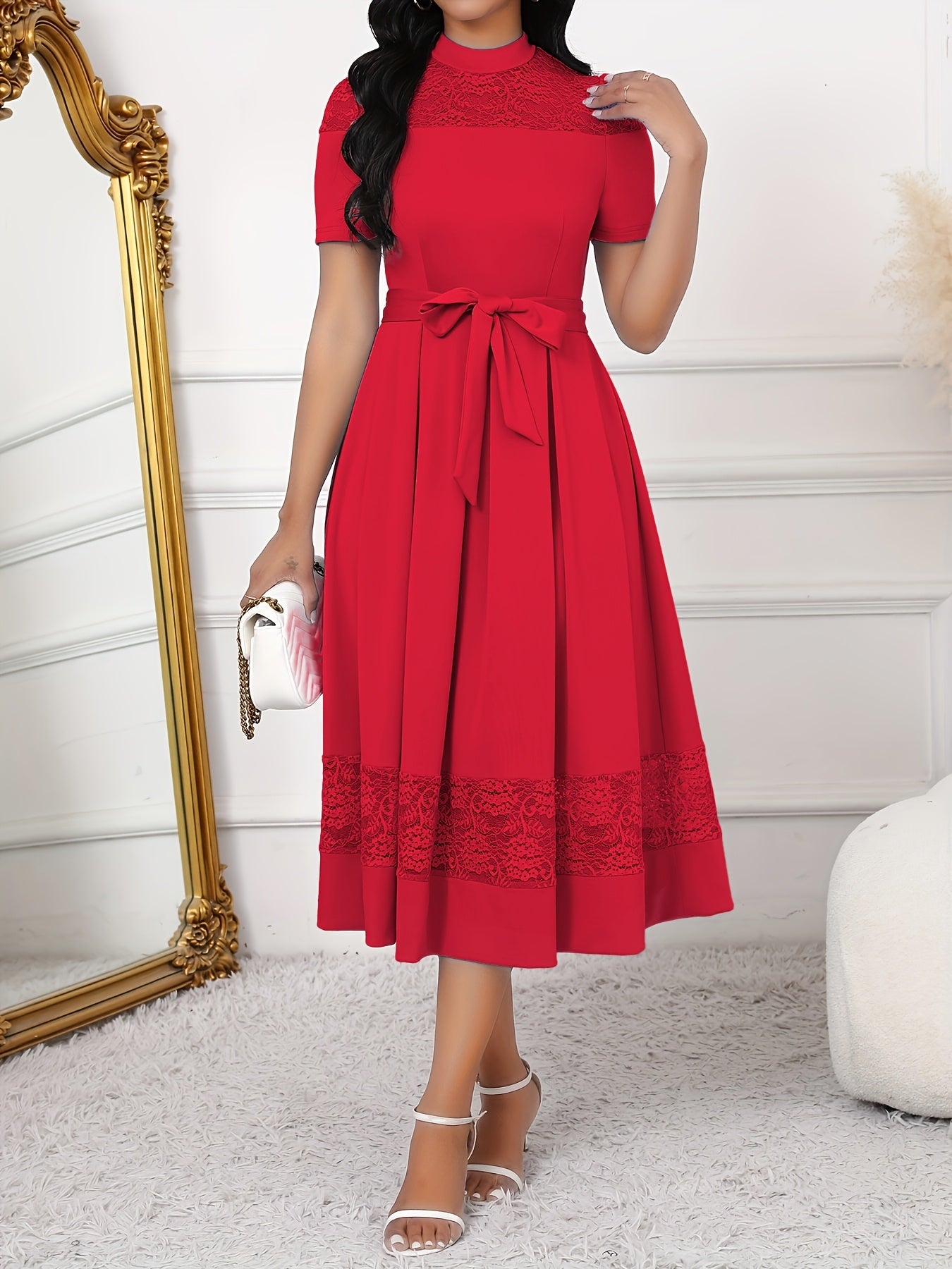 Fashionable Temperament, Elegant Slim Slim Lace Patchwork Dress, Belt HRYY078