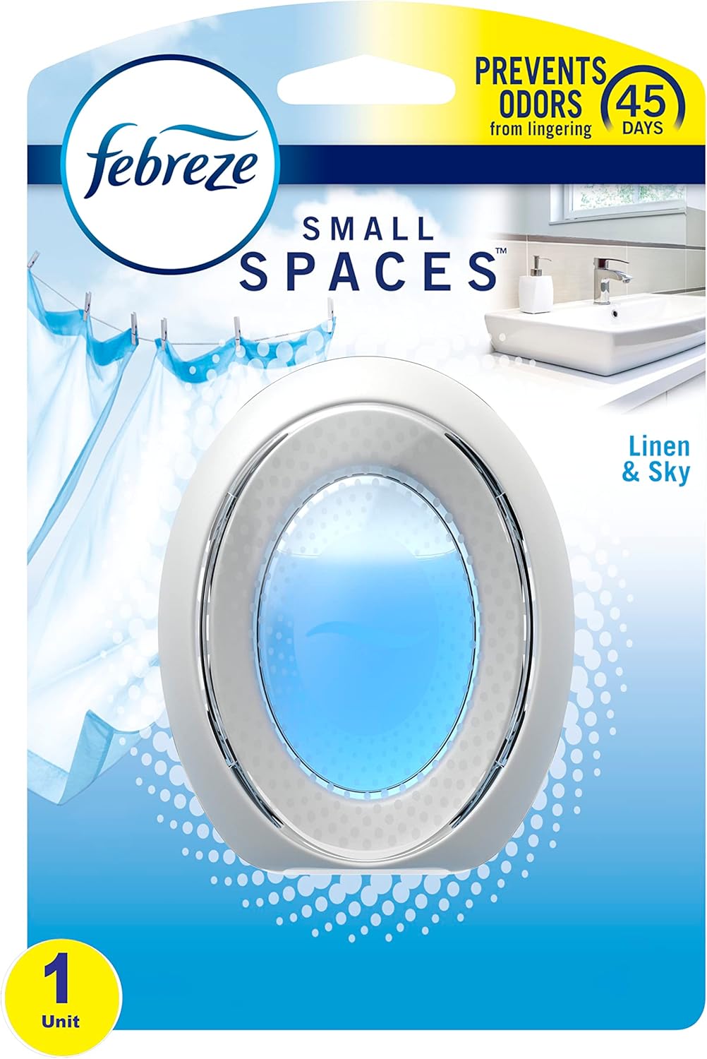Febreze Small Spaces Air Freshener, Odor-Fighting, Plug In Alternative, Air Fresheners for Home and Bathroom and Kitchen, Closet Air Fresheners, Linen & Sky Scent, 4 Count