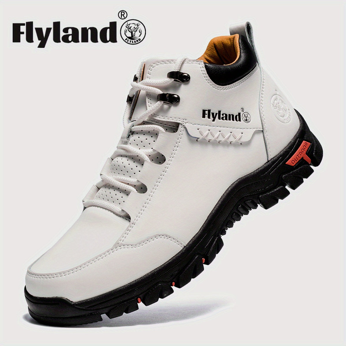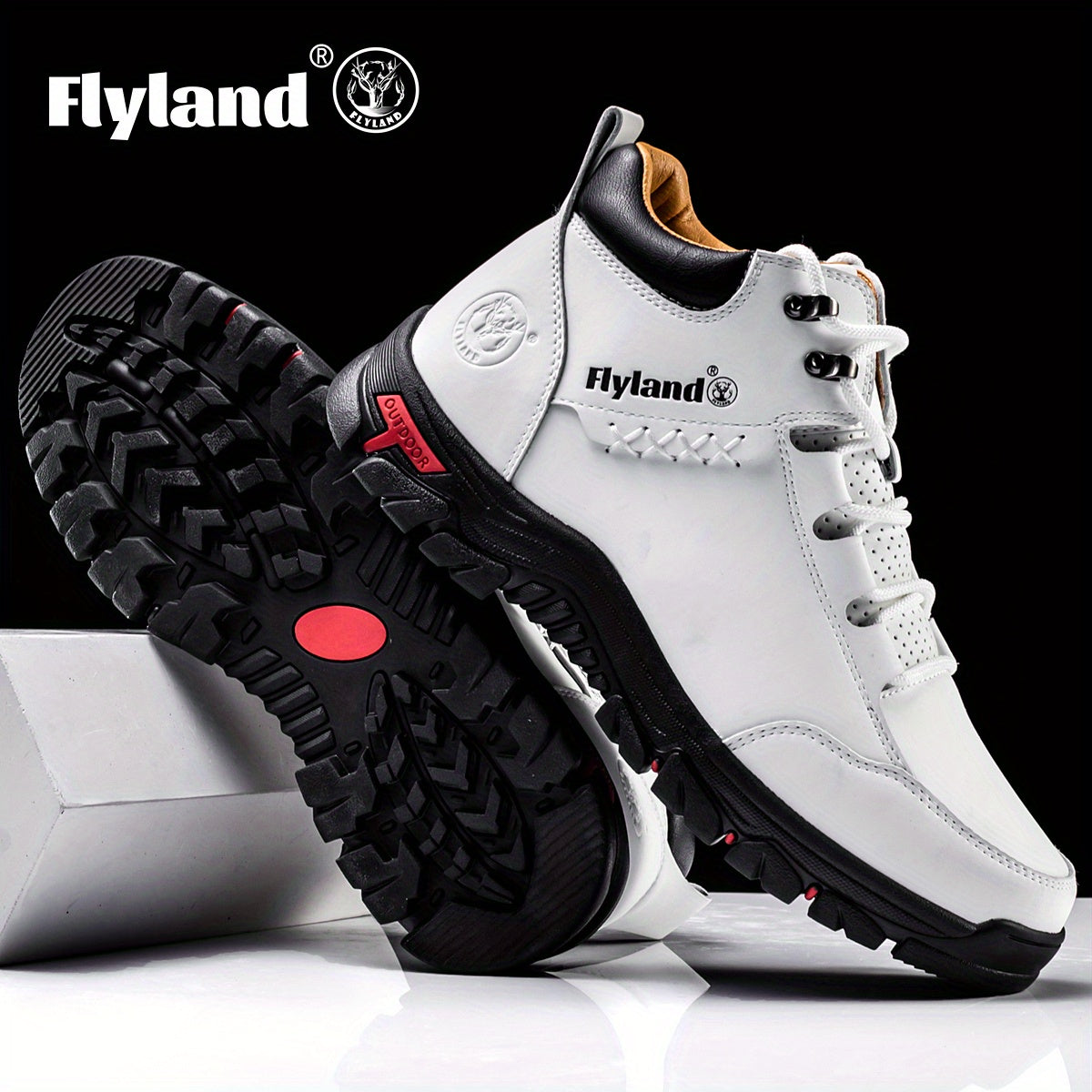 FLYLAND F7728 Classic Genuine Faux Leather Mid-Top Sneakers - Breathable Perforated Design, Non-Slip Rubber Sole with Red Accents, Square Toe for Men & Women - All-Season Casual & Sports Shoes, Shoes Sneakers, Outdoor Footwear, Modern Sneakers, Fabric Lin