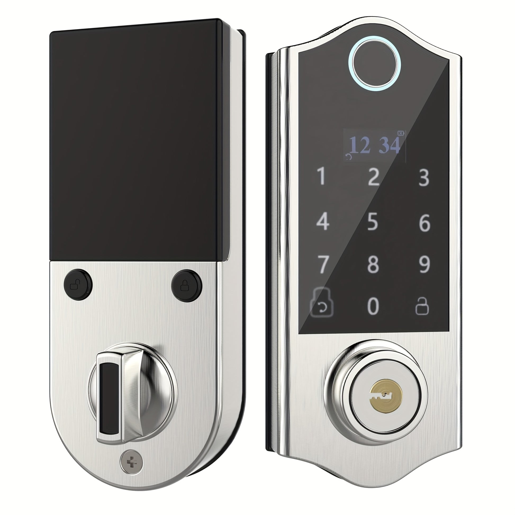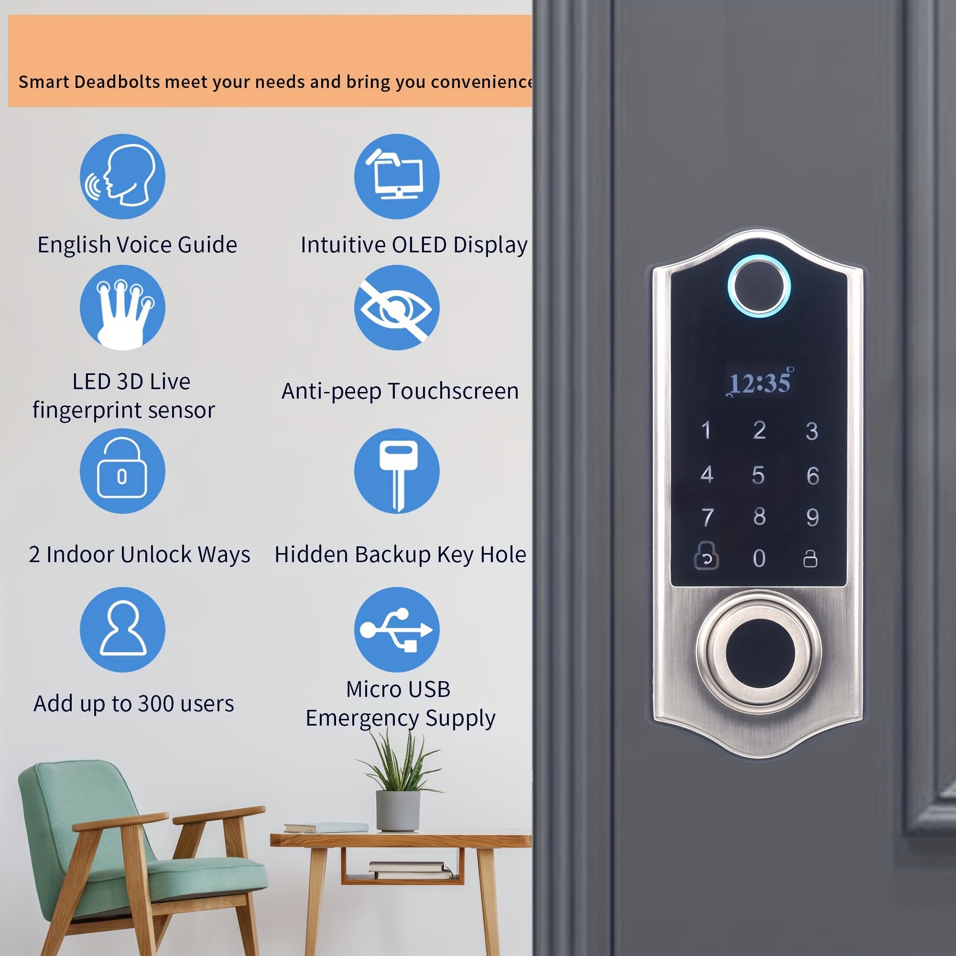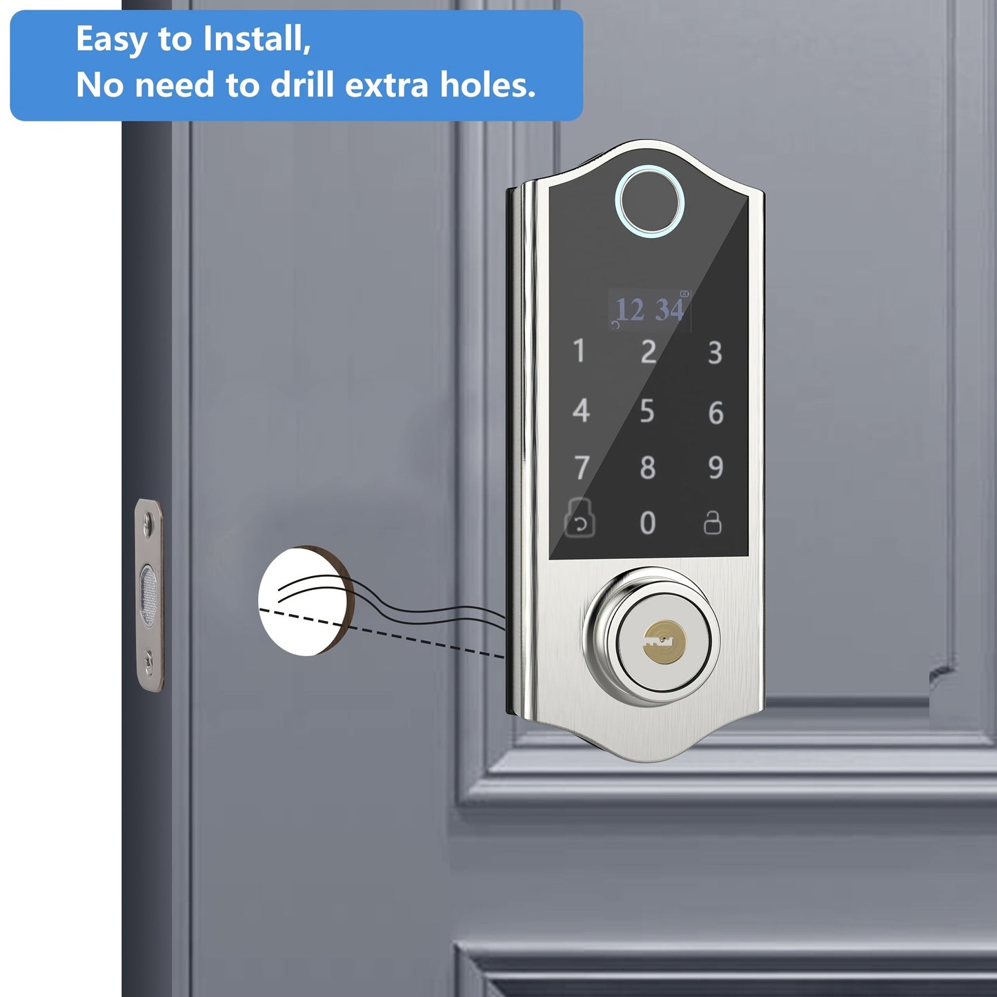 for Smart Deadbolt Lock, Fingerprint Door Lock, Oled Dispay and English Voice Guide, 4 Unlock Ways, Auto Lock & 1 Touch Locking, 300+ Users, Easy Installation, Superior Quality, Satin Nicke