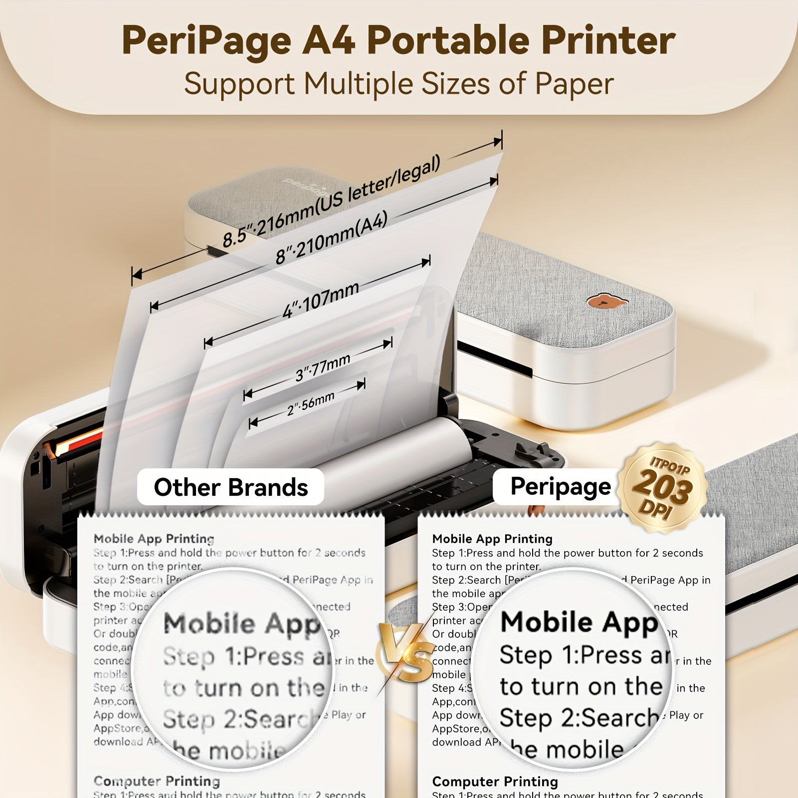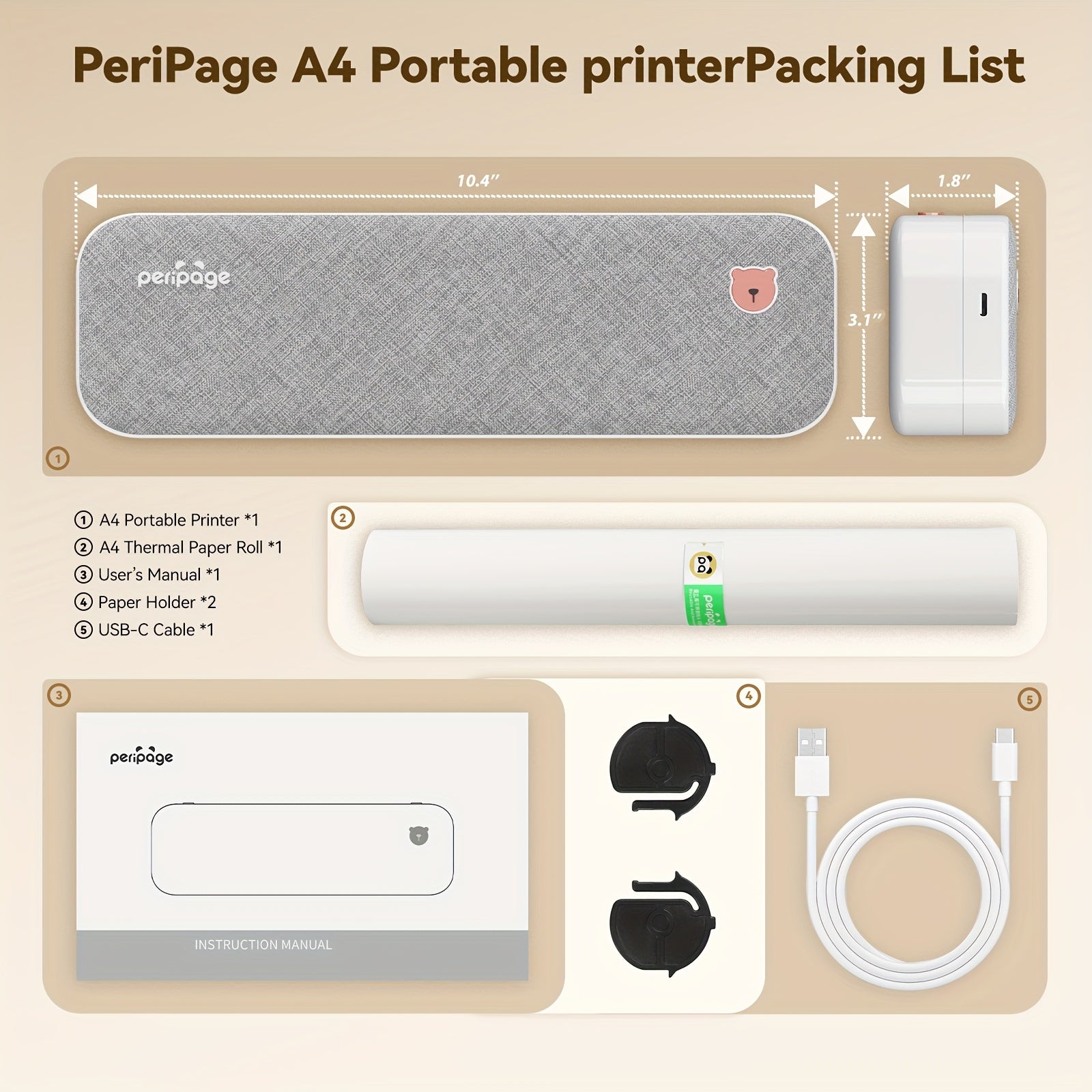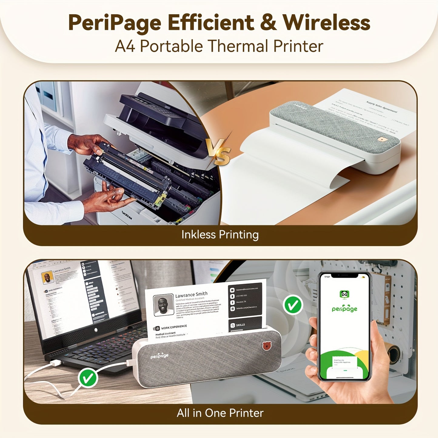 [Fournitures scolaires] Imprimante thermique portable sans encre PeriPage A4 compatible avec le format lettre américain 8.26 "x11.69", mini-imprimante, papier d'impression sans fil, imprimante de voyage mobile sans fil, compatible avec l'impression Androi