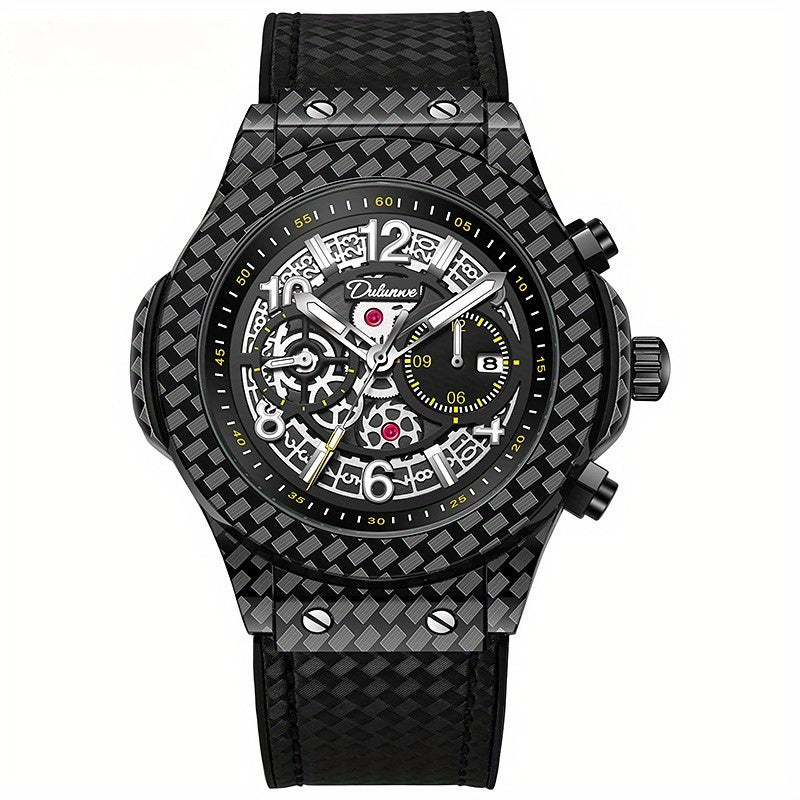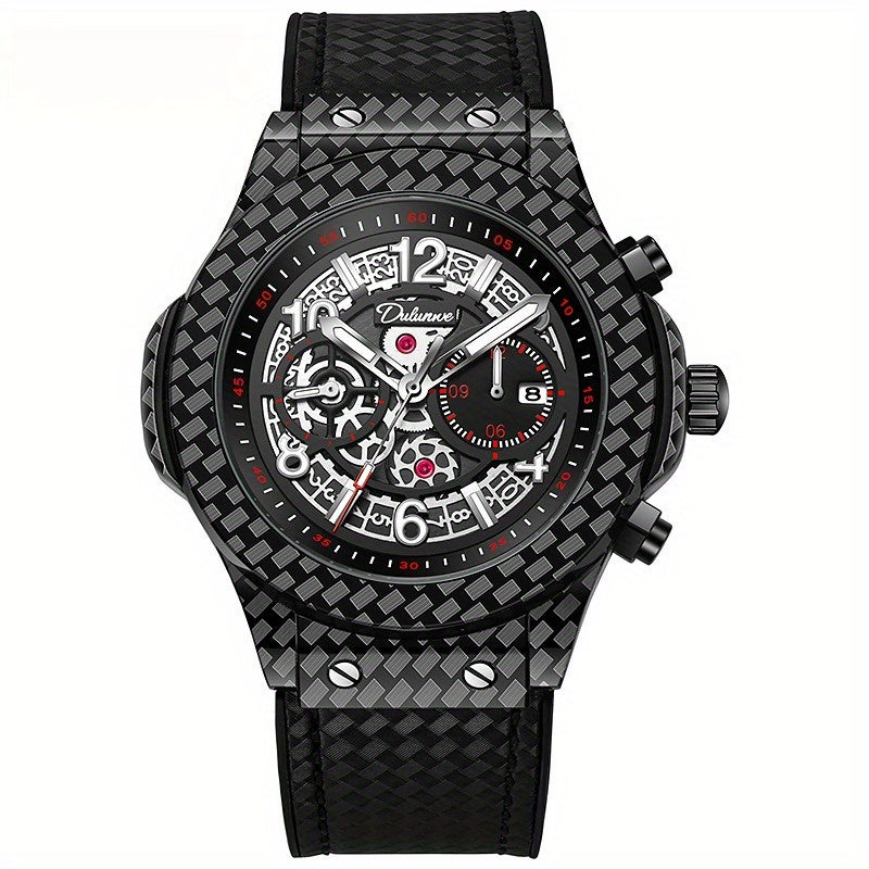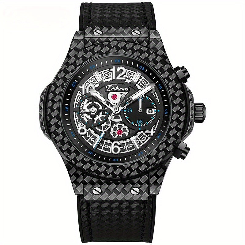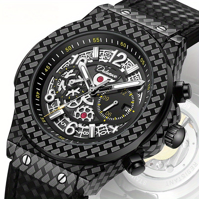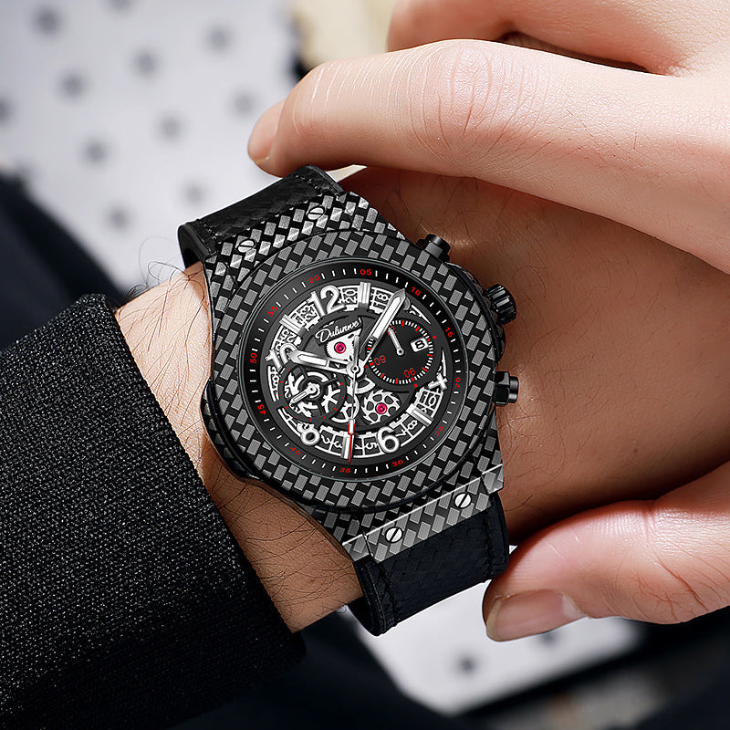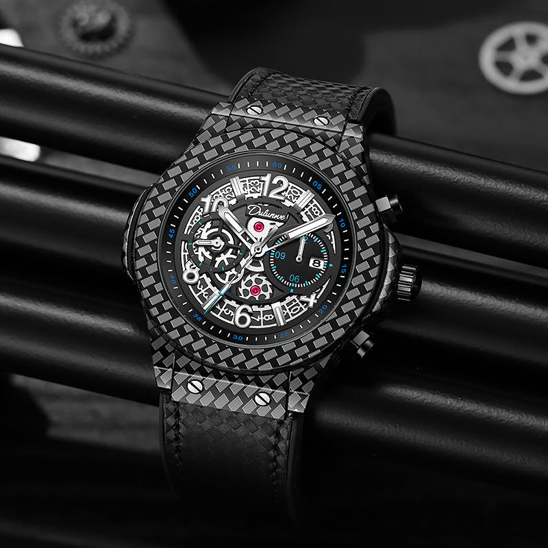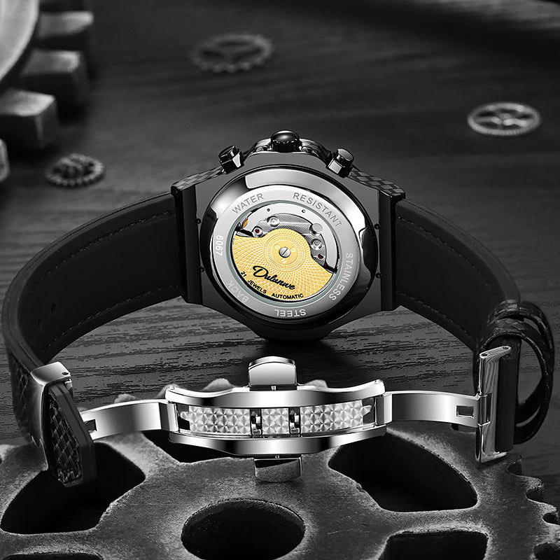 Fully automatic mechanical watch, carbon fiber design elements, leather strap, waterproof cut-out, versatile, stylish personality, ideal gift.