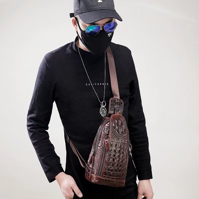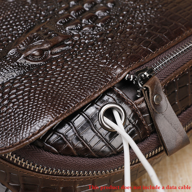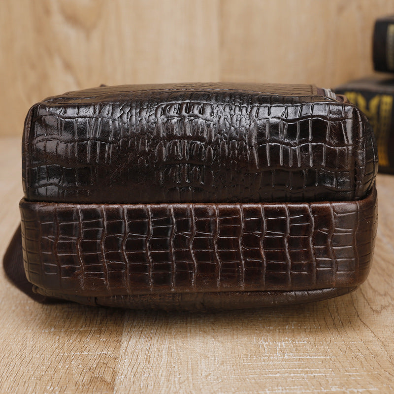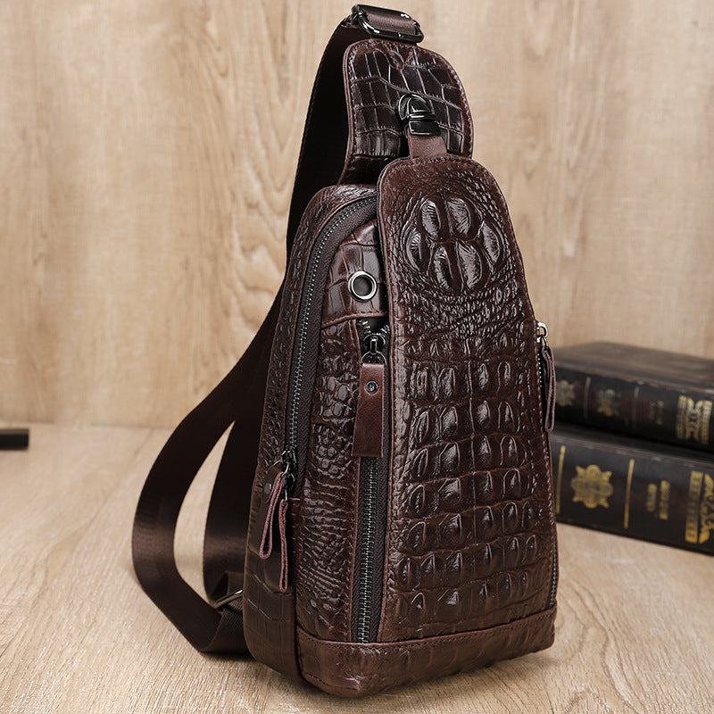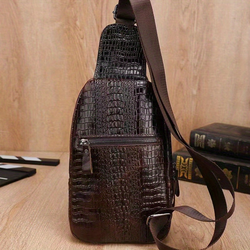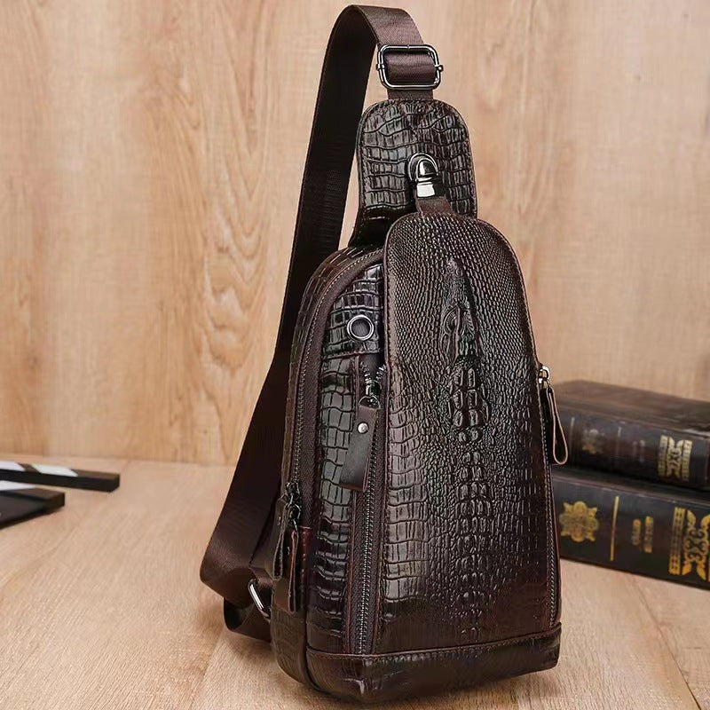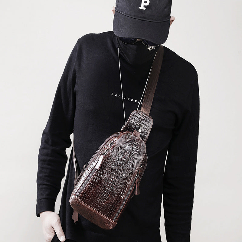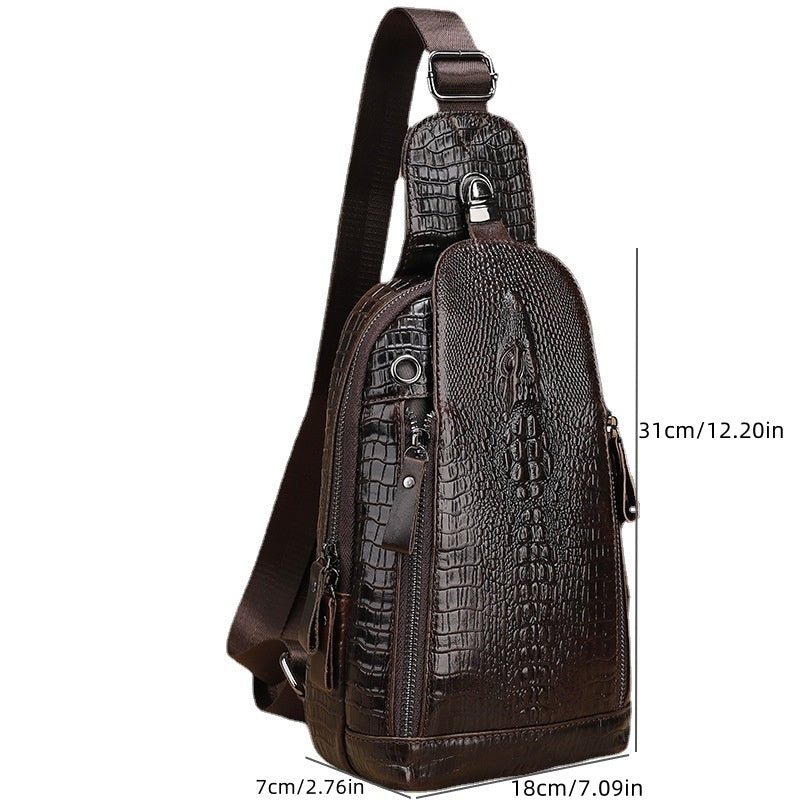 Genuine Leather Top Layer Cowhide Men's Crossbody Bag with Crocodile Pattern, Large Capacity Shoulder Bag, Stylish Retro Chest Bag, High Quality, Can Be Given As A Gift