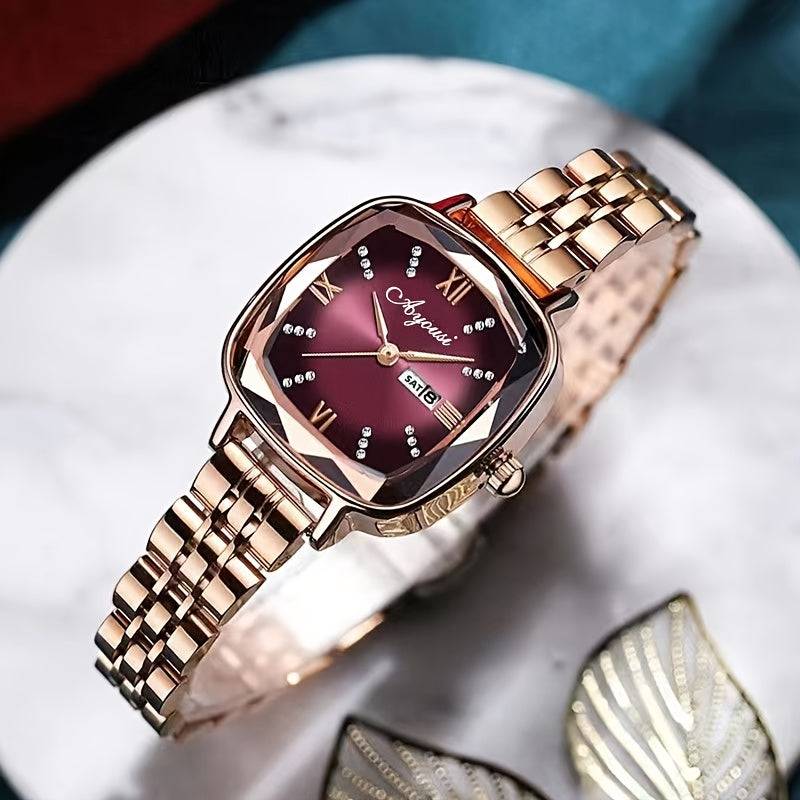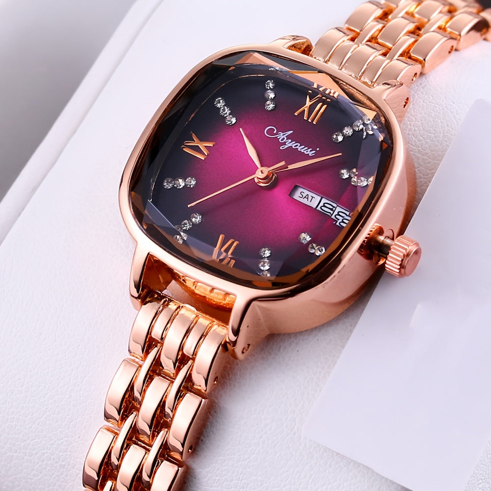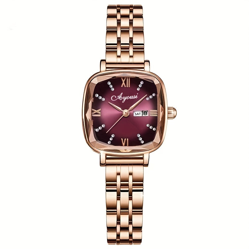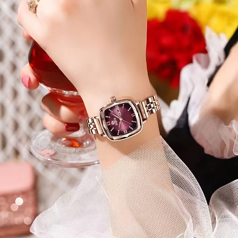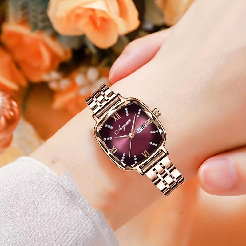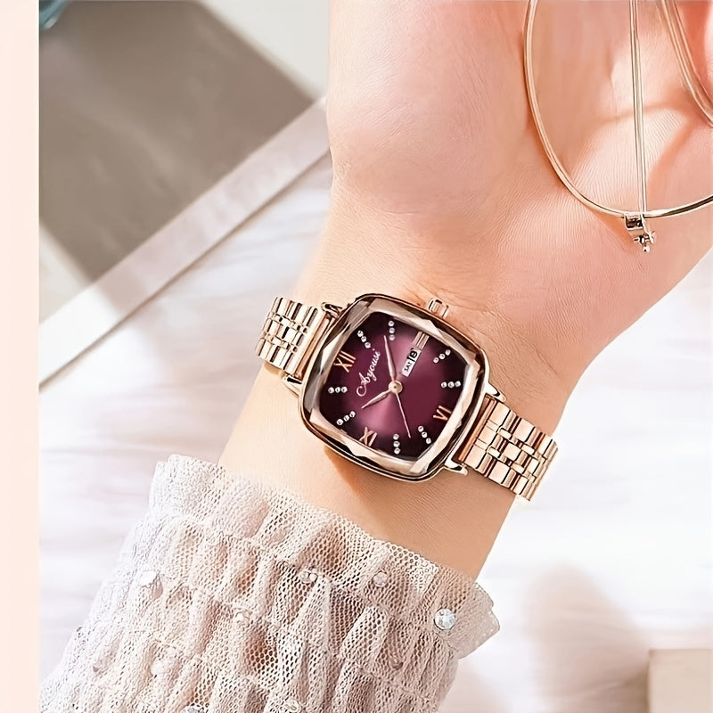 Glamorous Luxury Rhinestone Womens Square Watch - Precise Quartz Movement with Calendar & Date Display, Fashionable Rome Numerals, Stylish Analog Wristwatch for Everyday Glam