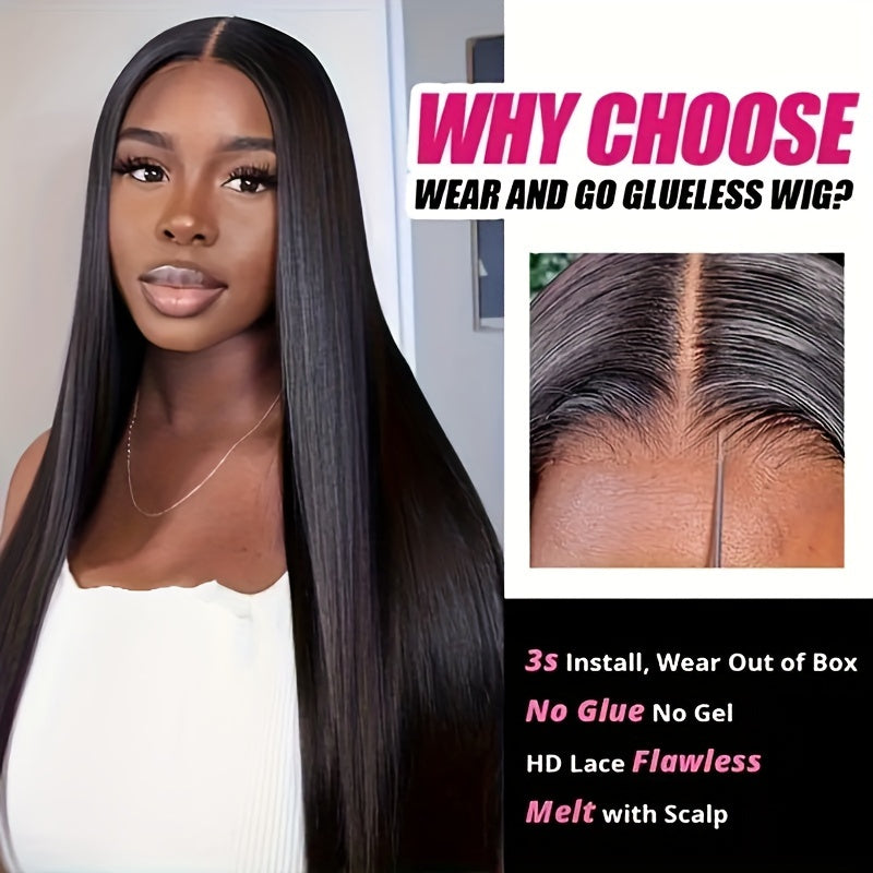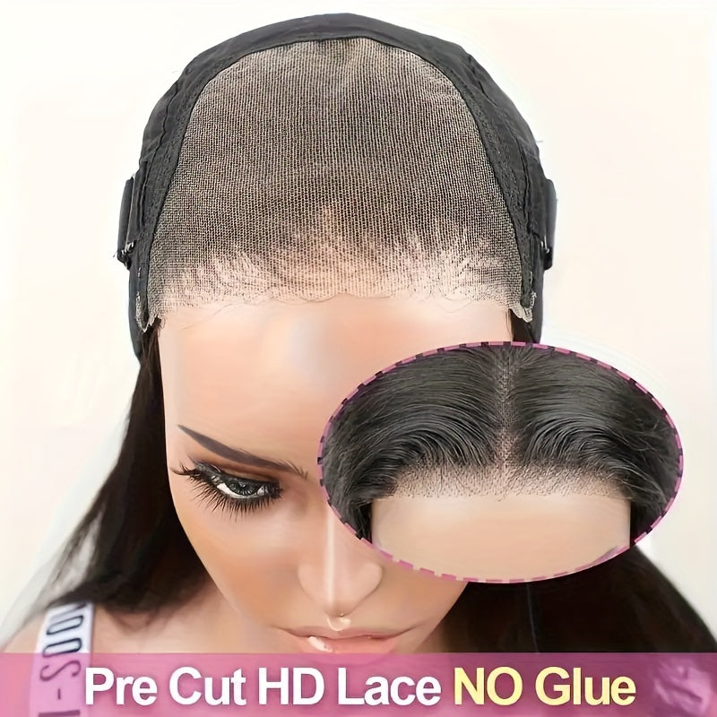 Glueless Wear and Go Wigs Human Hair Pre Plucked 200% Density Pre Cut Lace Free Part Glueless Wear and Go Wig HD Straight 4x4 wig human hair for Women Real No Glue Ready to Wear Wigs for Women