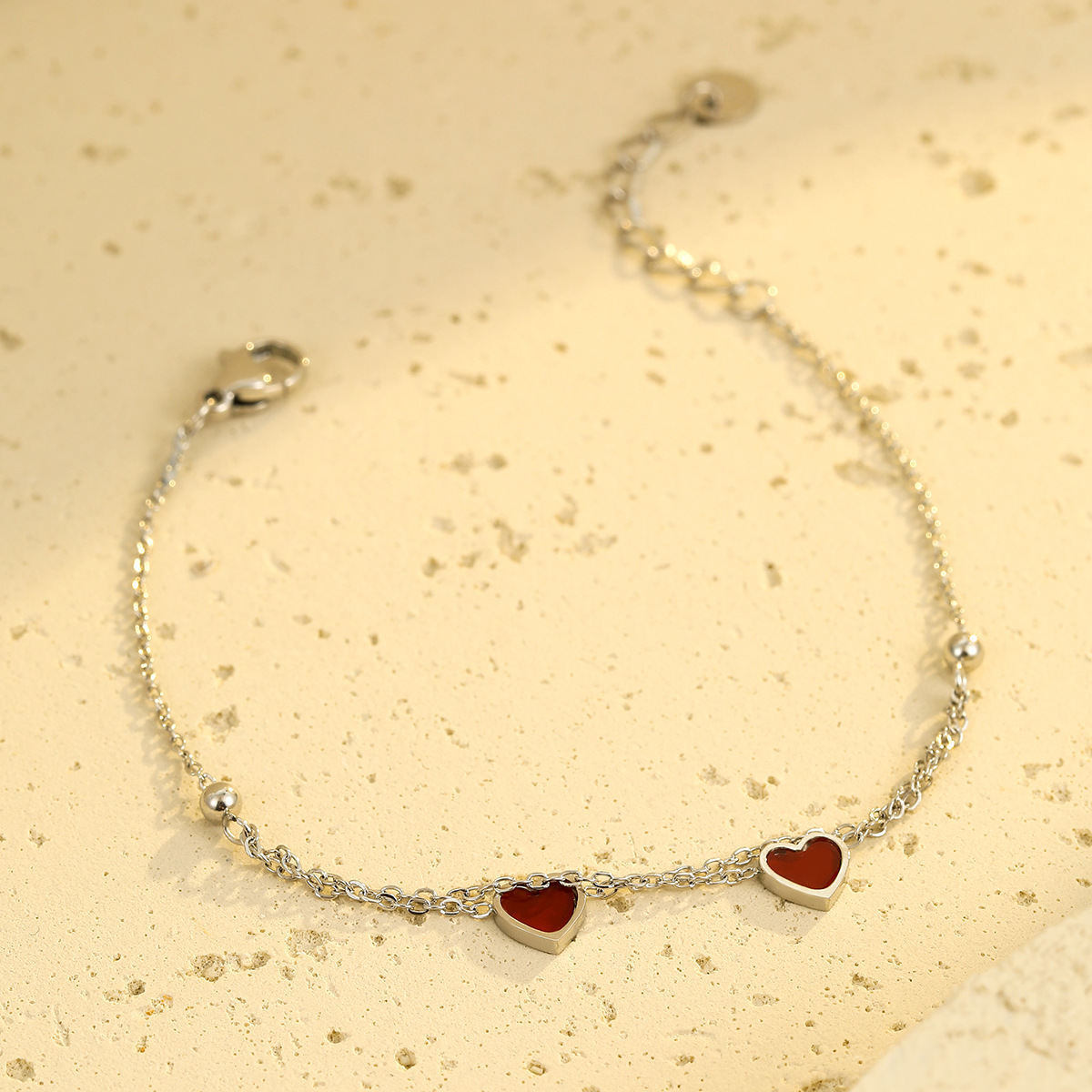 Golden Double Layer Peach Heart Twin Minority Bracelet Stainless Steel Heart Shaped Non Fading Ornament