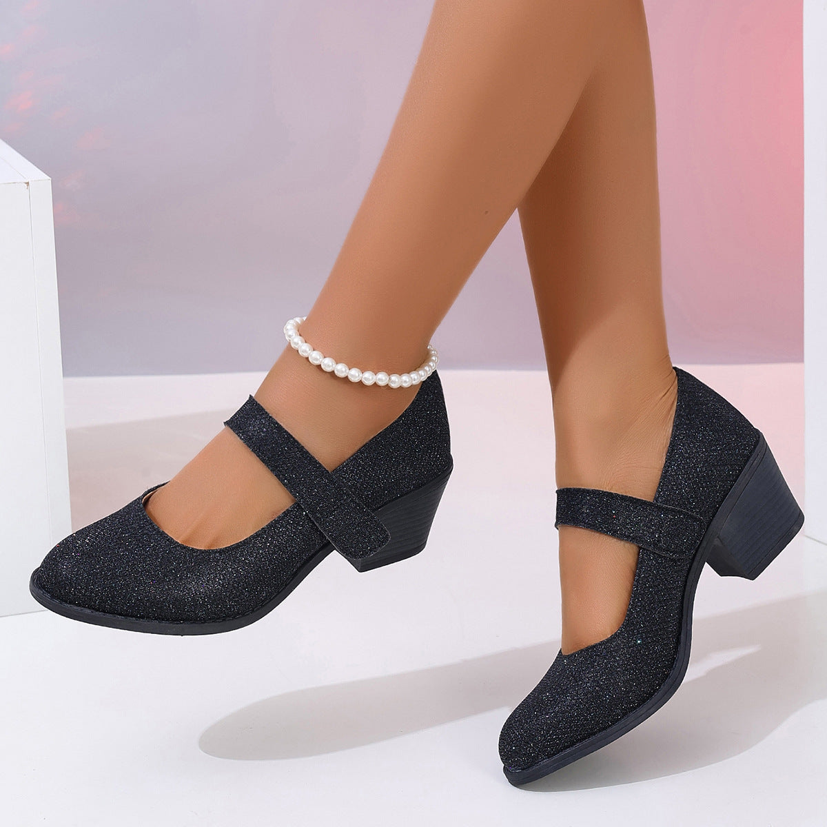 GREAT Chunky Heel Height Increasing Women Pumps Solid Color Comfort Women High Heel Single Layer Shoes High Heels