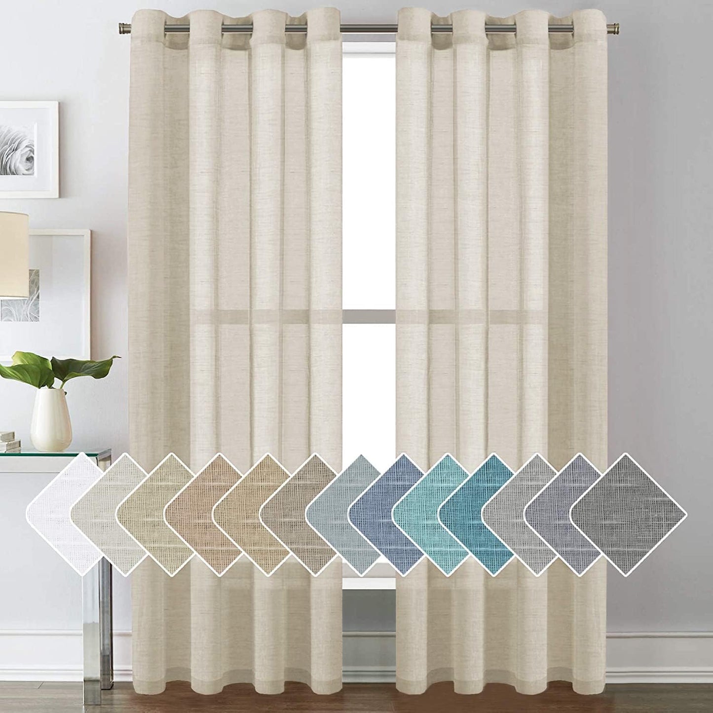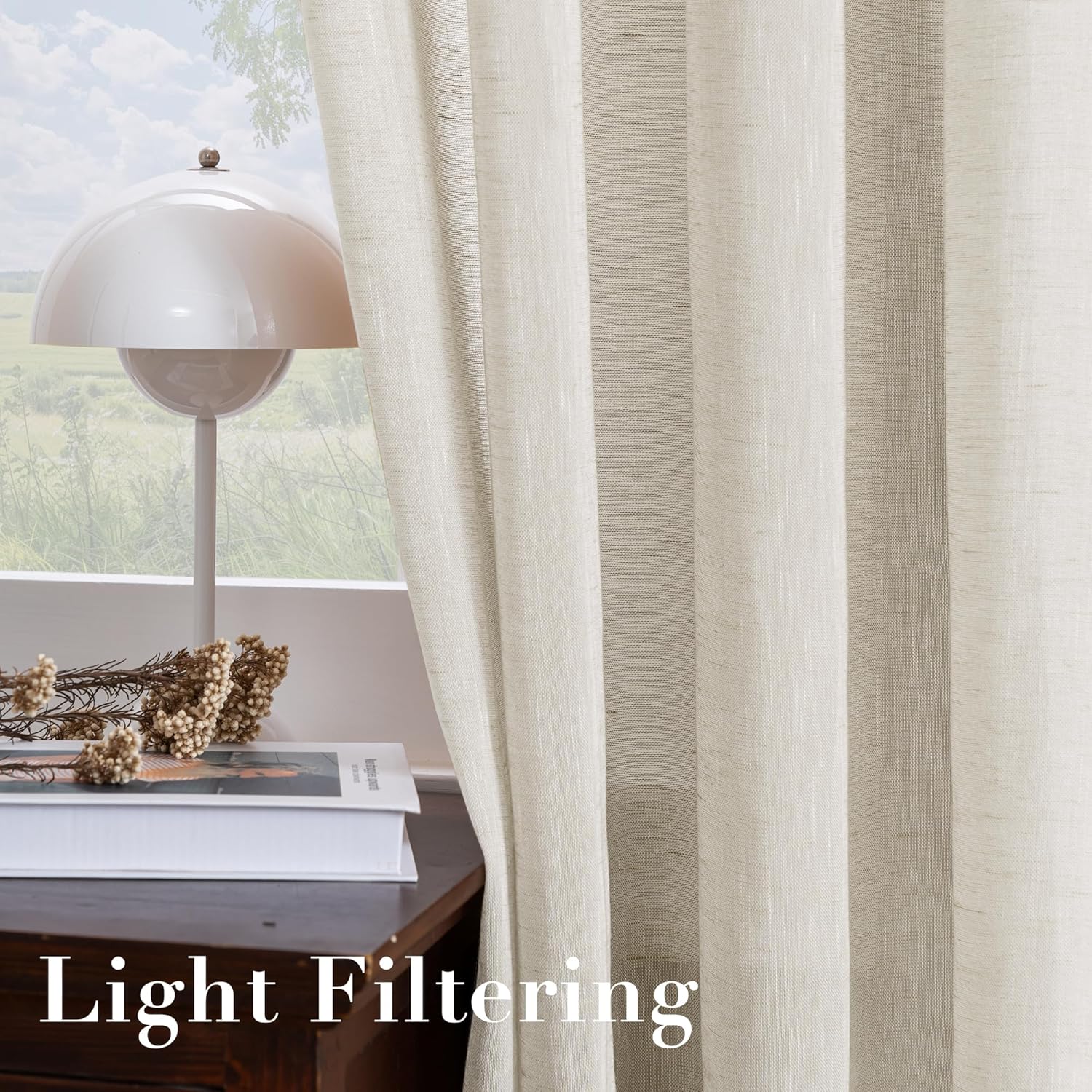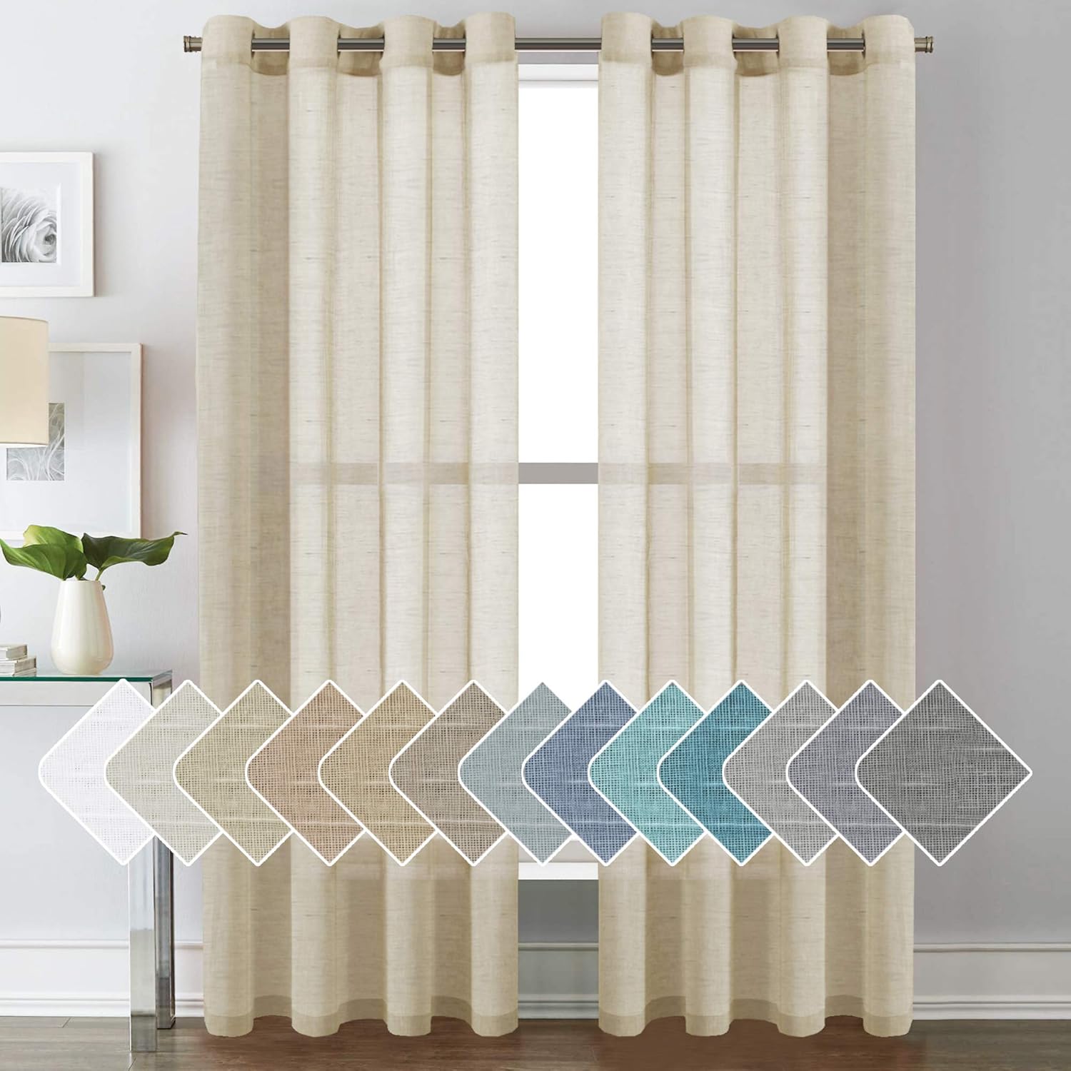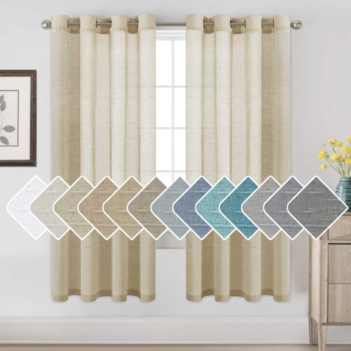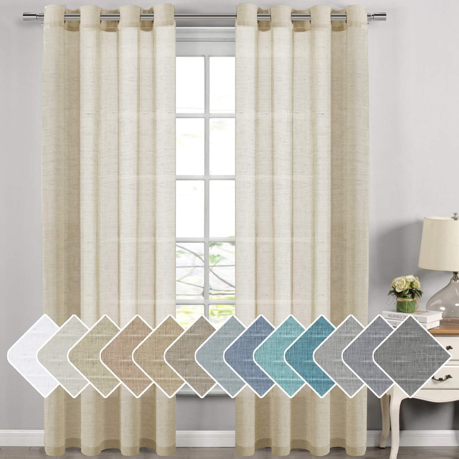 H.VERSAILTEX Natural Linen Sheer Curtains Flax Linen Blended Curtain Panels Living Room Sheer Curtains 84 inches Long 2 Panels, Nickel Grommet Semitransparent Semi-Sheer Soft Privacy Drapes, Natural