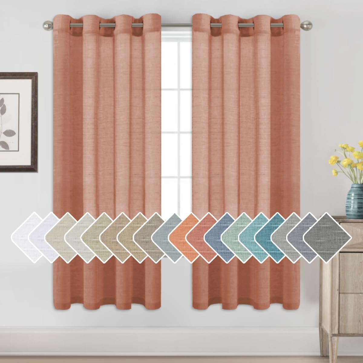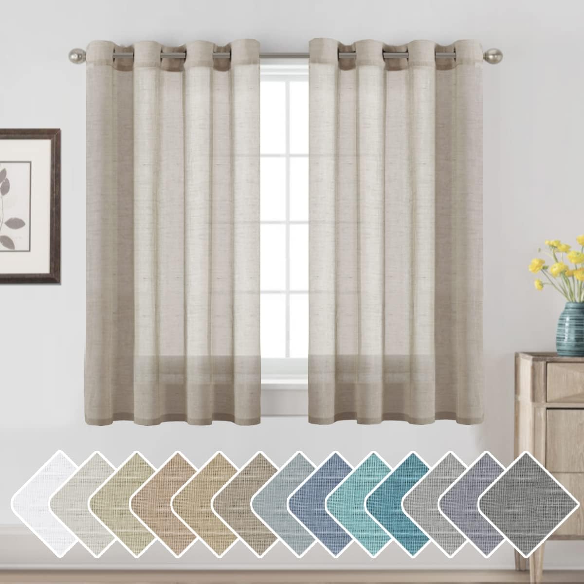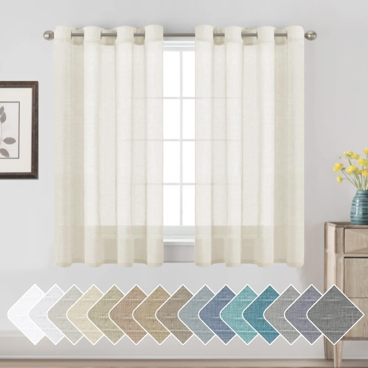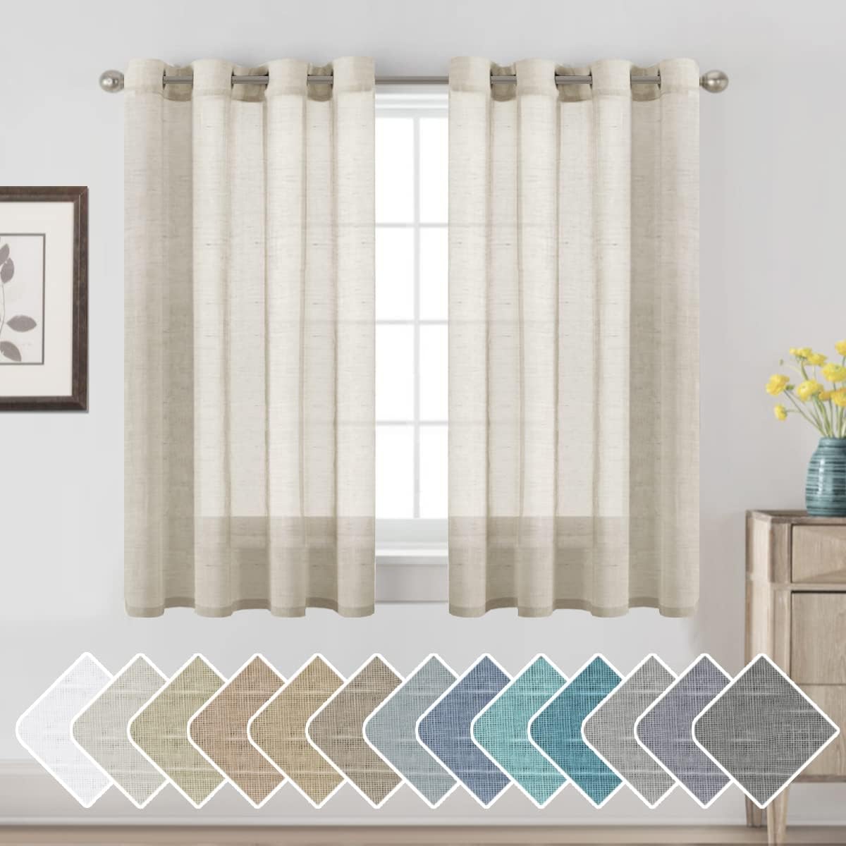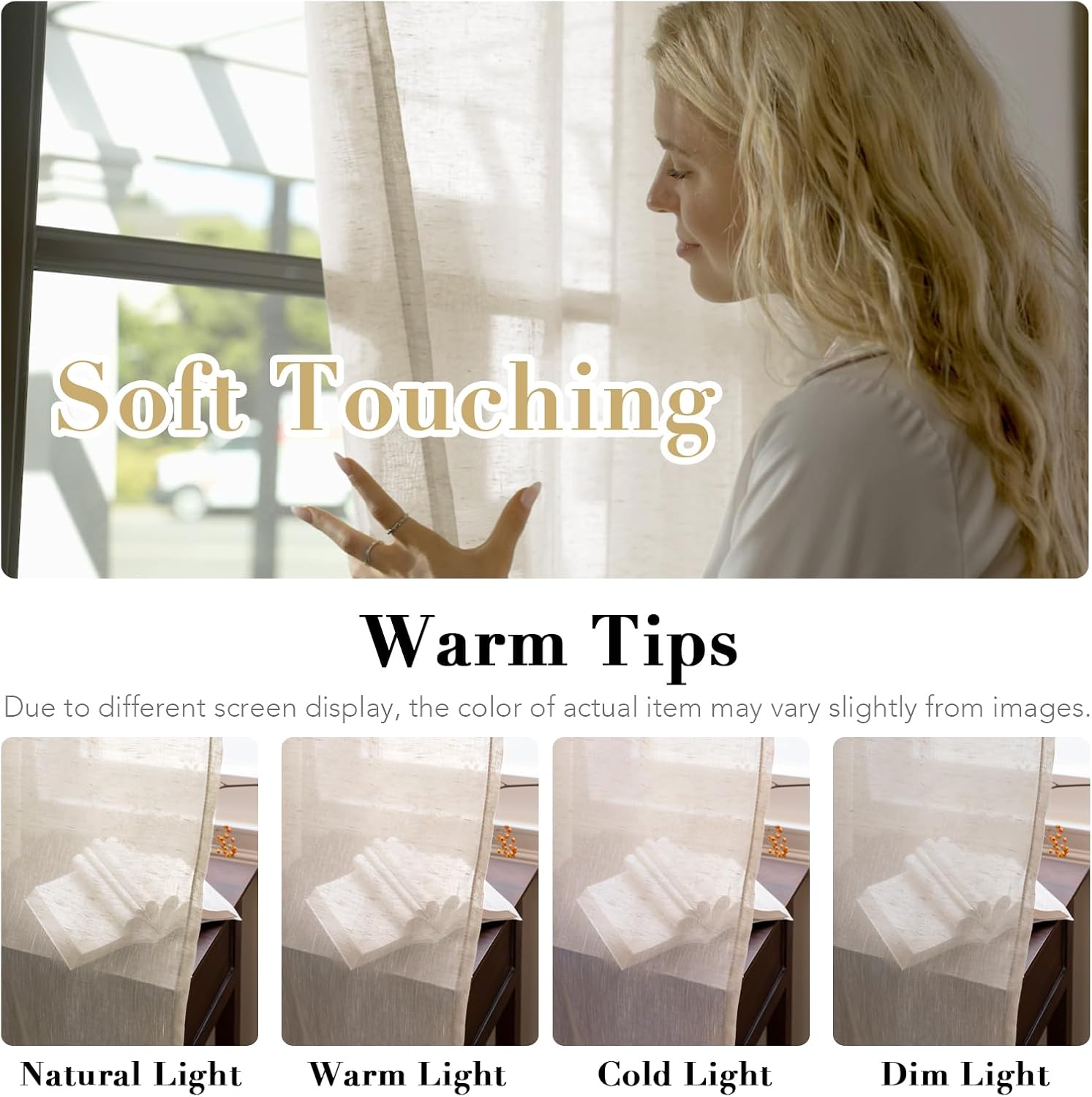 H.VERSAILTEX Natural Linen Sheer Curtains Flax Linen Blended Curtain Panels Living Room Sheer Curtains 84 inches Long 2 Panels, Nickel Grommet Semitransparent Semi-Sheer Soft Privacy Drapes, Natural
