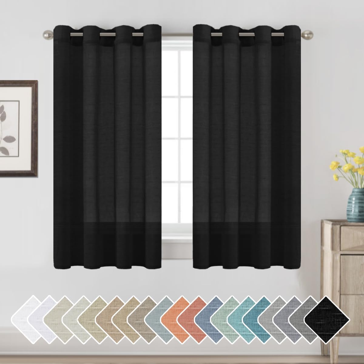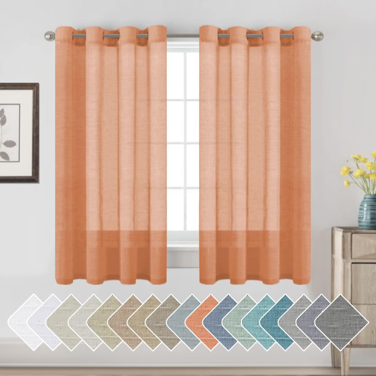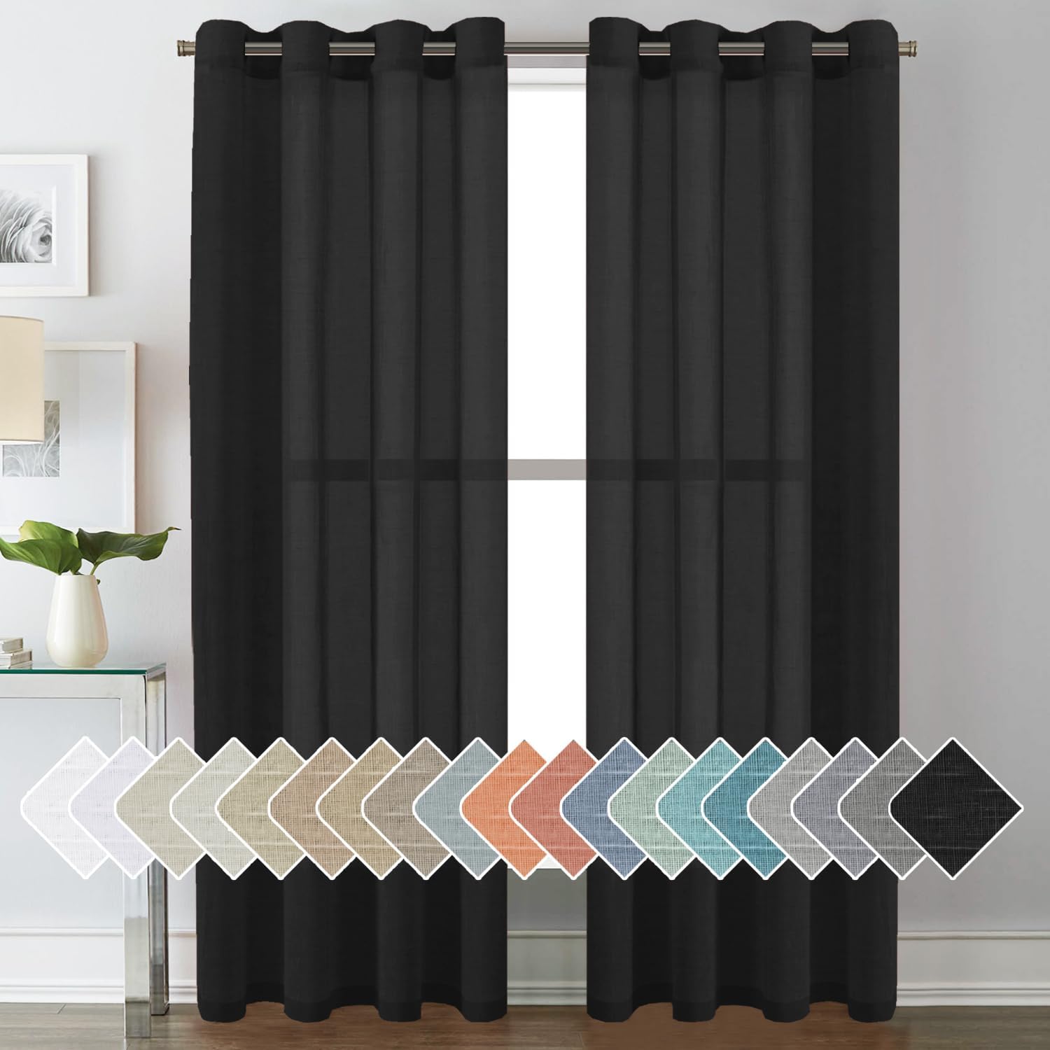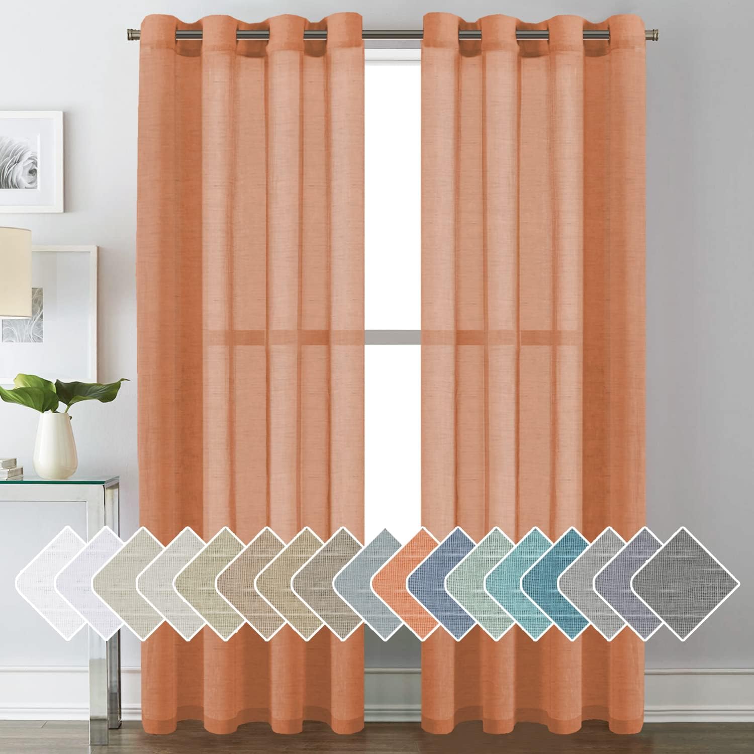 WELL MADE: Sold per pair(set), including 2 linen sheer panels - Panel measures: 52 x 84 - inches|Set measures: 104 x 84 - inches. Each panel has 8 nickel grommets, constructed with head height: 4", bottom hem: 2", fitting up to 1 1/4 inches curtain rods/poles