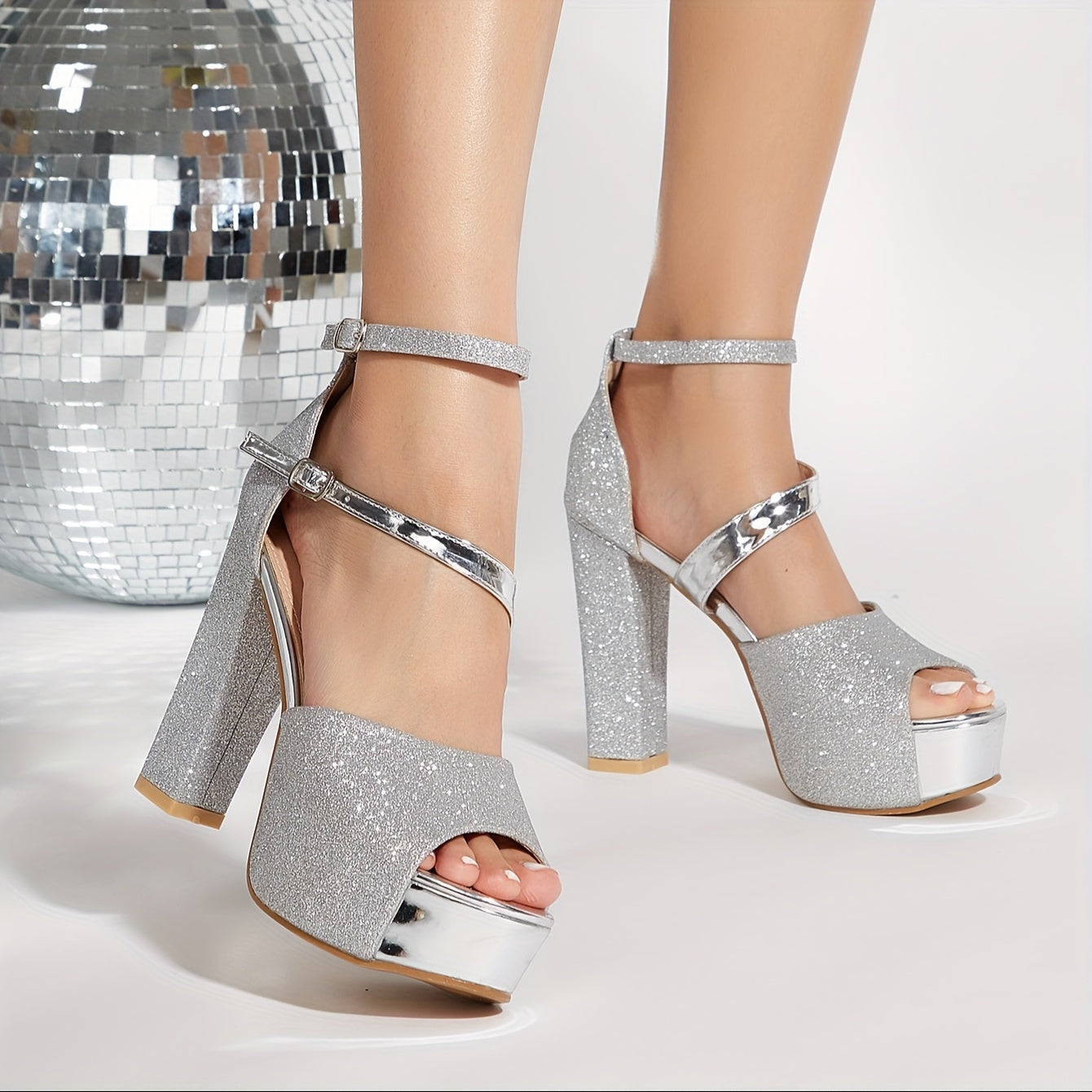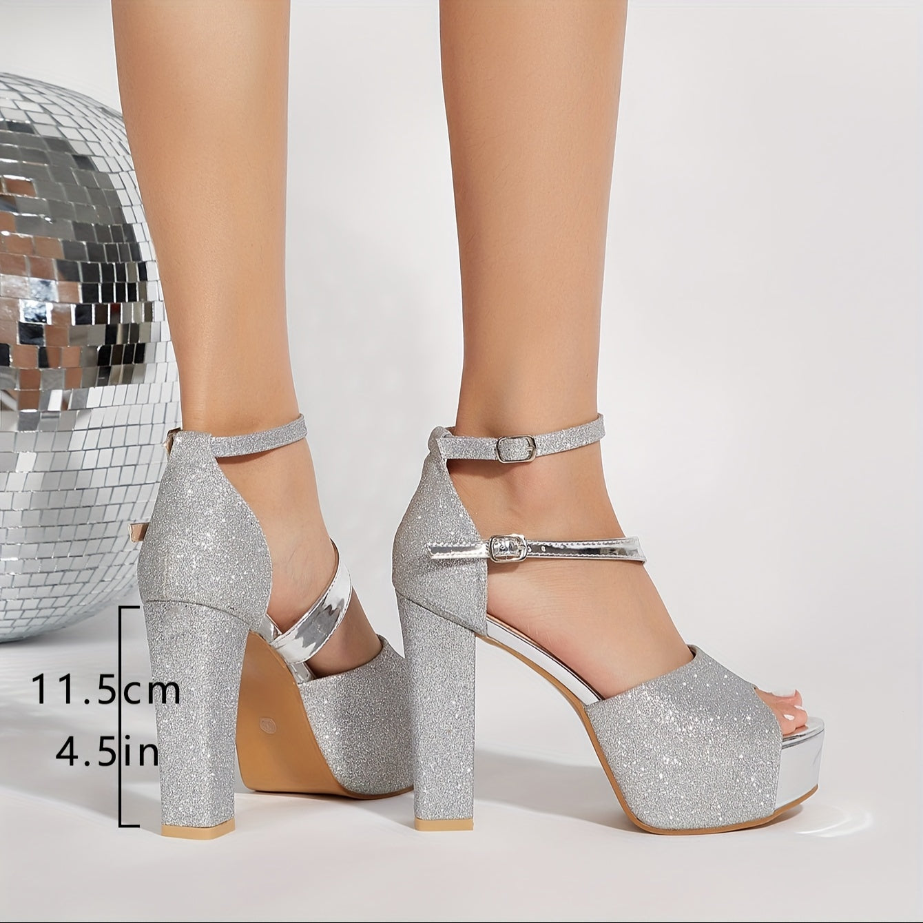High Heel Single Shoes Fashion High Quality Platform Fish Mouth Hollow Thick Heel Sexy Silvery Wedding Banquet Party Shoes for Women