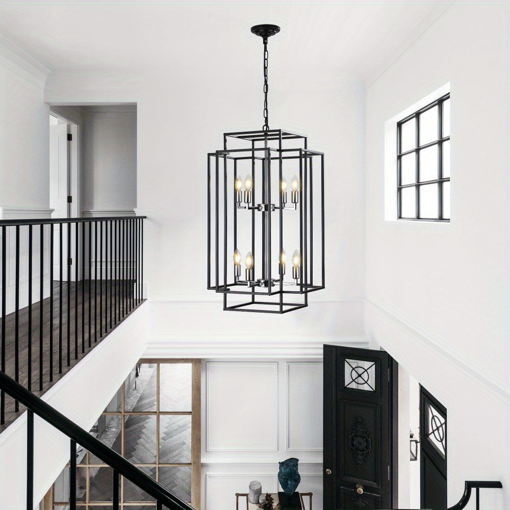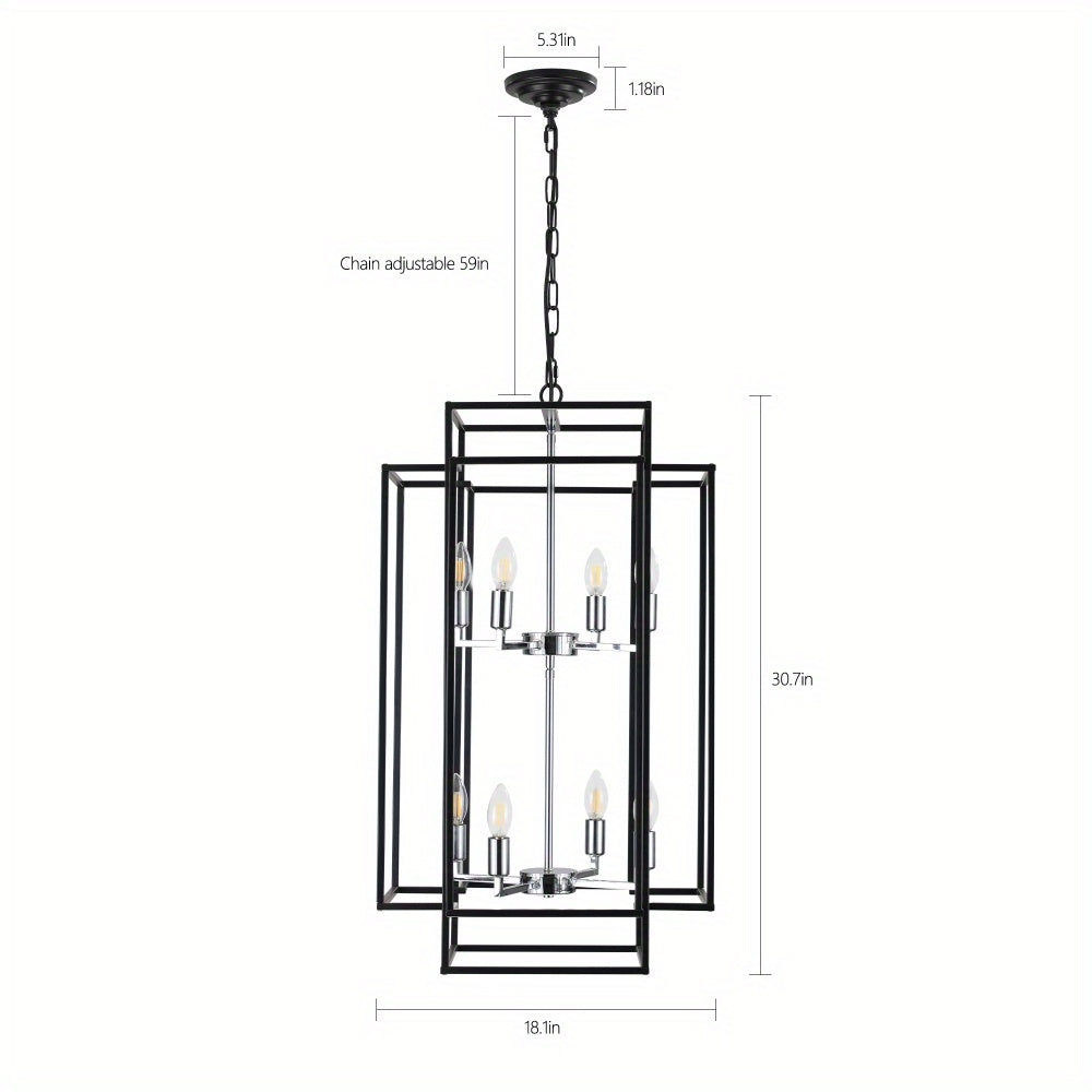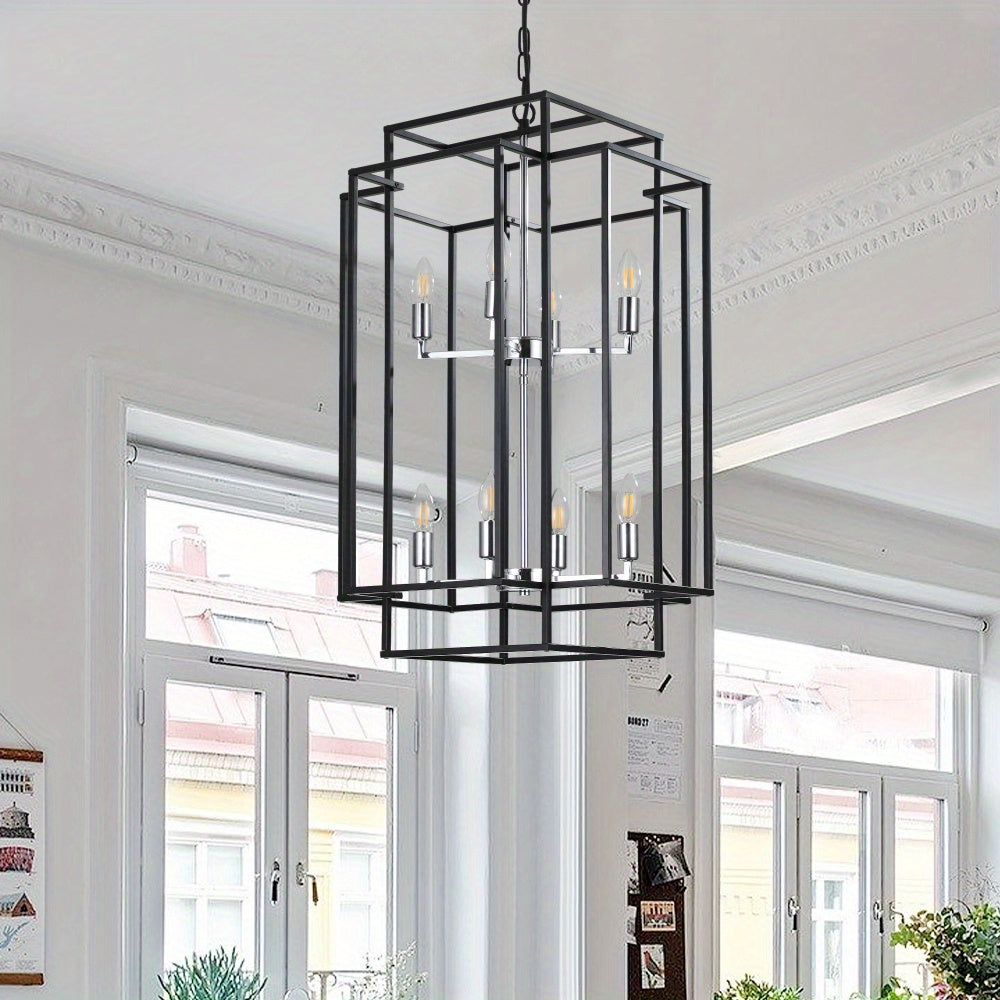 High Quality Sofucor 1pc 8-Lights Lantern Tiered Pendant Light Fixtures, Industrial Farmhouse Hanging Chandelier for Entryway, Foyer, Living Room, Kitchen Island, Staircase (Black & Silver)