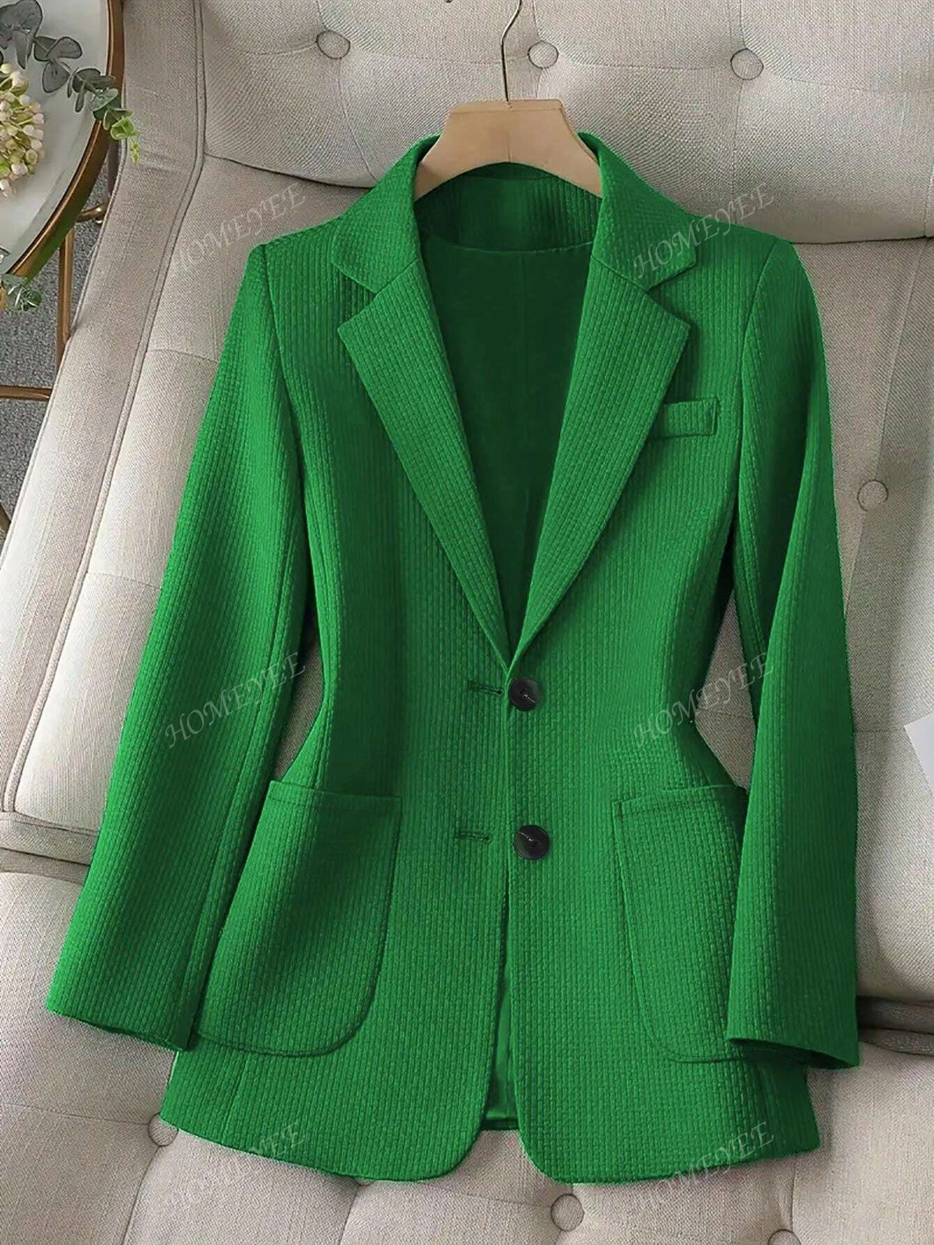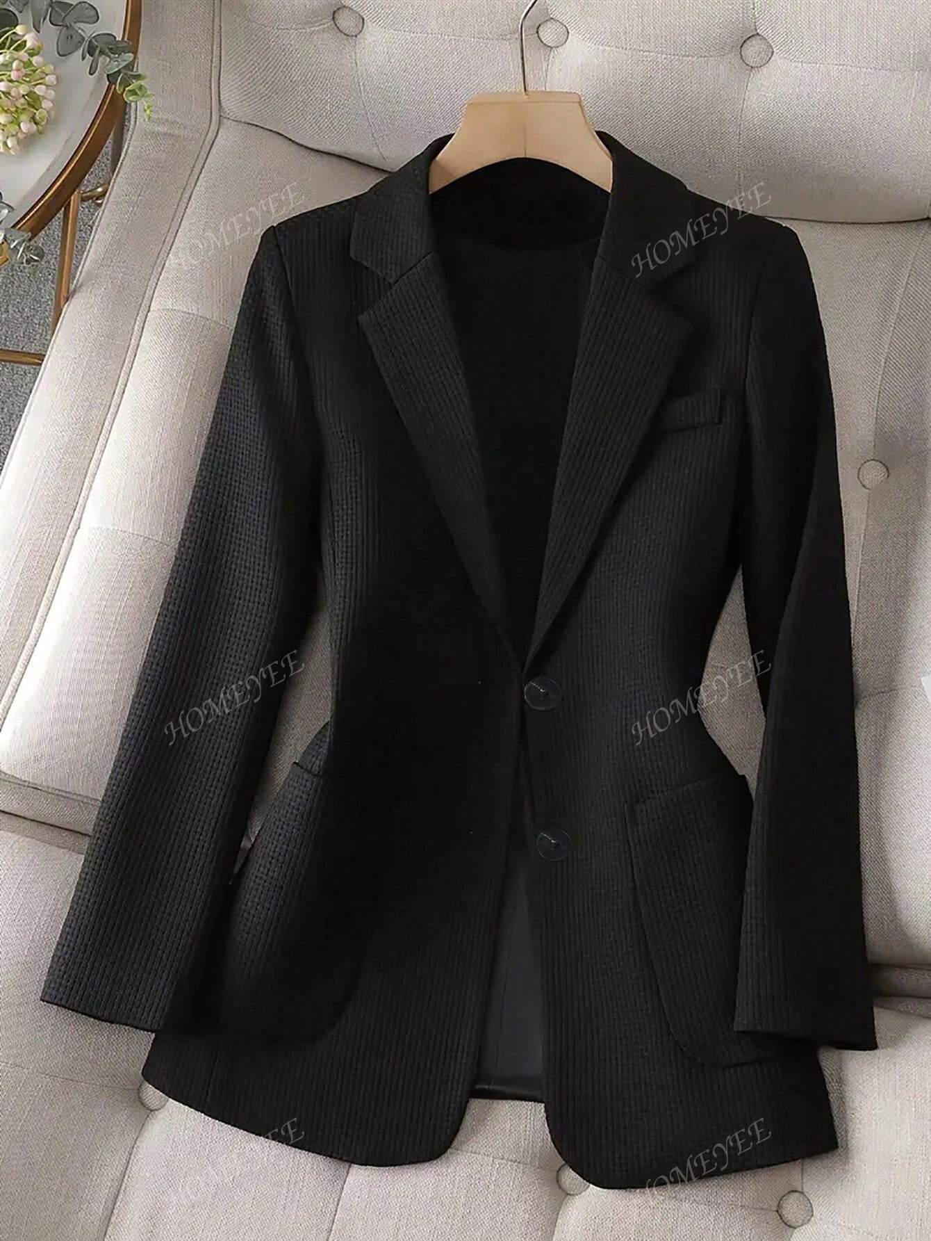 HOMEYEE Women's Vintage Elegant Casual Business Office OL Long Sleeve Textured Fabric Blazer Jacket, Autumn/Winter