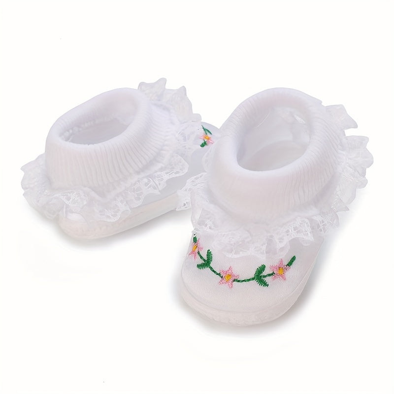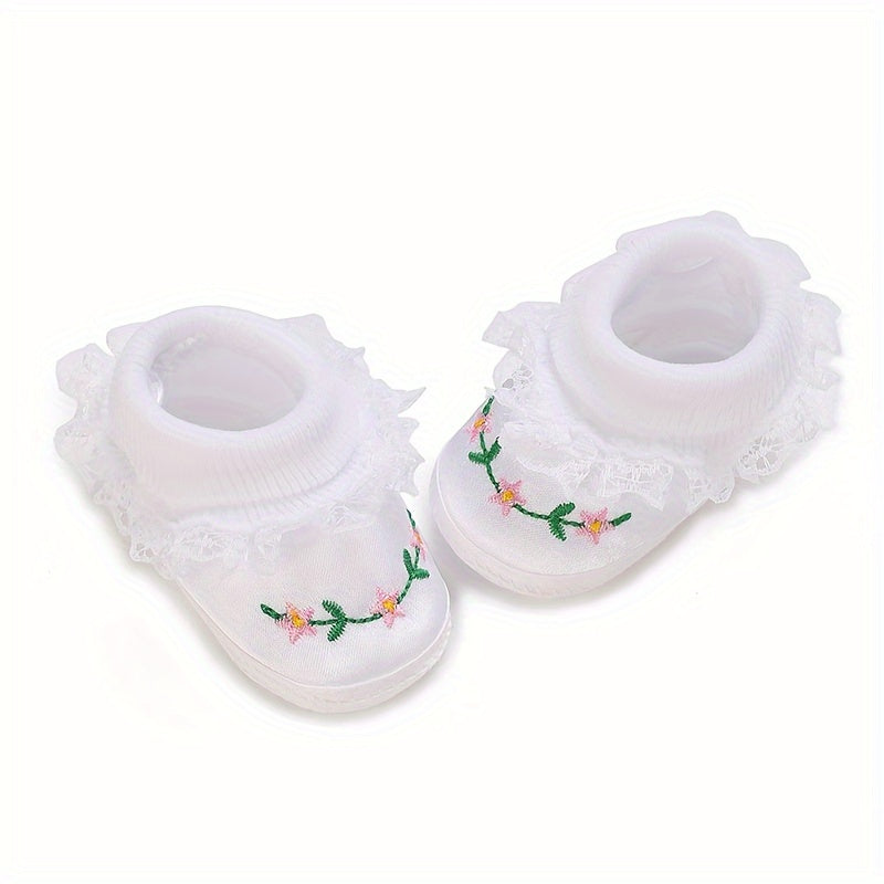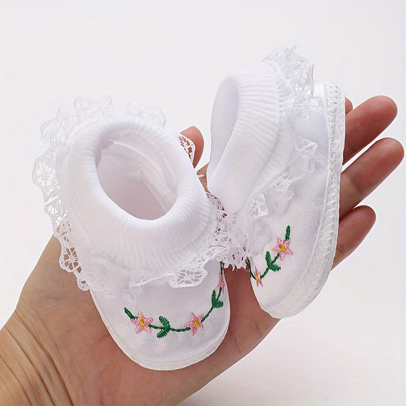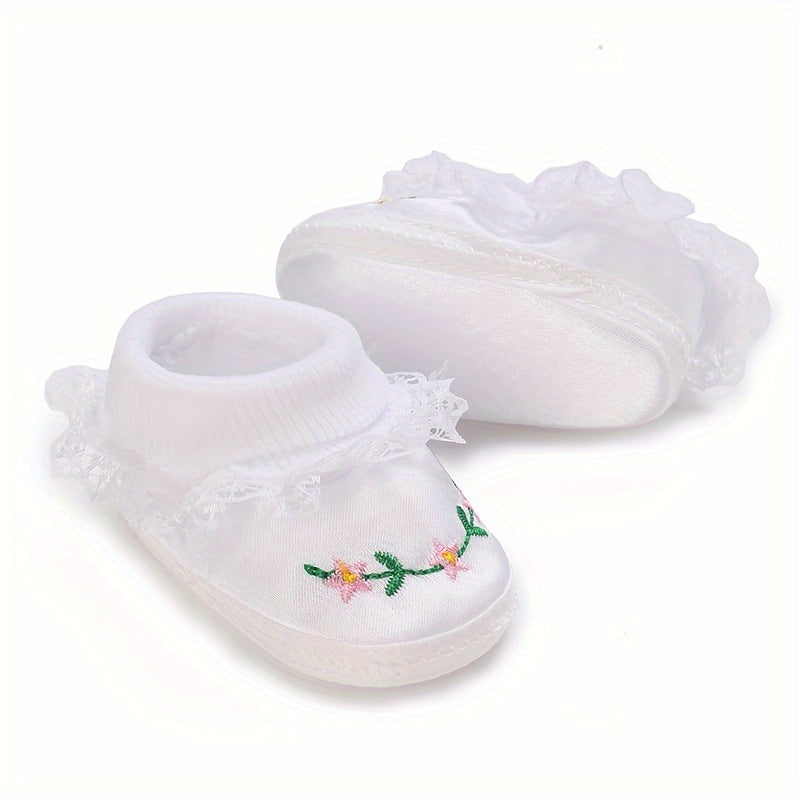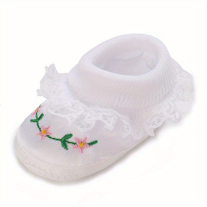 Infant Girls' Embroidered Floral Sneakers, Casual Style, Lightweight Non-Slip, Suitable for Indoor/Outdoor Walking, Spring/Autumn, Baptism Shoes, Fabric Upper, No Lining, Fabric Sole, Round Toe, Slip-On Closure