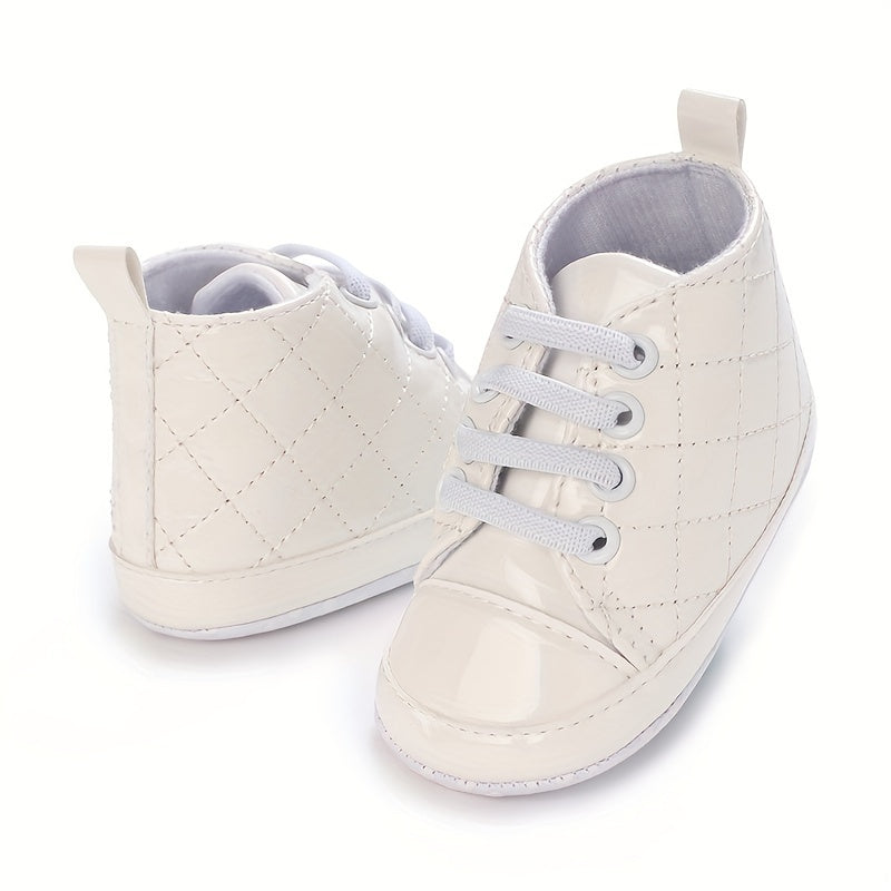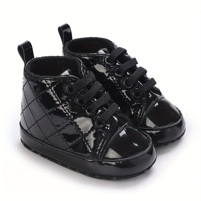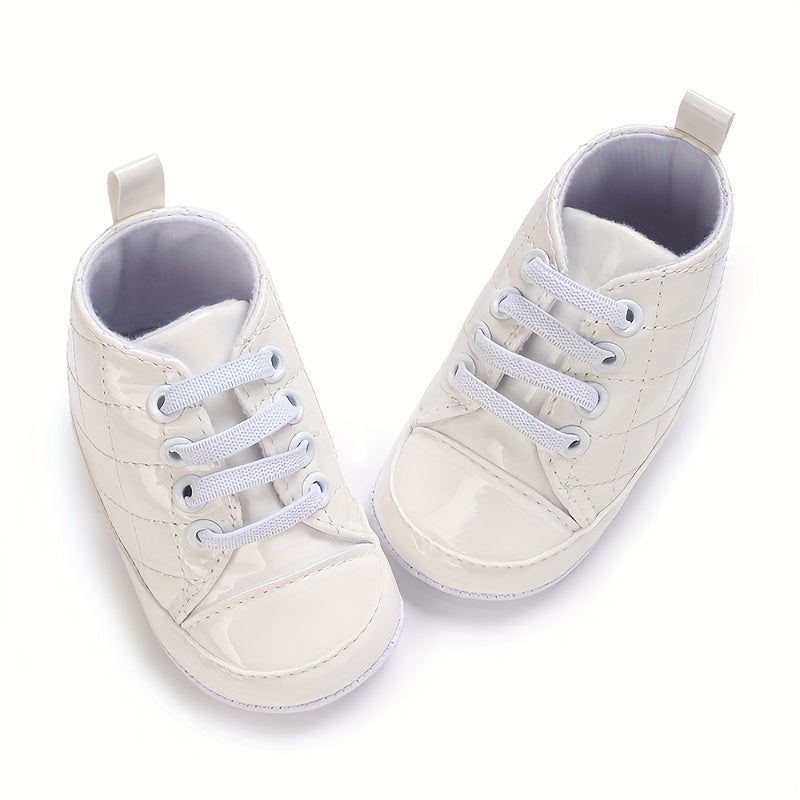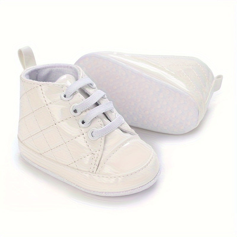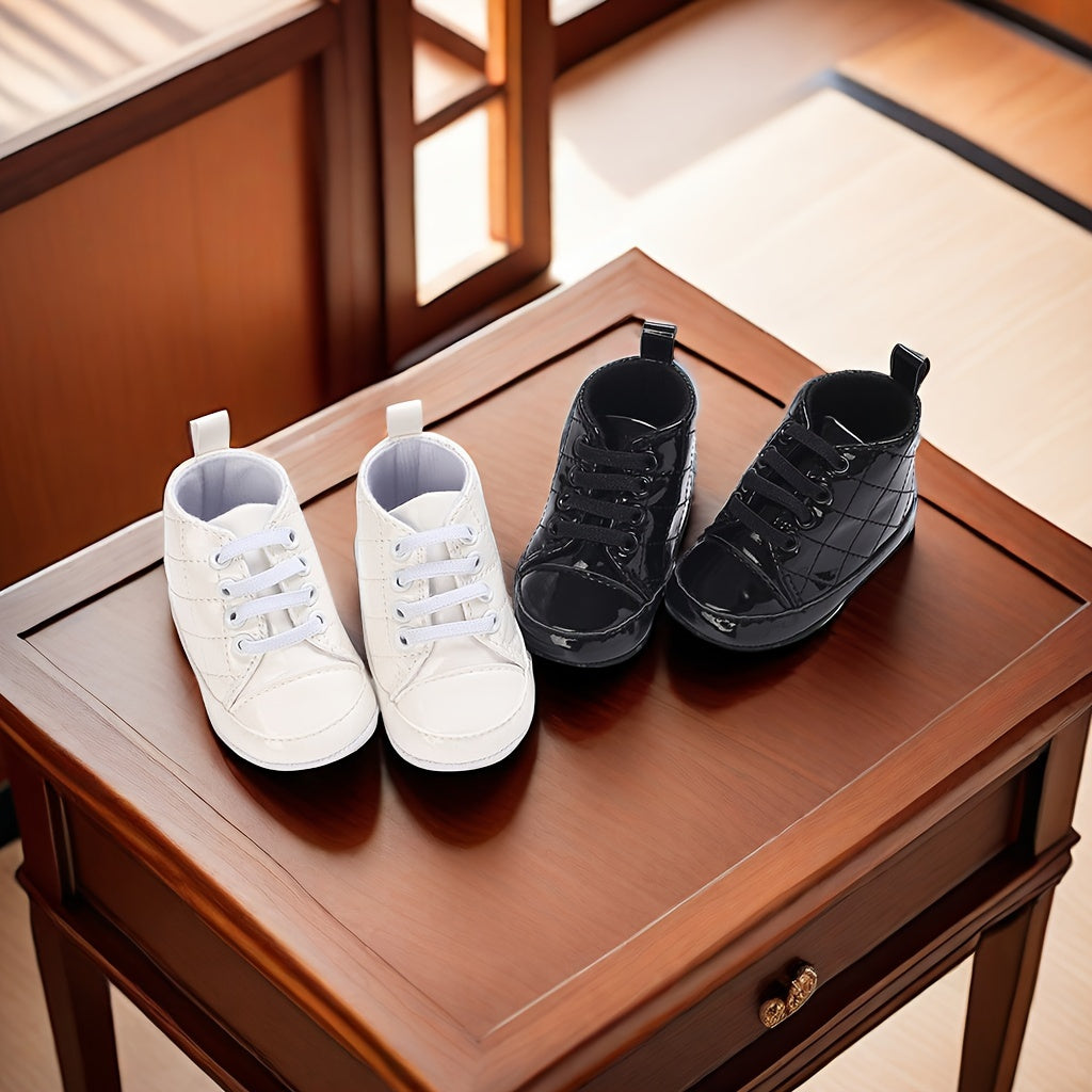 Infant High-Top Sneakers, Sports & Casual Style, Solid Color, Soft Sole Baby Walking Shoes, PU Upper, Fabric Lining, Spring/Fall Season, Slip-On Closure - Unisex First Walkers