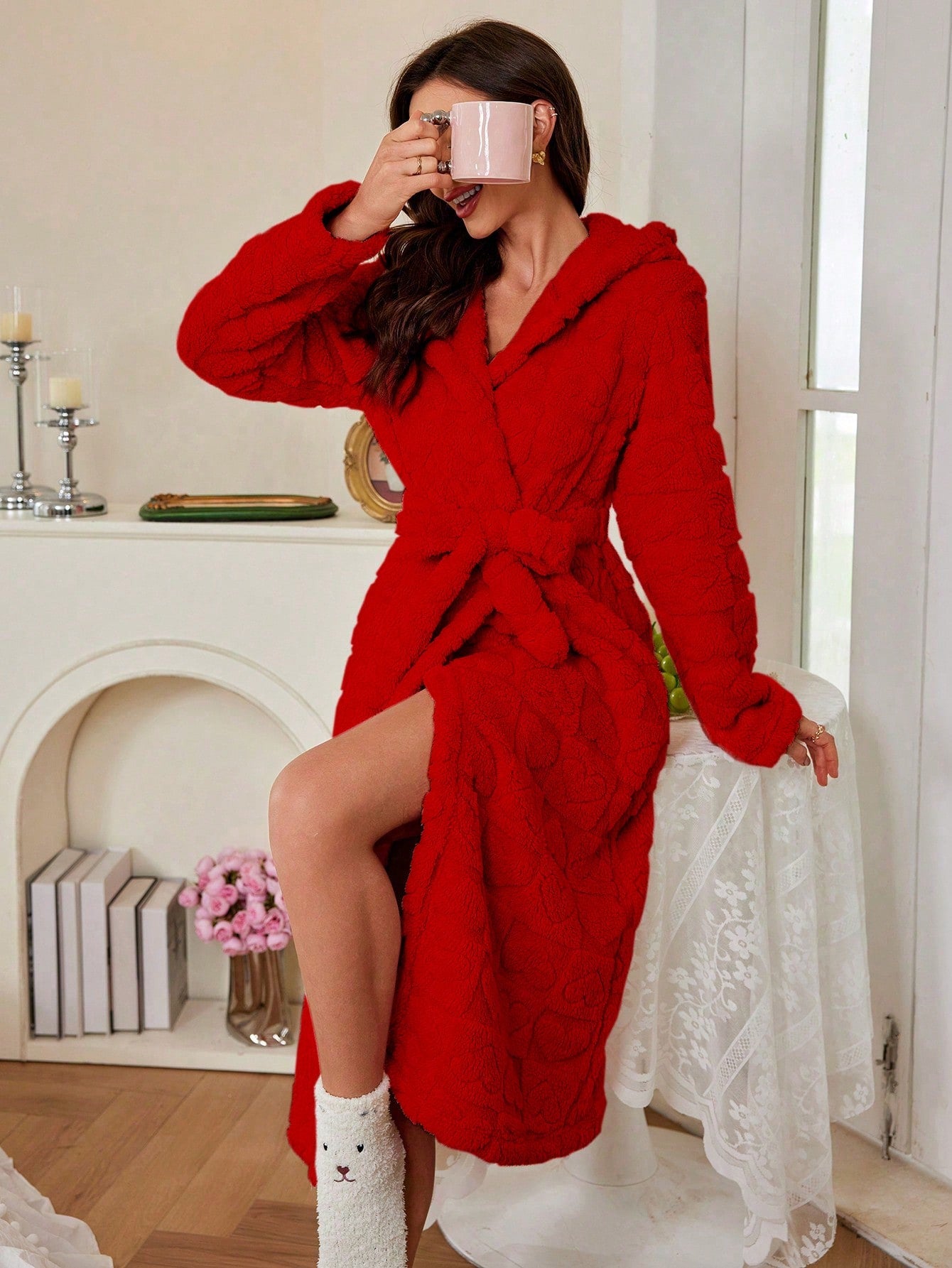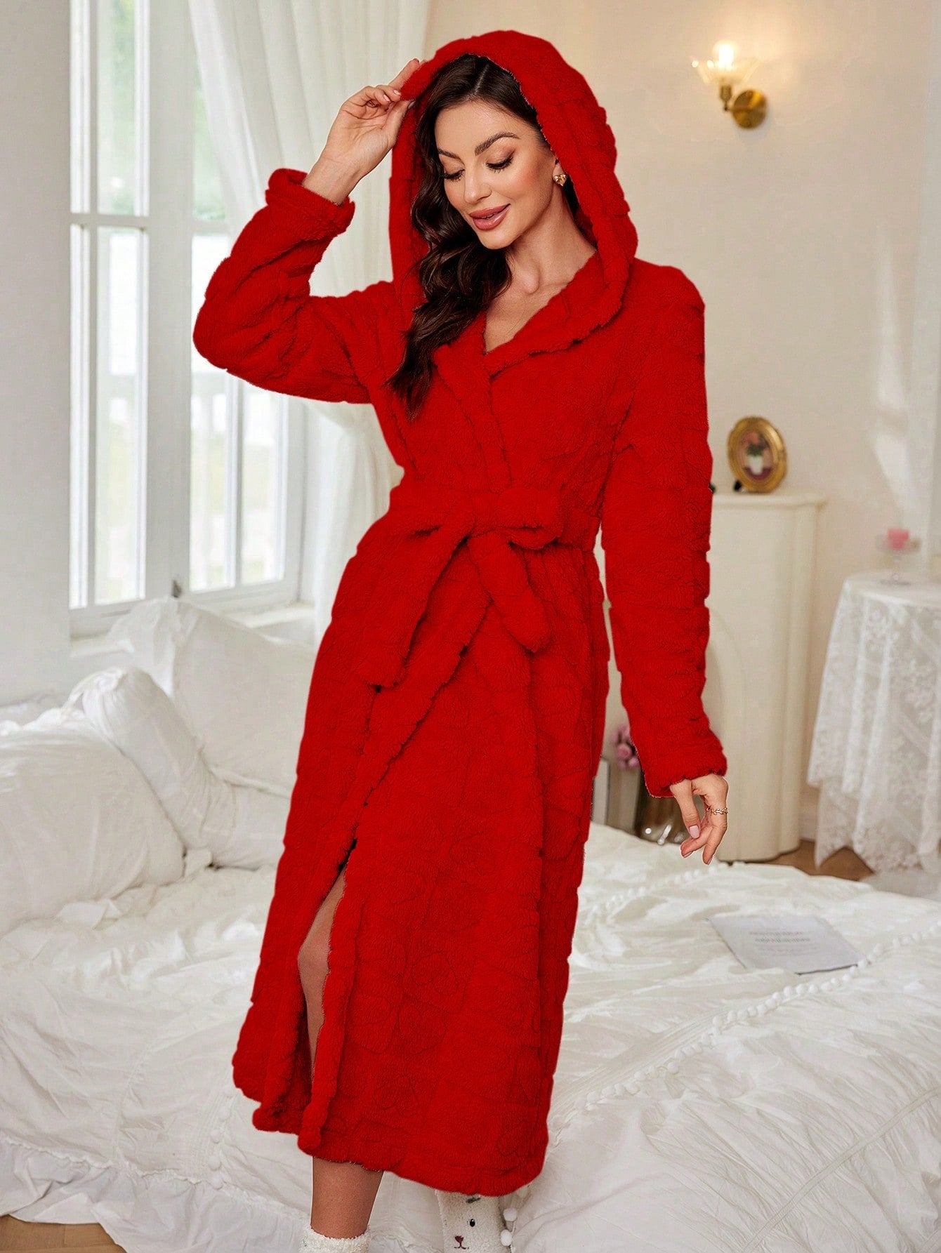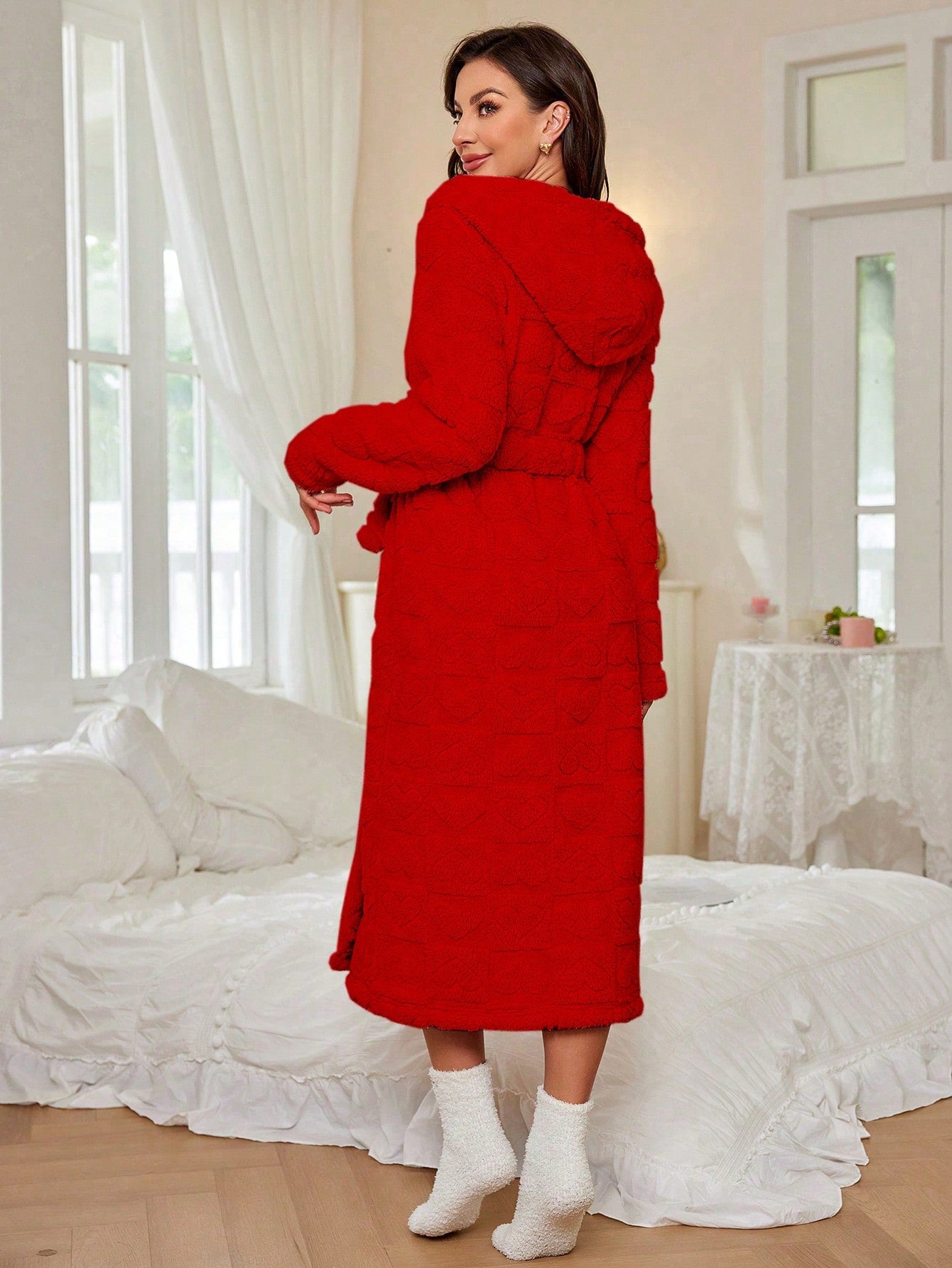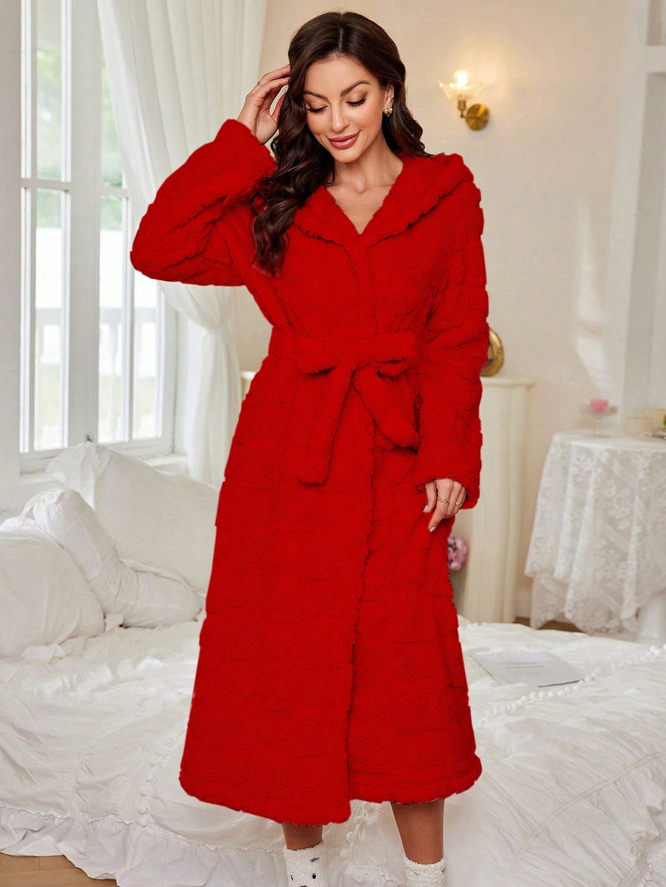 Jacquard Love Pattern Plush Robe, Warm Loungewear For Women, Autumn/Winter