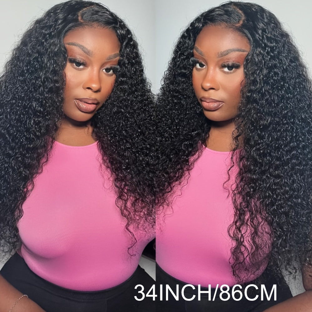 [Jerry Curl Human Hair Wig] 40Inch Jerry Curl Human Hair Wig - 13*6 Pre-Cut Lace Wigs, 12A Pre Bleached Pre Plucked 250% Density Curl Wave Lace Frontal Wig - 3 Seconds To Wear For Beginners, Glueless, Natural Color
