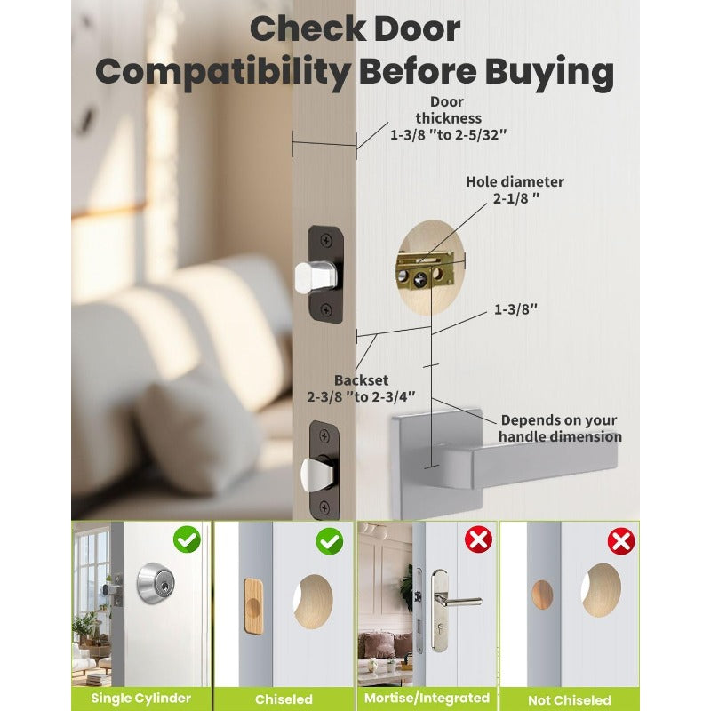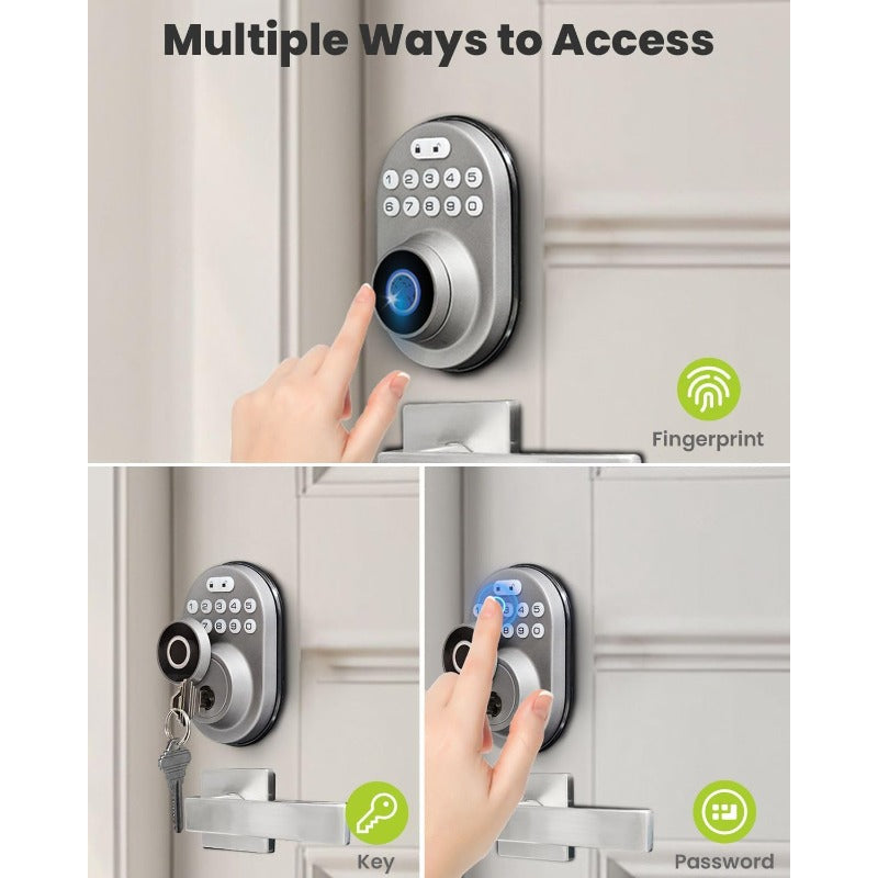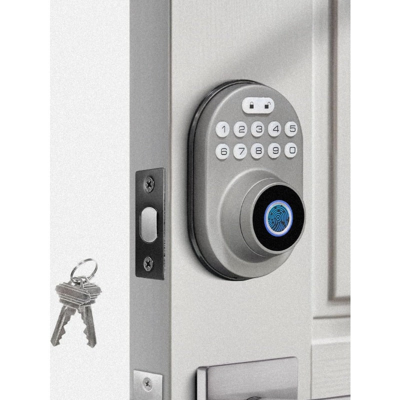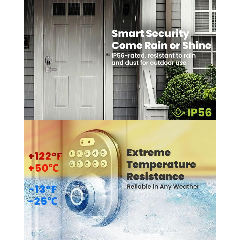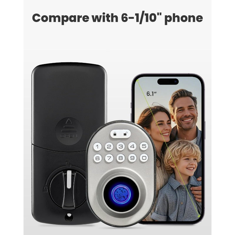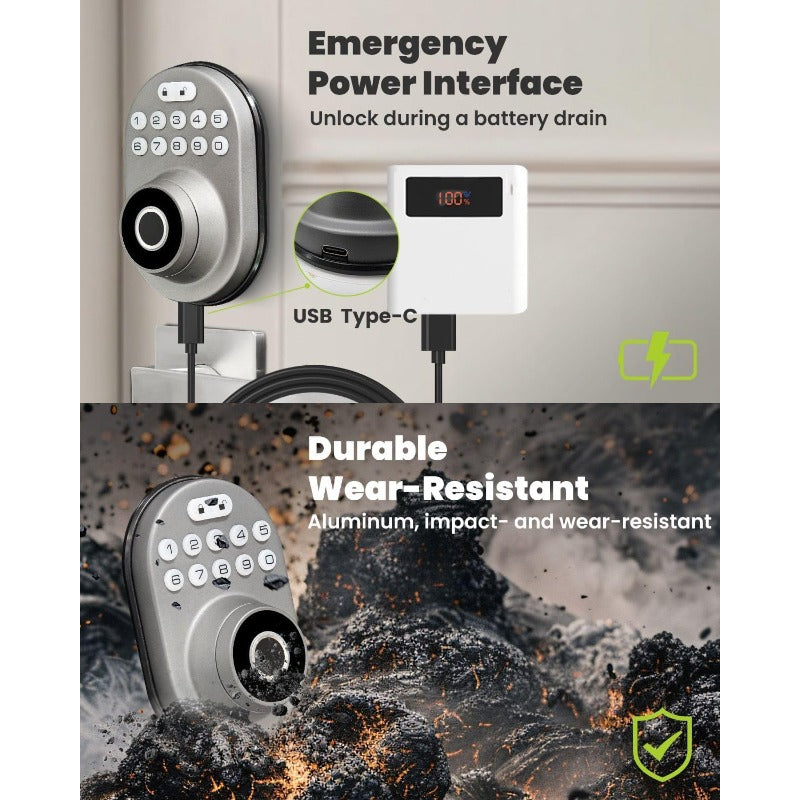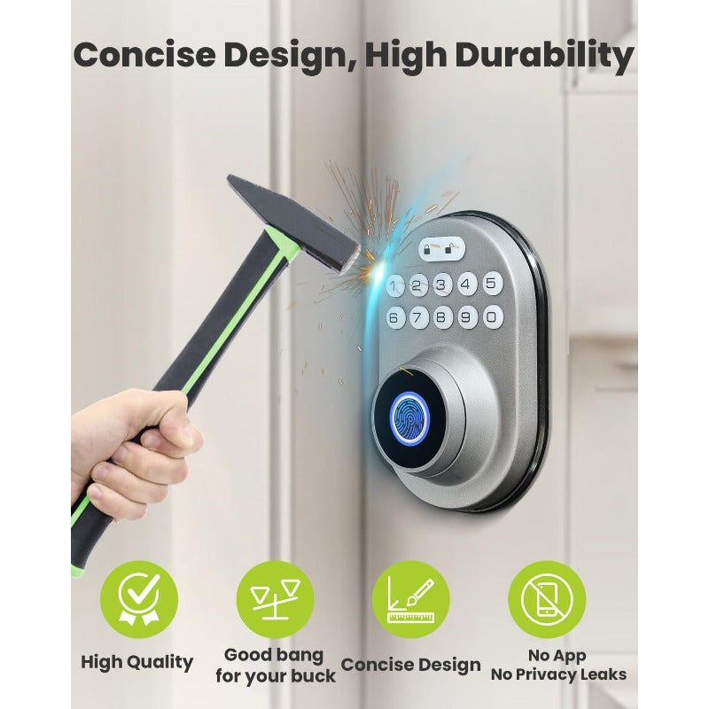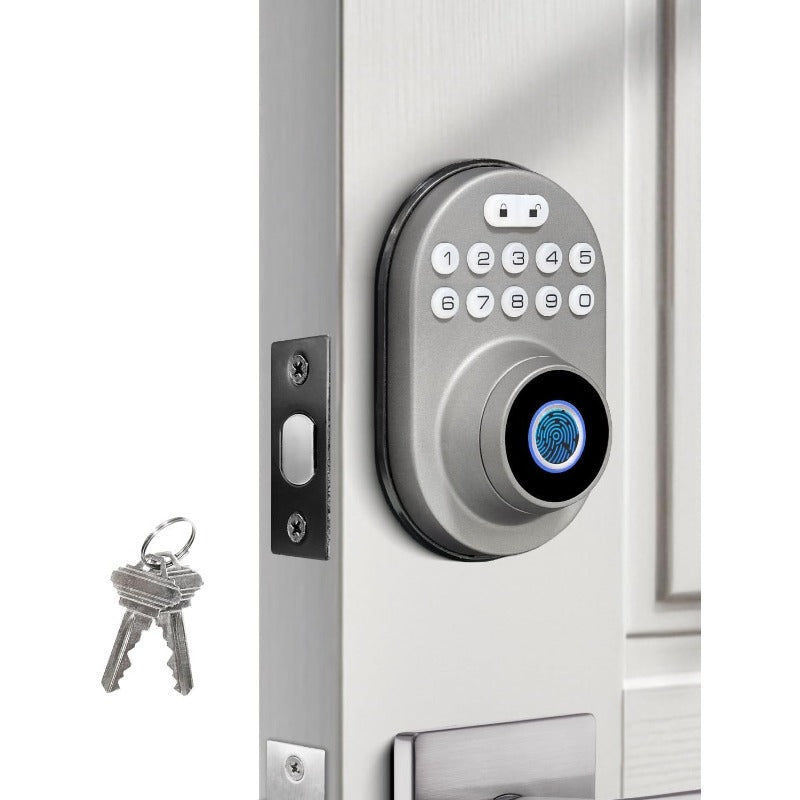 KeylEntry Deadbolt Smart Lock: UF03SG GreenShield No APP Electric Locks for Front Door Digital Exterior Locksets Automatic Biometric Fingerprint with Keypad Waterproof Sky Gray