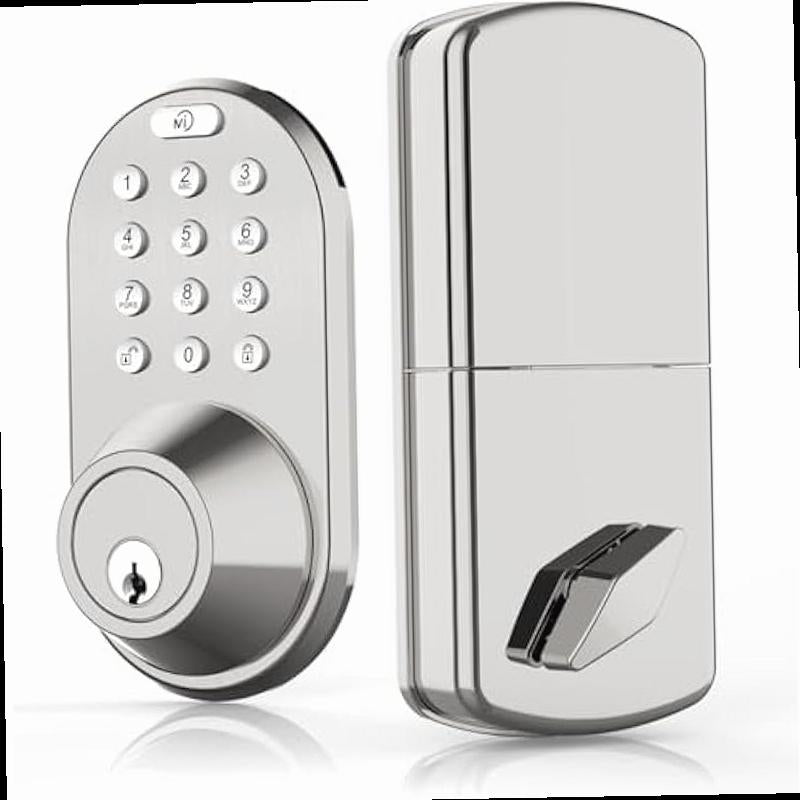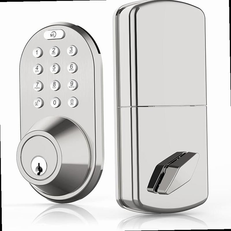 Keyless Entry Keypad Door Lock Upgraded Smart Electronic Digital Code Deadbolt for Front Doors with Keys One Touch Locking Easy Installation Satin Nickel