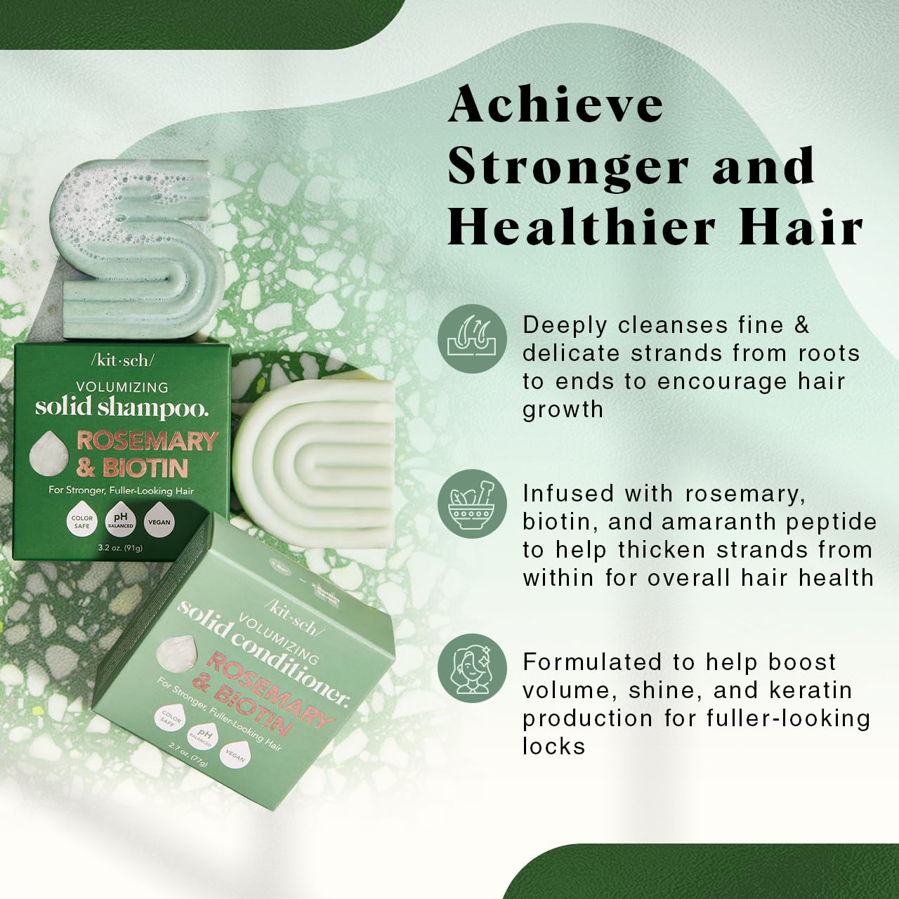 Kitsch Rosemary & Biotin Shampoo and Conditioner Bar Set for Thinning Hair - Volume Shampoo & Conditioner Bar for Men and Women, Hair Thickening & Regrowth Combo, Paraben Free, Made in USA - 2pcs