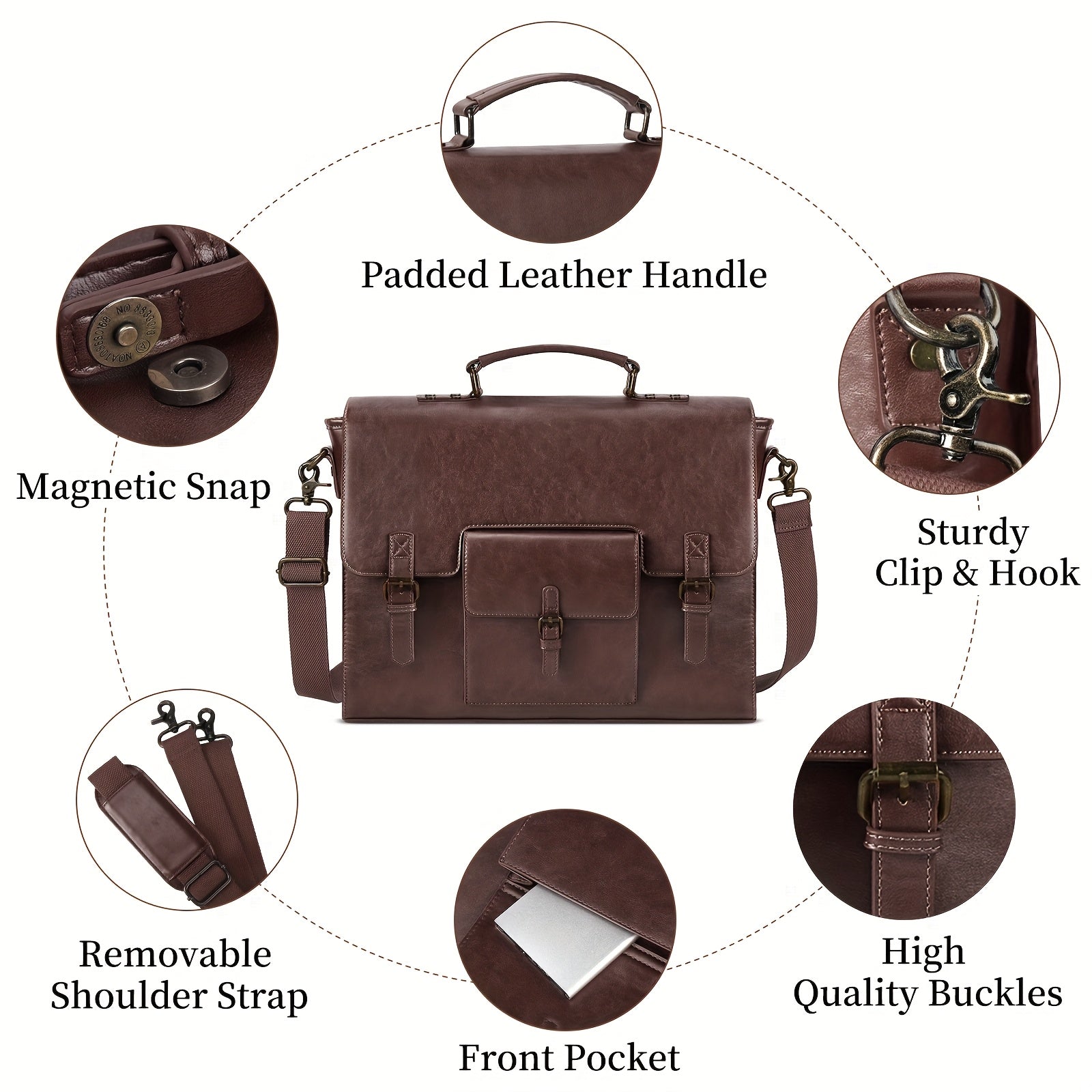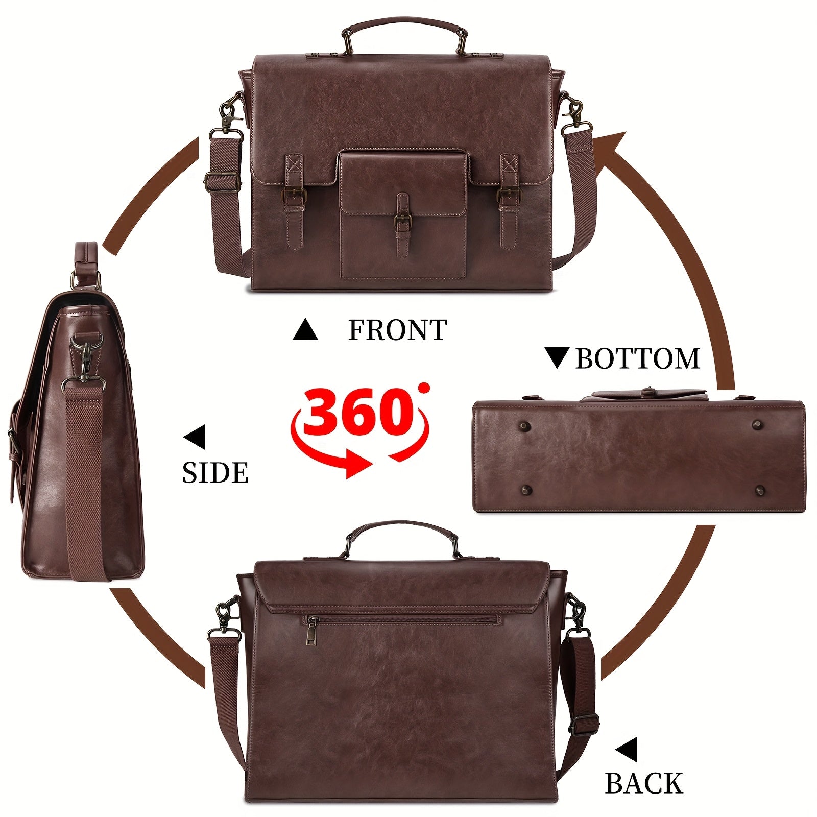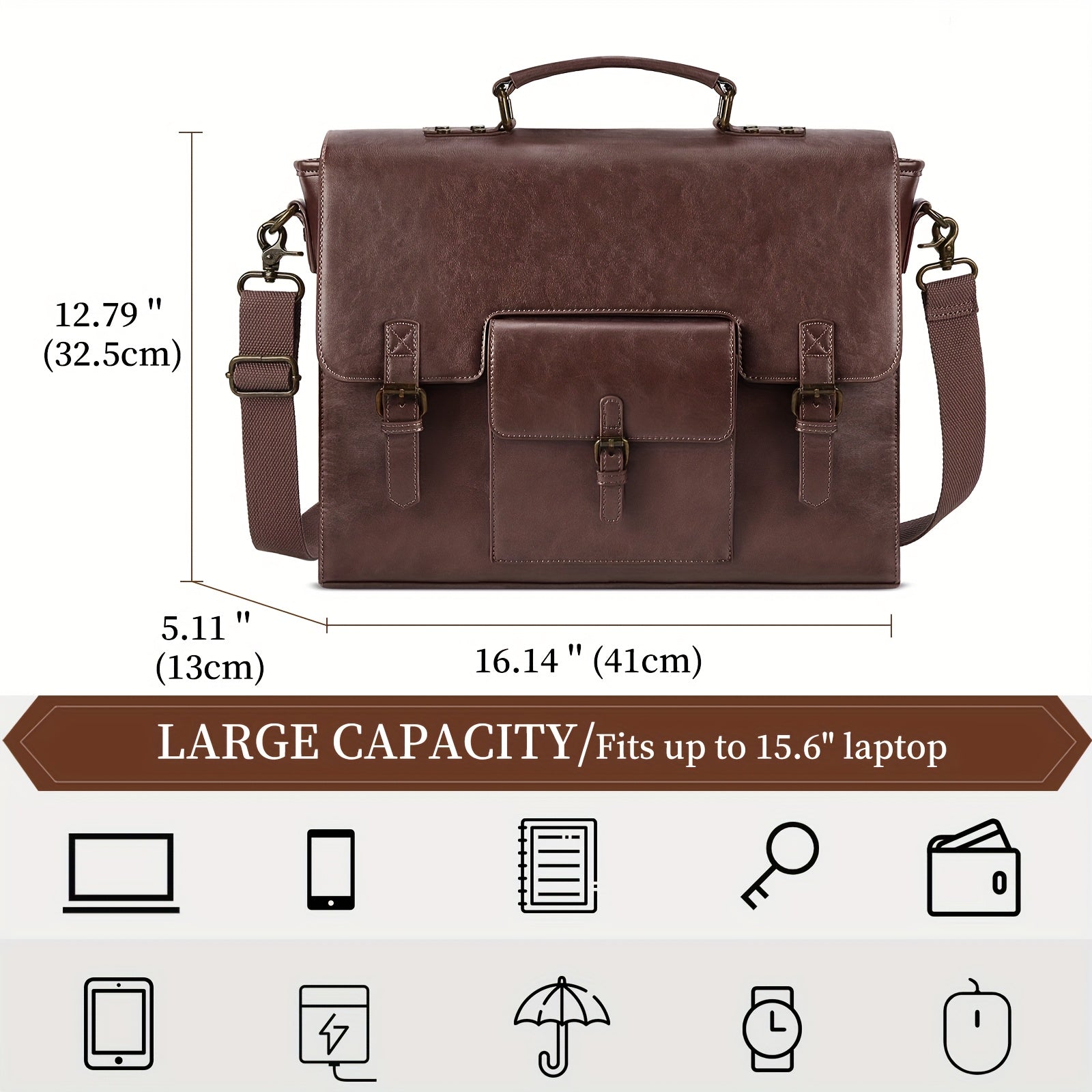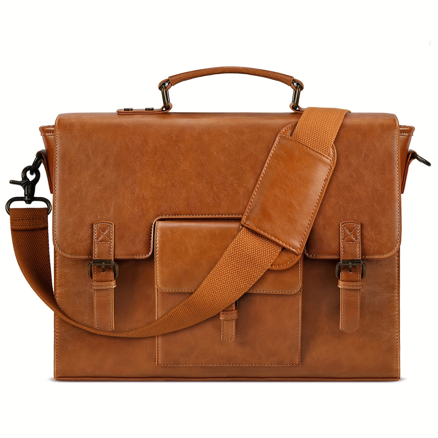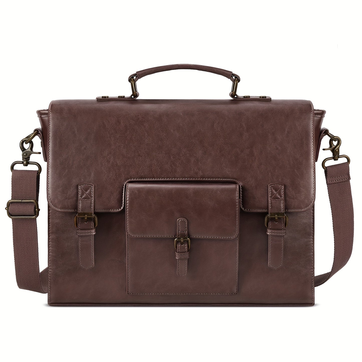 KTMOUW Messenger Bag for Men 15.6 Inch Waterproof PU Vintage Faux Leather Laptop Briefcase Large Satchel Shoulder Bag Office Travel College Computer Laptop Bag, Coffee
