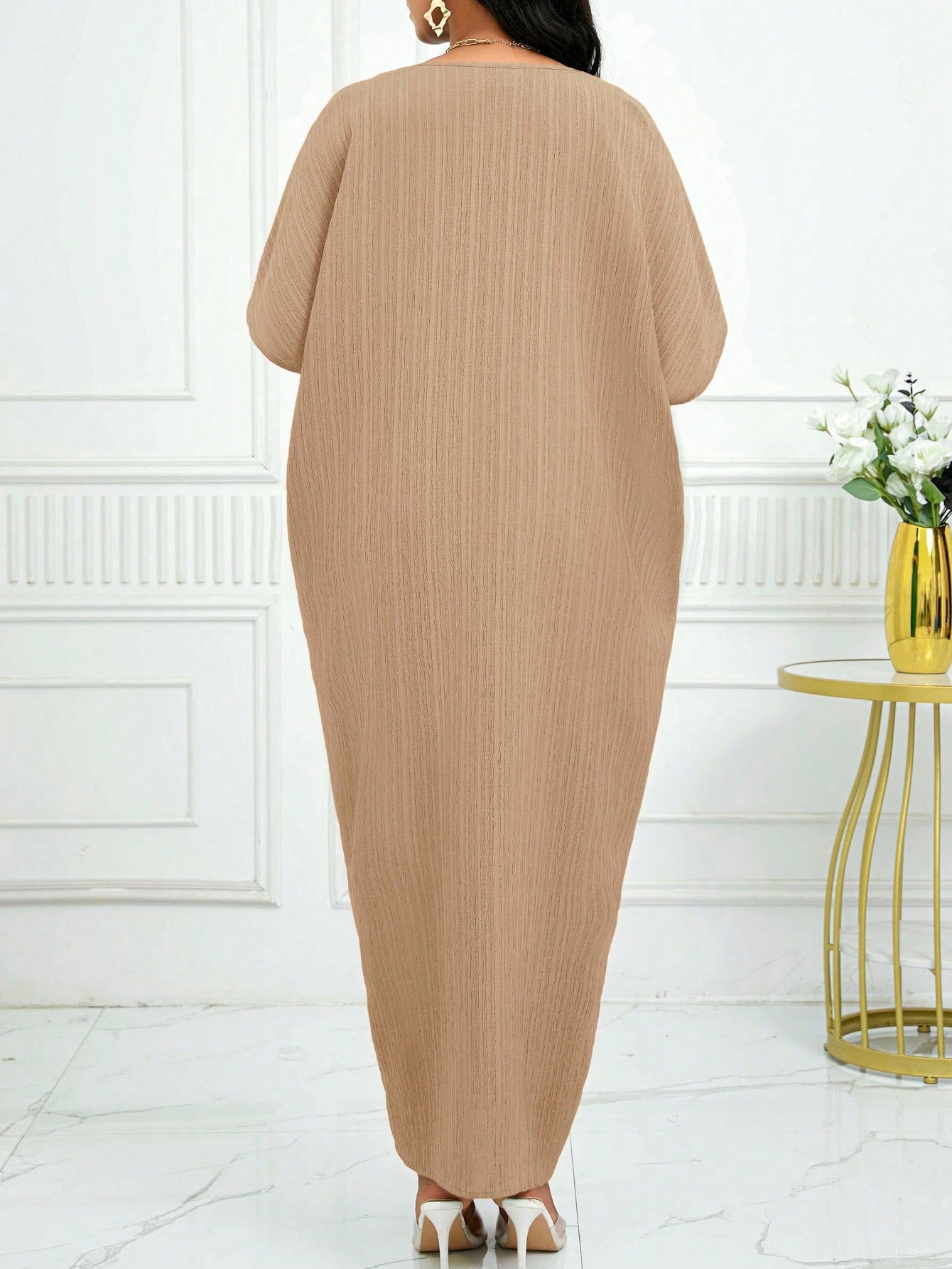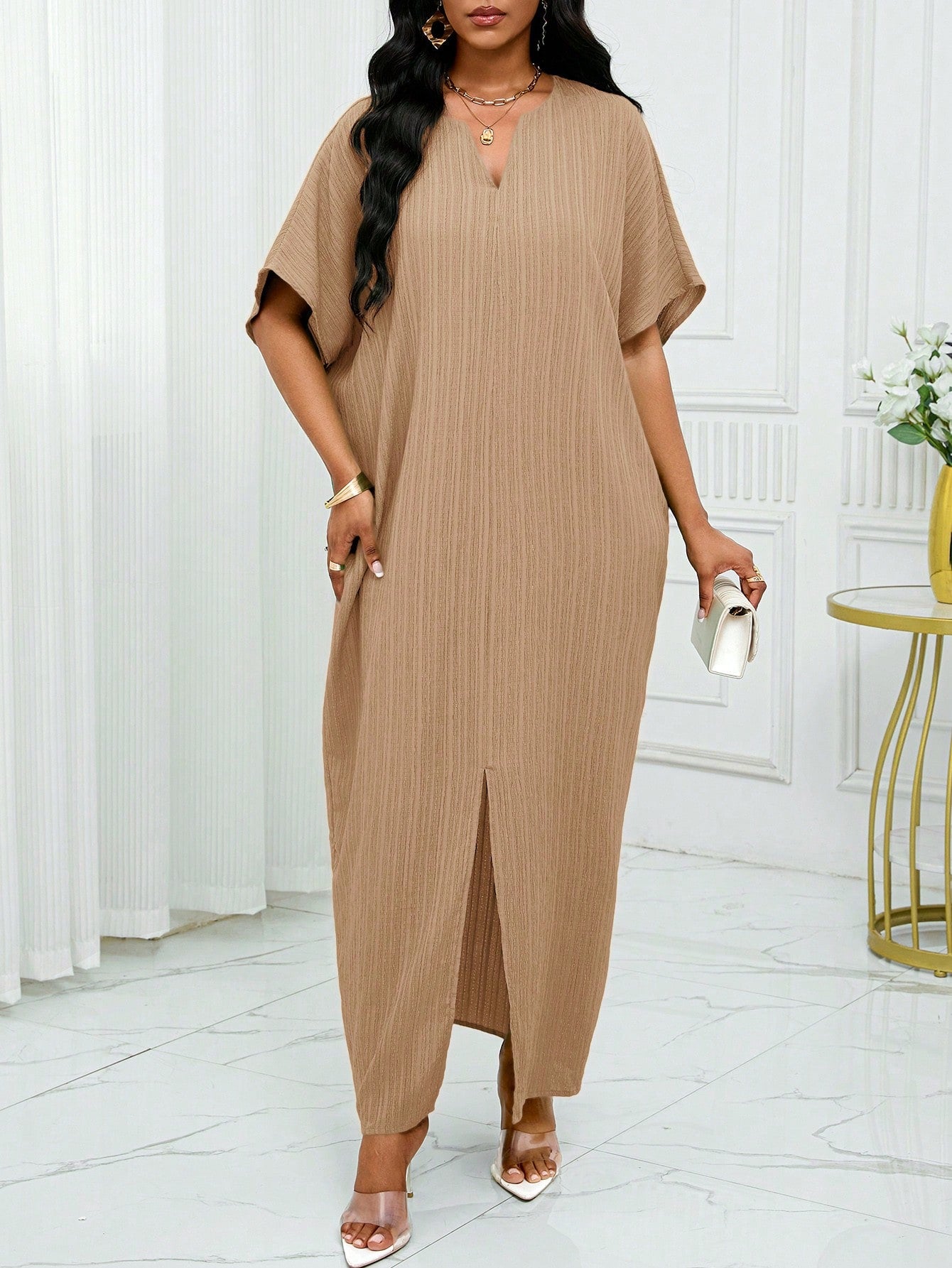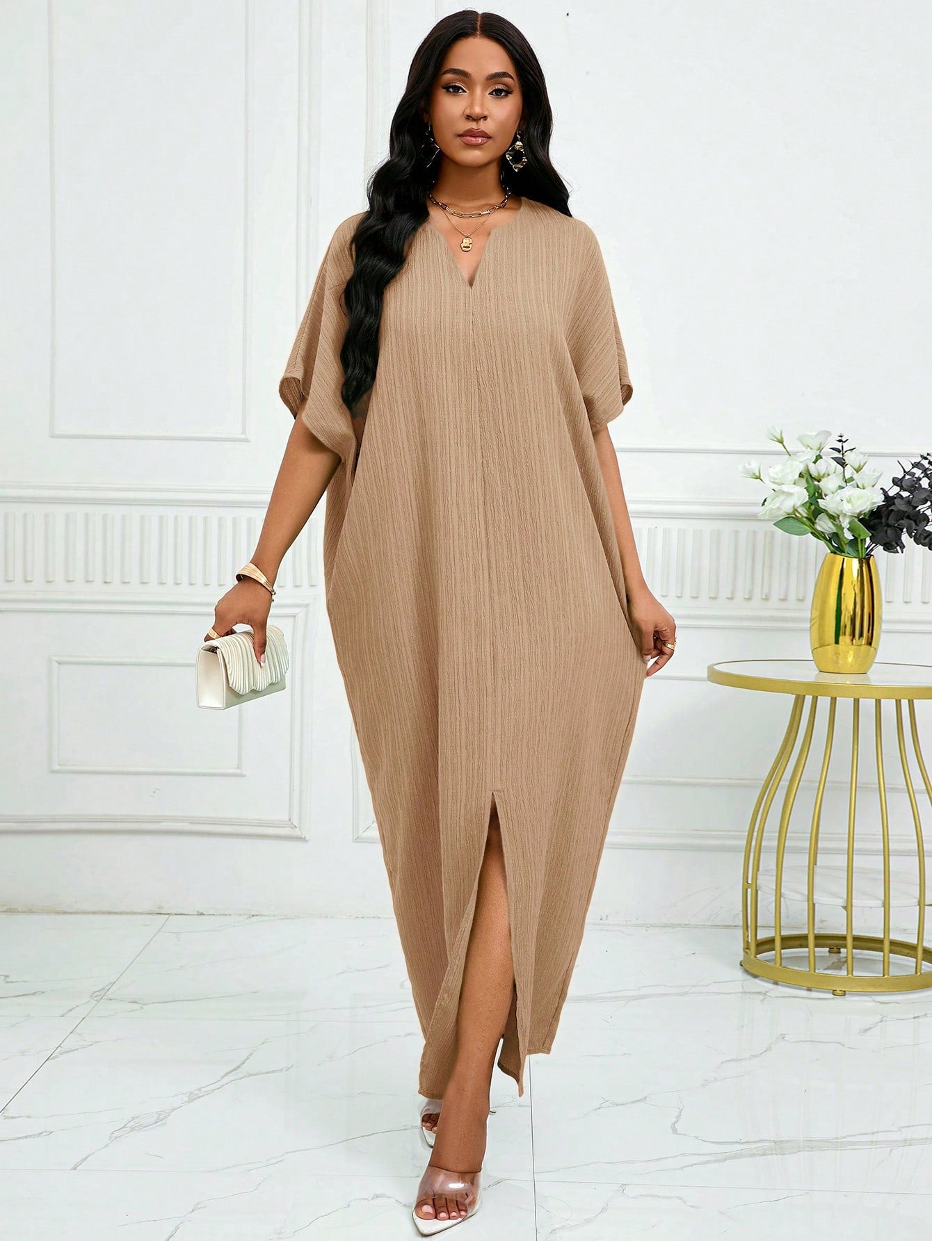 Lady Autumn And Summer Simple Solid Notched Batwing Sleeve Split Hem Dress,Summer DressesSpring Clothes