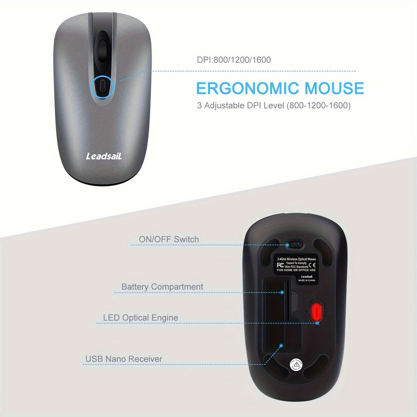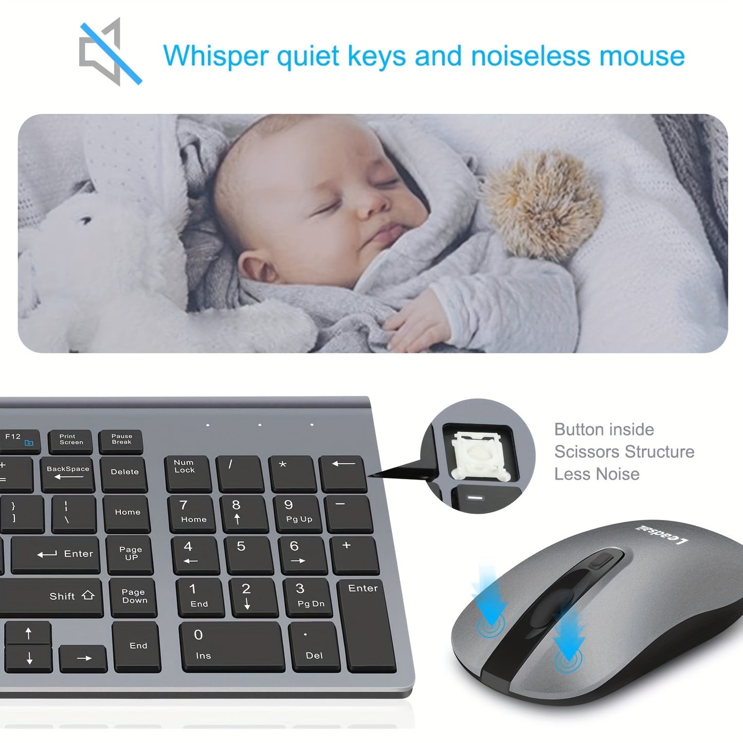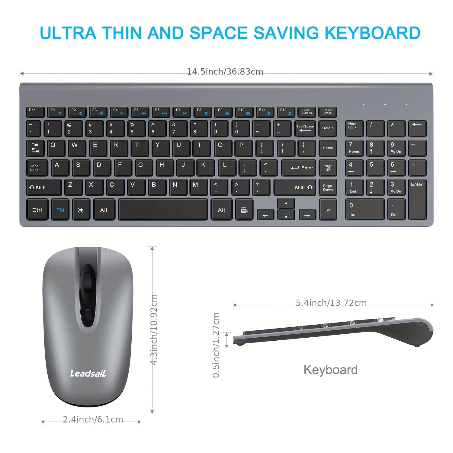 LeadsaiL Ensemble clavier et souris sans fil USB, compact et silencieux pour ordinateur portable, ordinateur de bureau, PC, KF10-Gris