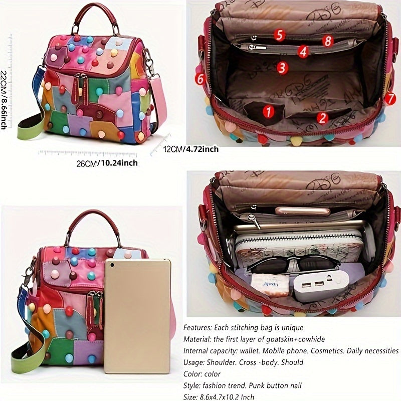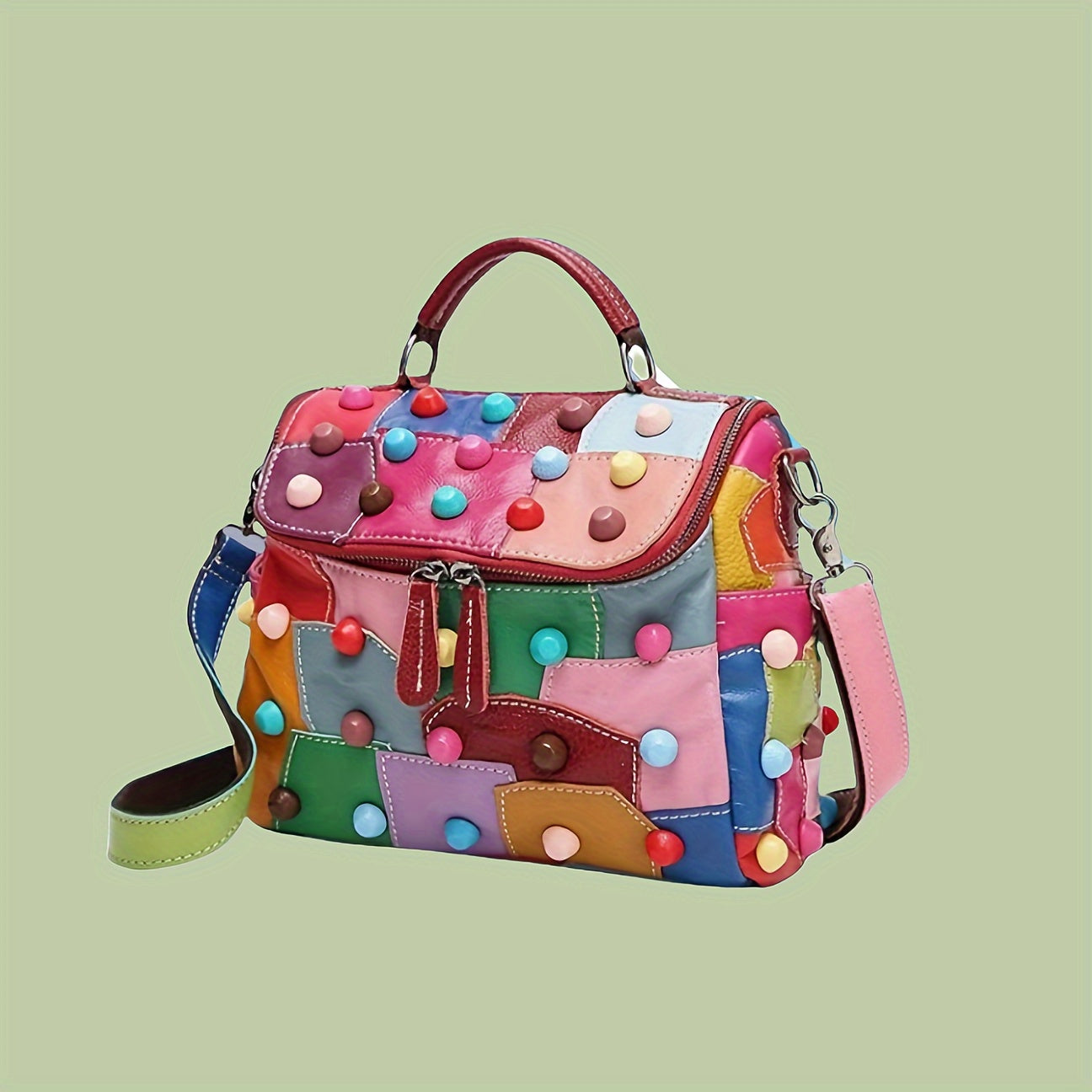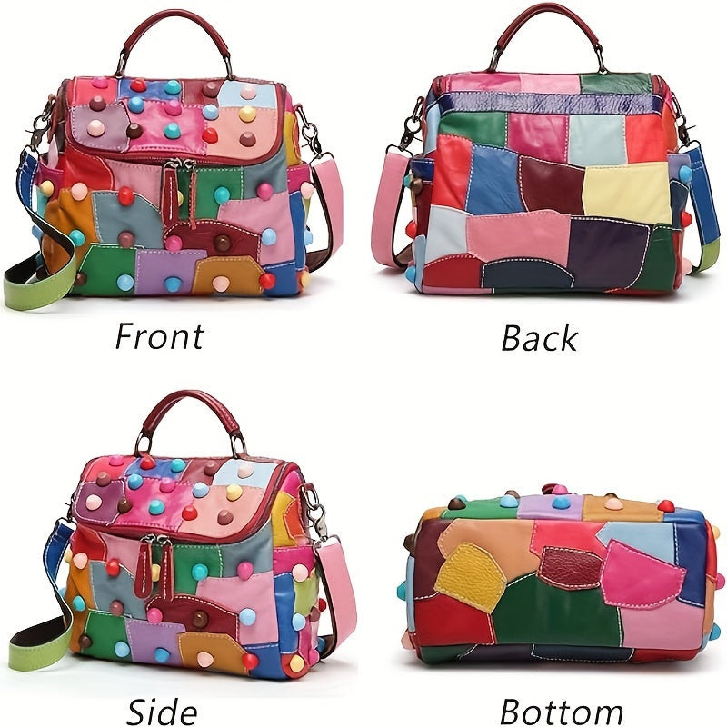 Leather Irregular Splicing Women's Bag Fashion Contrasting Sheepskin Mailman Bag Large Capacity Splicing Handbag Shoulder Crossbody Bag