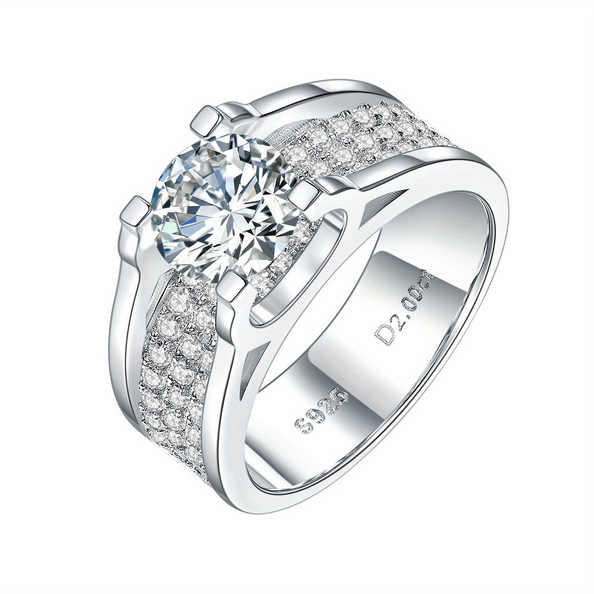 Light Luxury Men'S D Color 2 Carat Moissanite Ring S925 Sterling Silvery Plated 18k Jewelry Classic Design Fashion Luxury Jewelry, Ideal for Holiday and Birthday Gifts