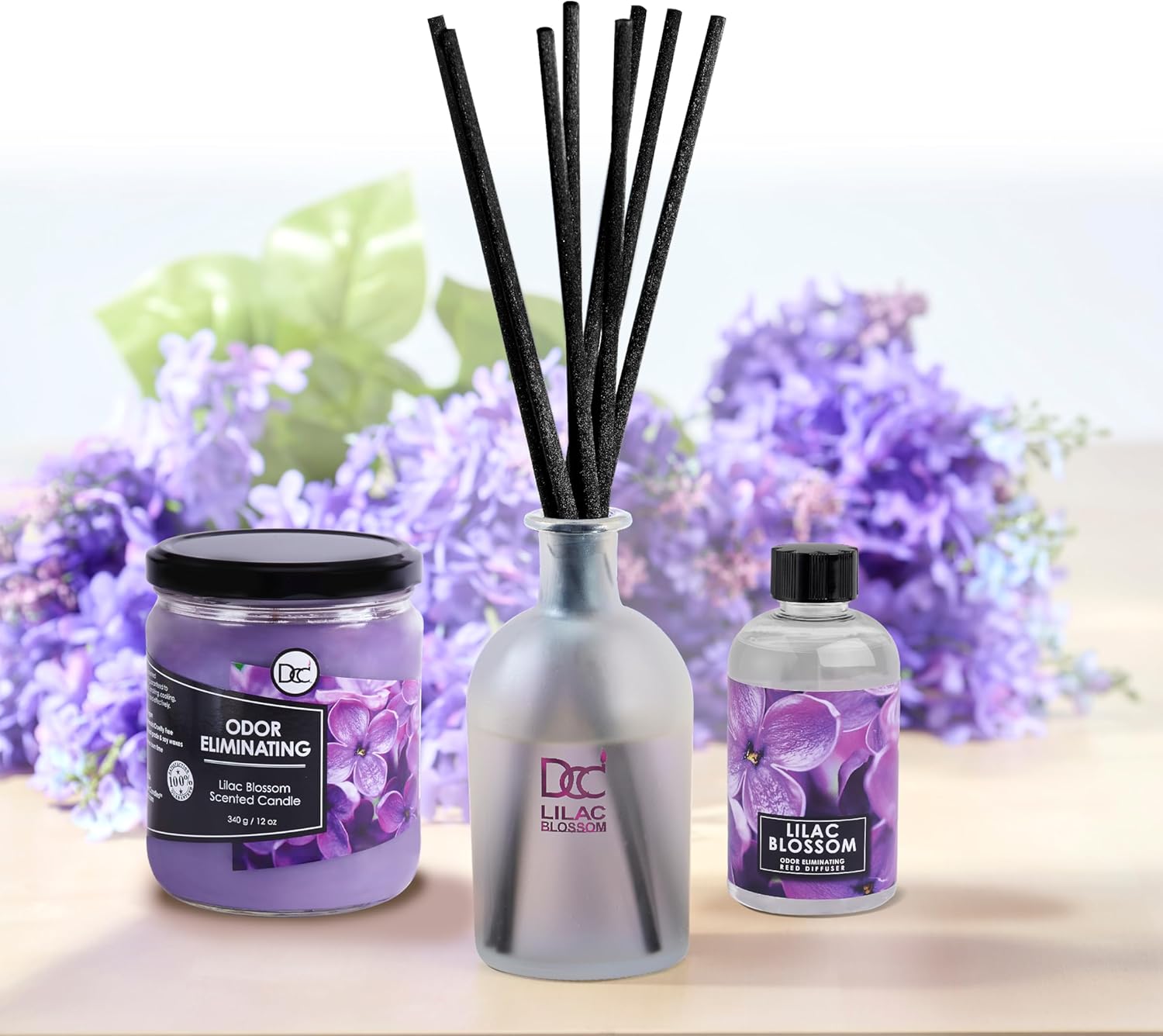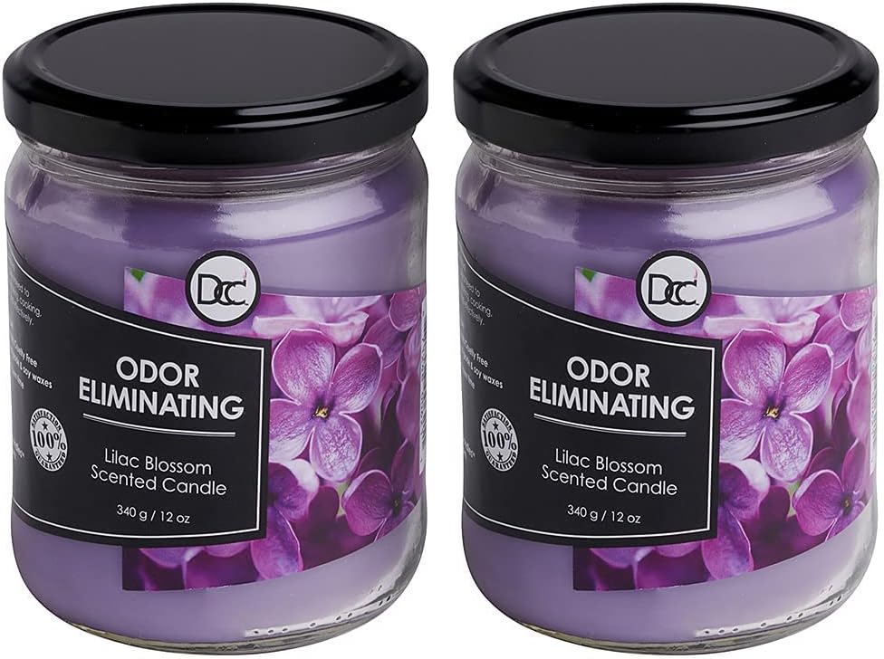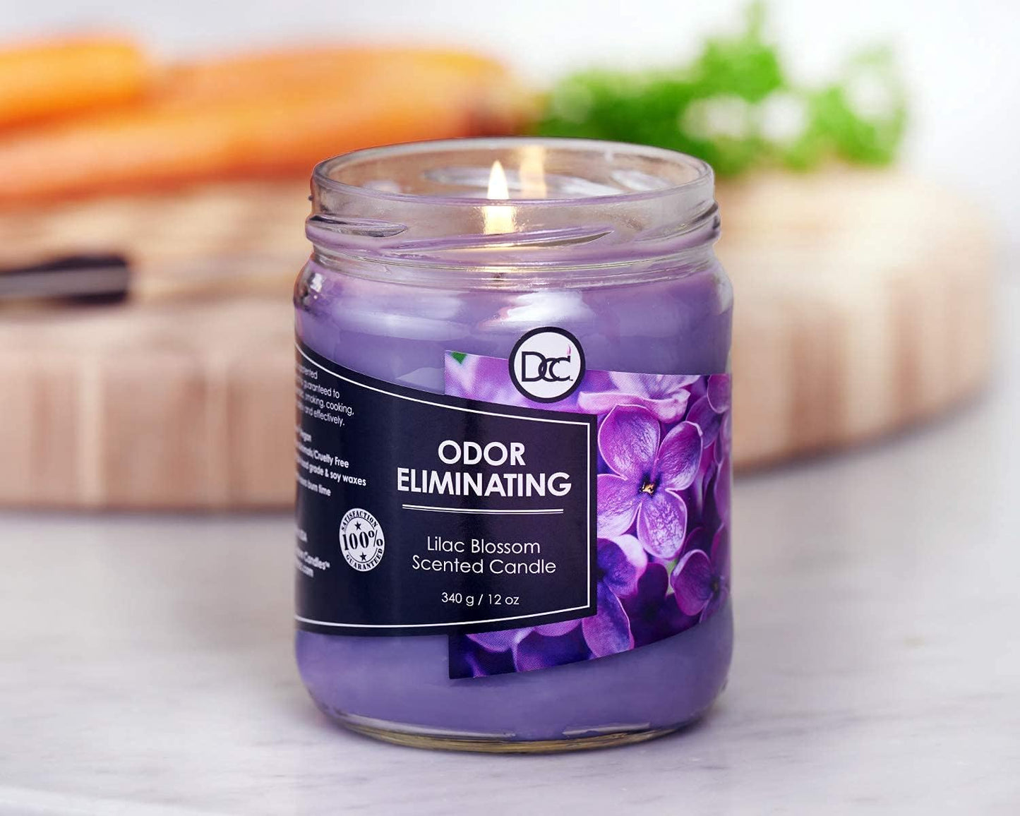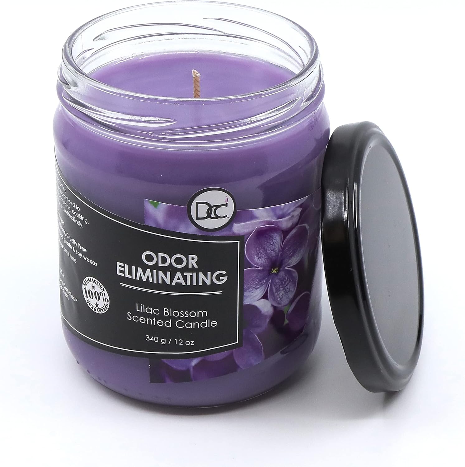 Lilac Blossom Odor Eliminating Highly Fragranced Candle - Eliminates 95% of Pet, Smoke, Food, and Other Smells Quickly - Up to 80 Hour Burn time - 12 Ounce Premium Soy Blend