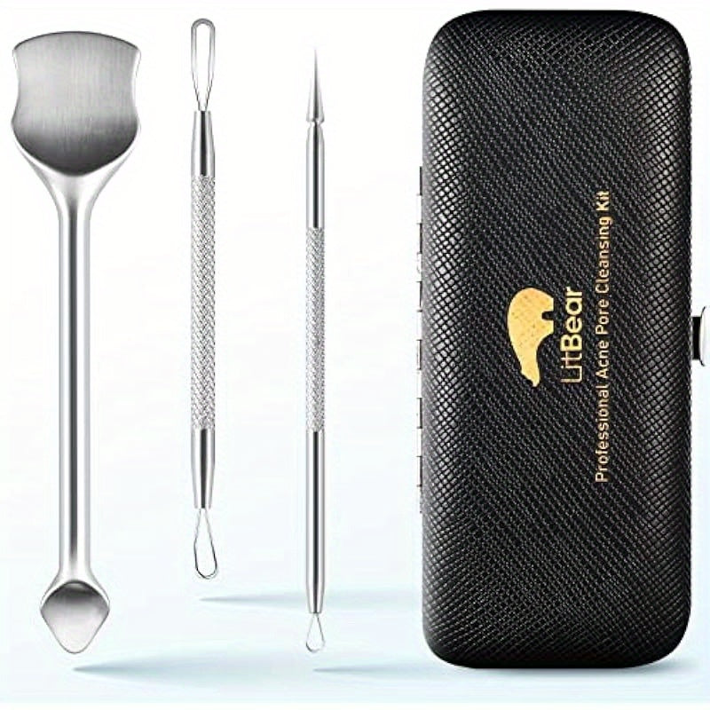 LitBear Pore Prep Tool Blackhead Remover Pimple Popper Tool Kit Stainless Steel Blackhead Extractions Tool for Acne Whitehead Popping Blemish Comedone