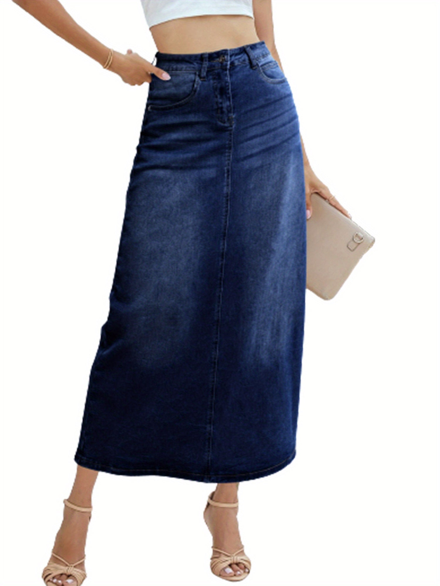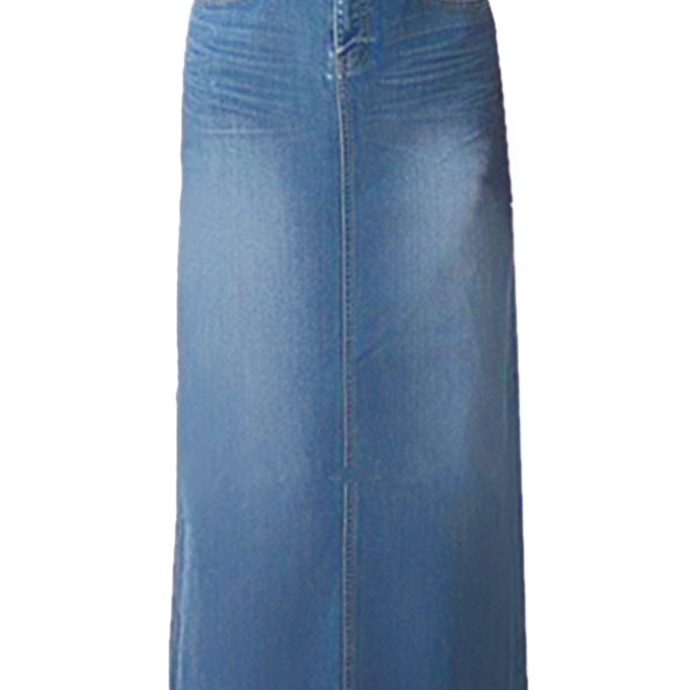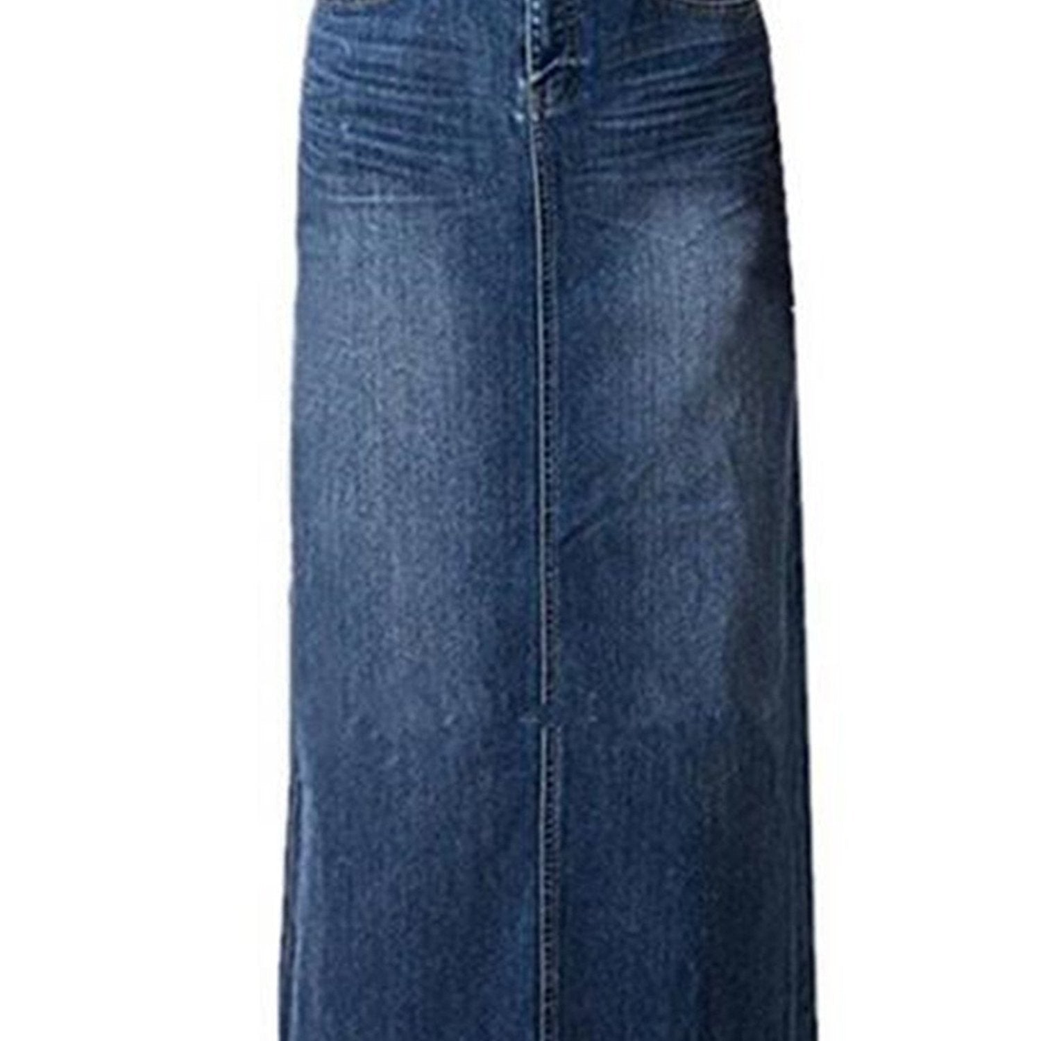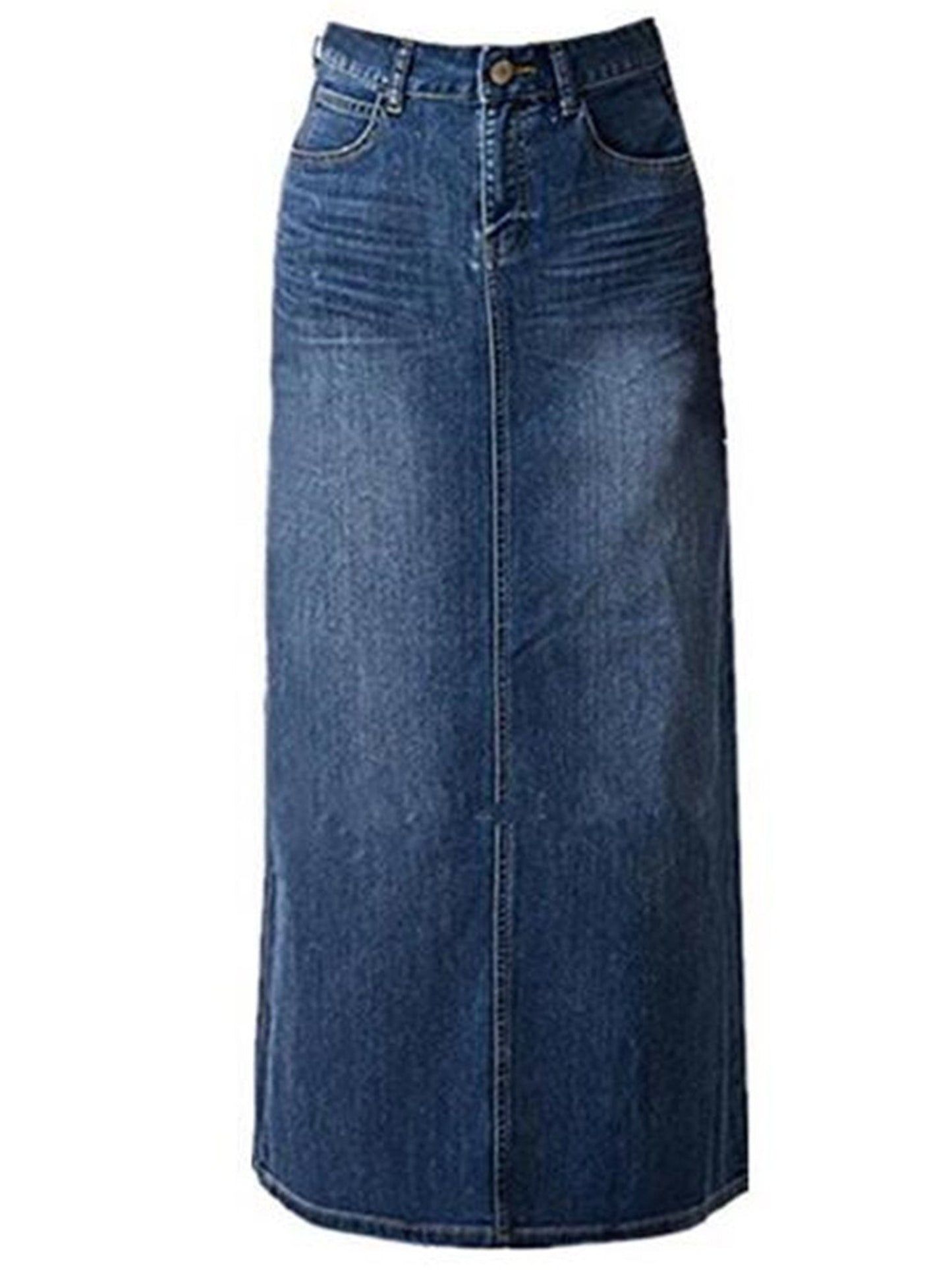 Long Denim Skirt for Women Casual A-Line Denim Maxi Skirt Stretch High Waisted Jean Skirt with Pocket Blue