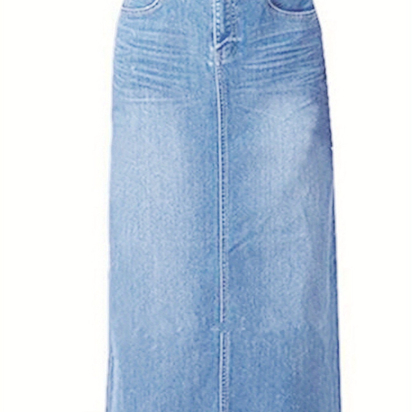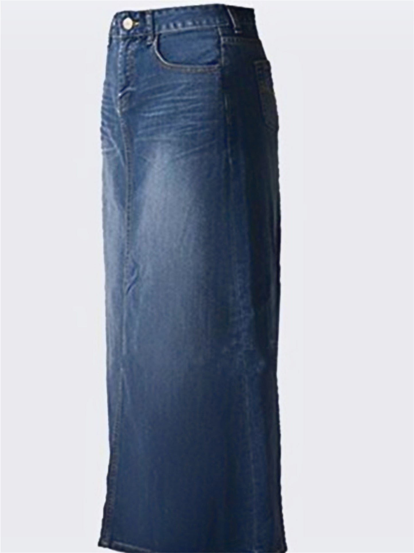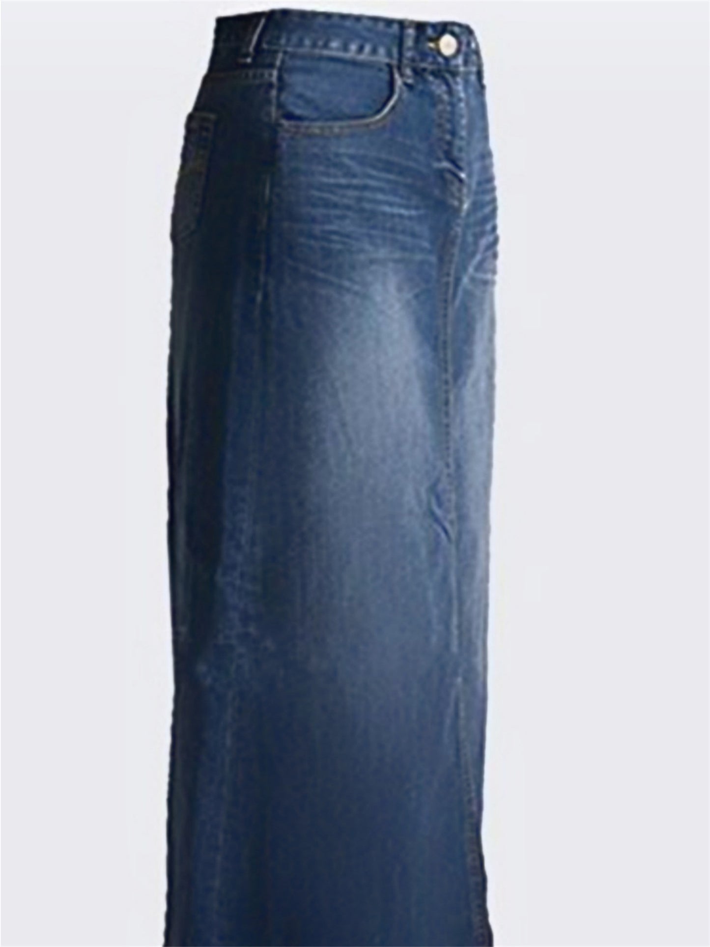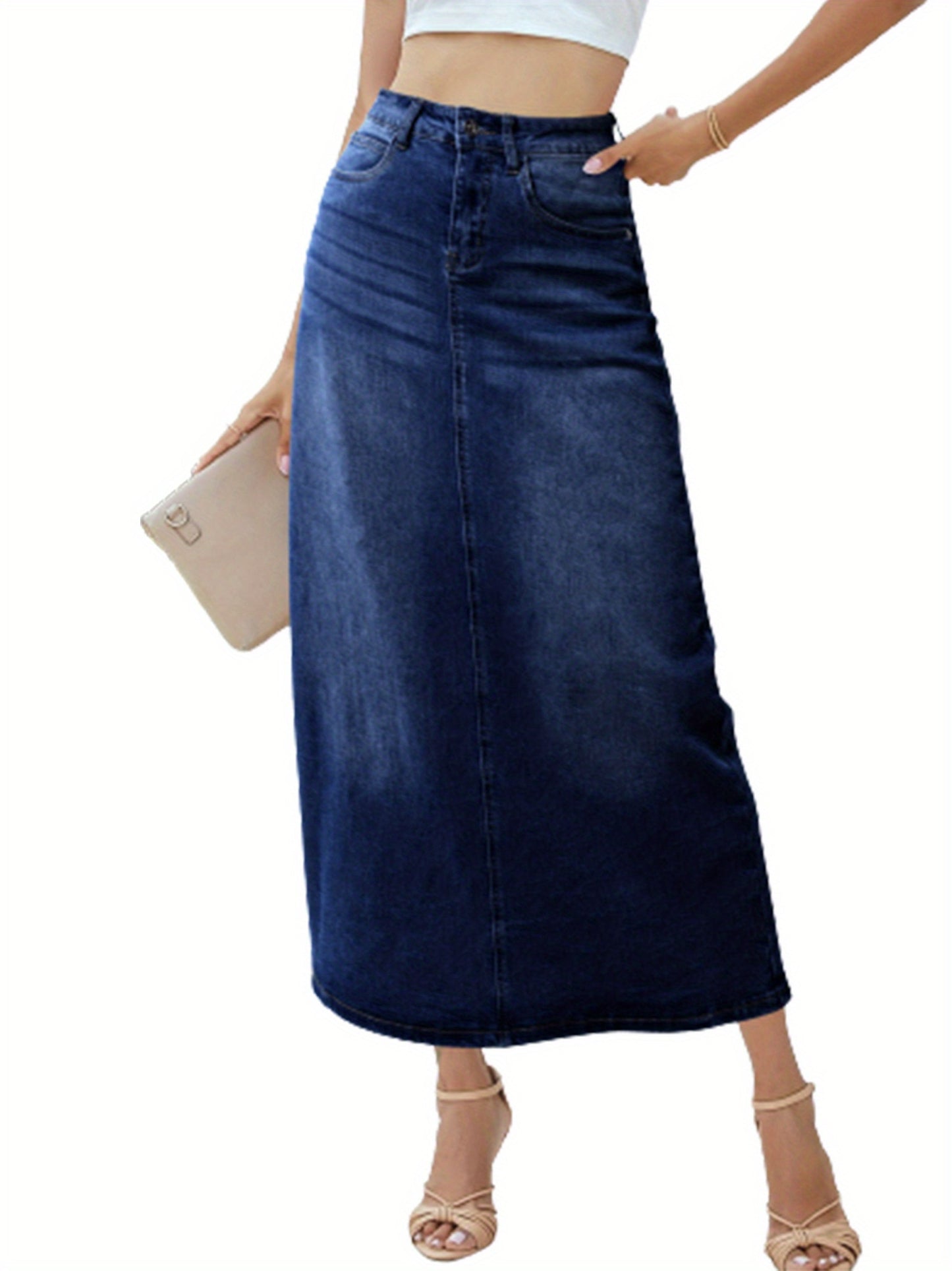 Long Denim Skirt for Women Casual A-Line Denim Maxi Skirt Stretch High Waisted Jean Skirt with Pocket Blue