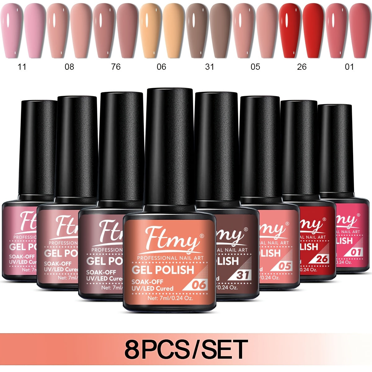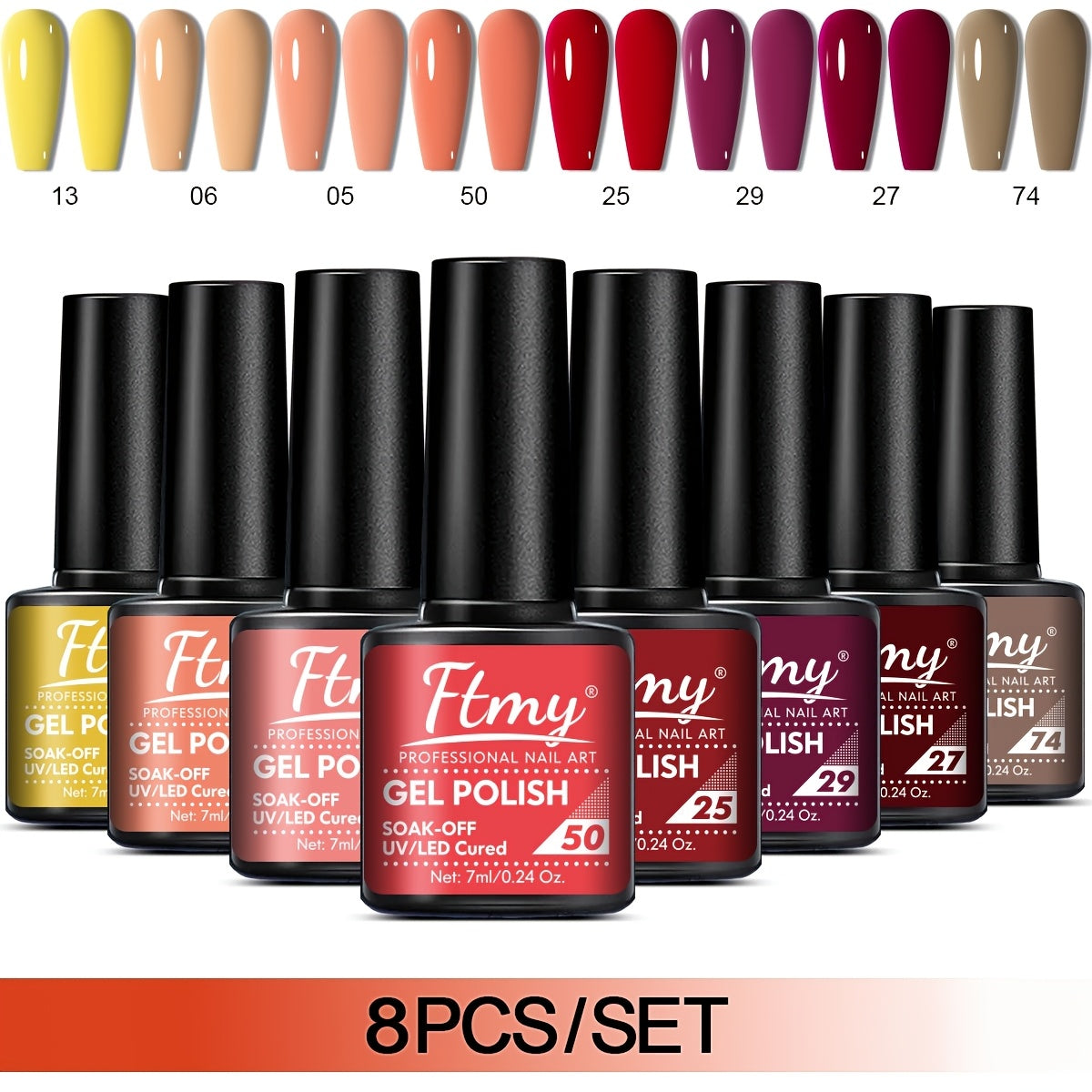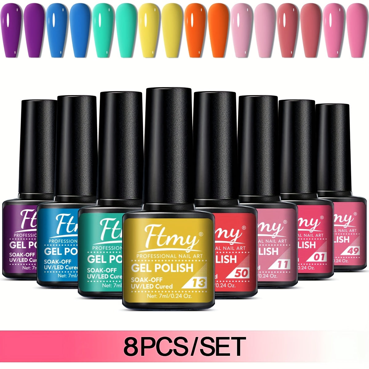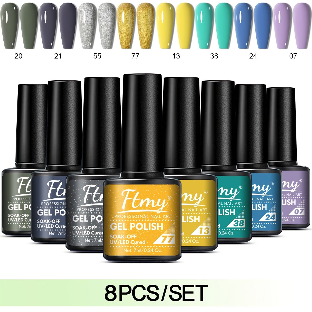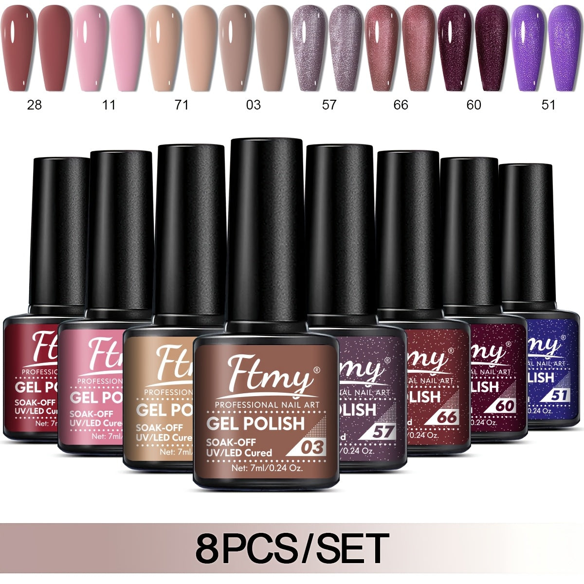 [Long-Lasting Nail Gel] 8pcs Gel Nail Polish Set, Long-Lasting Soak-Off UV LED Nail Gel, Unscented, Solid & Glitter Colors, 7ml Each