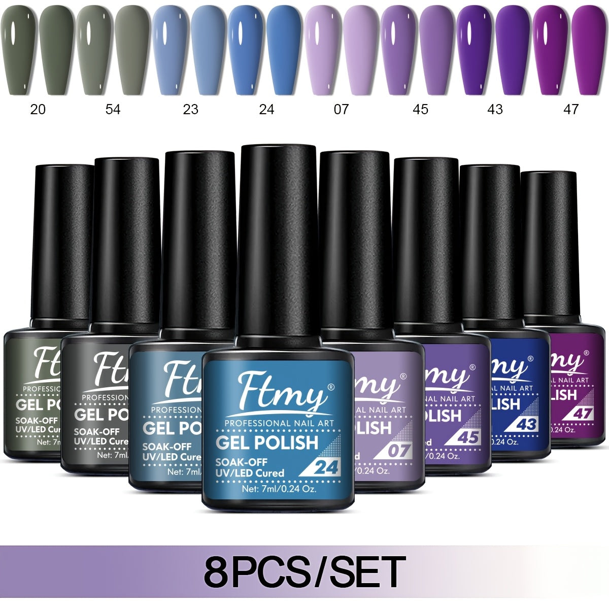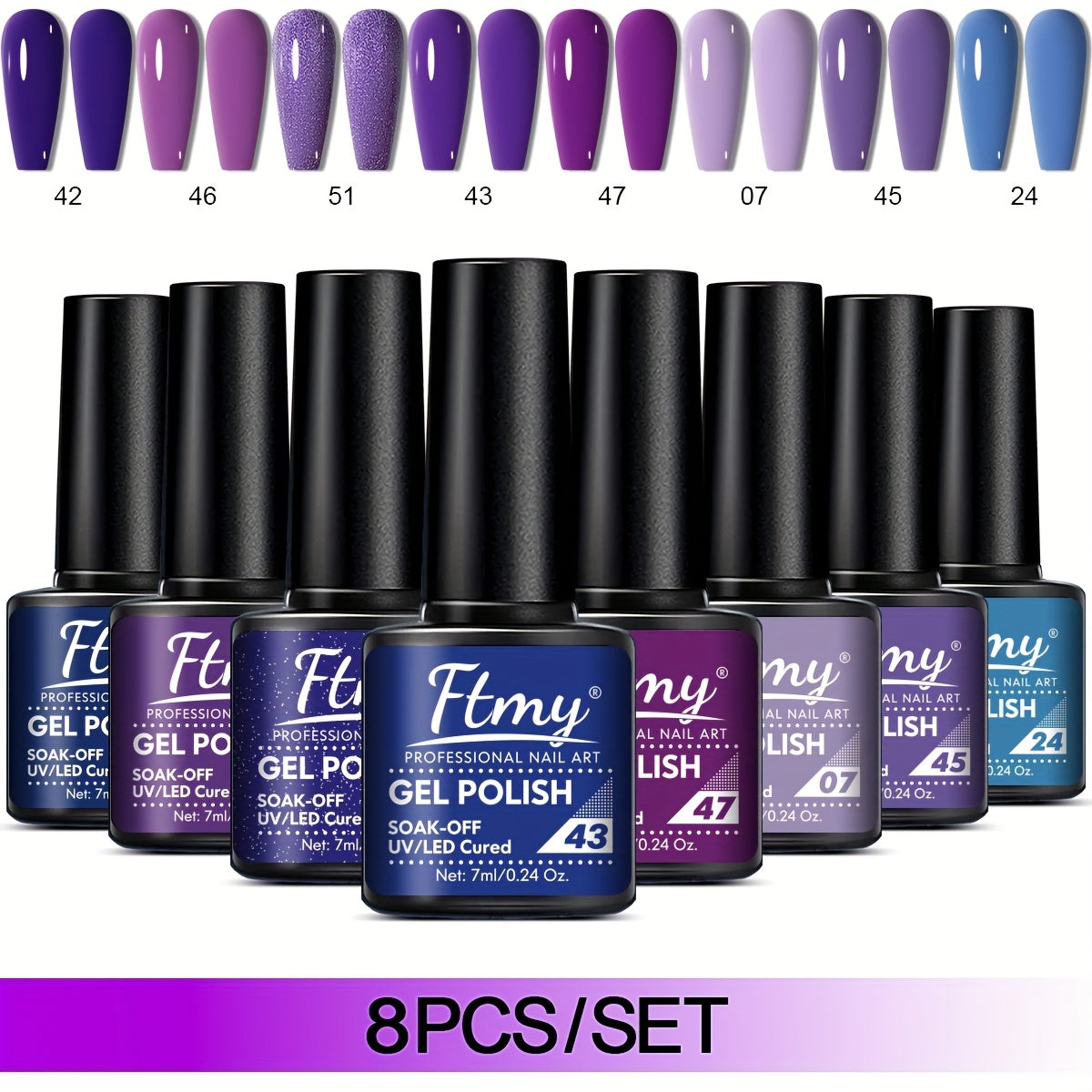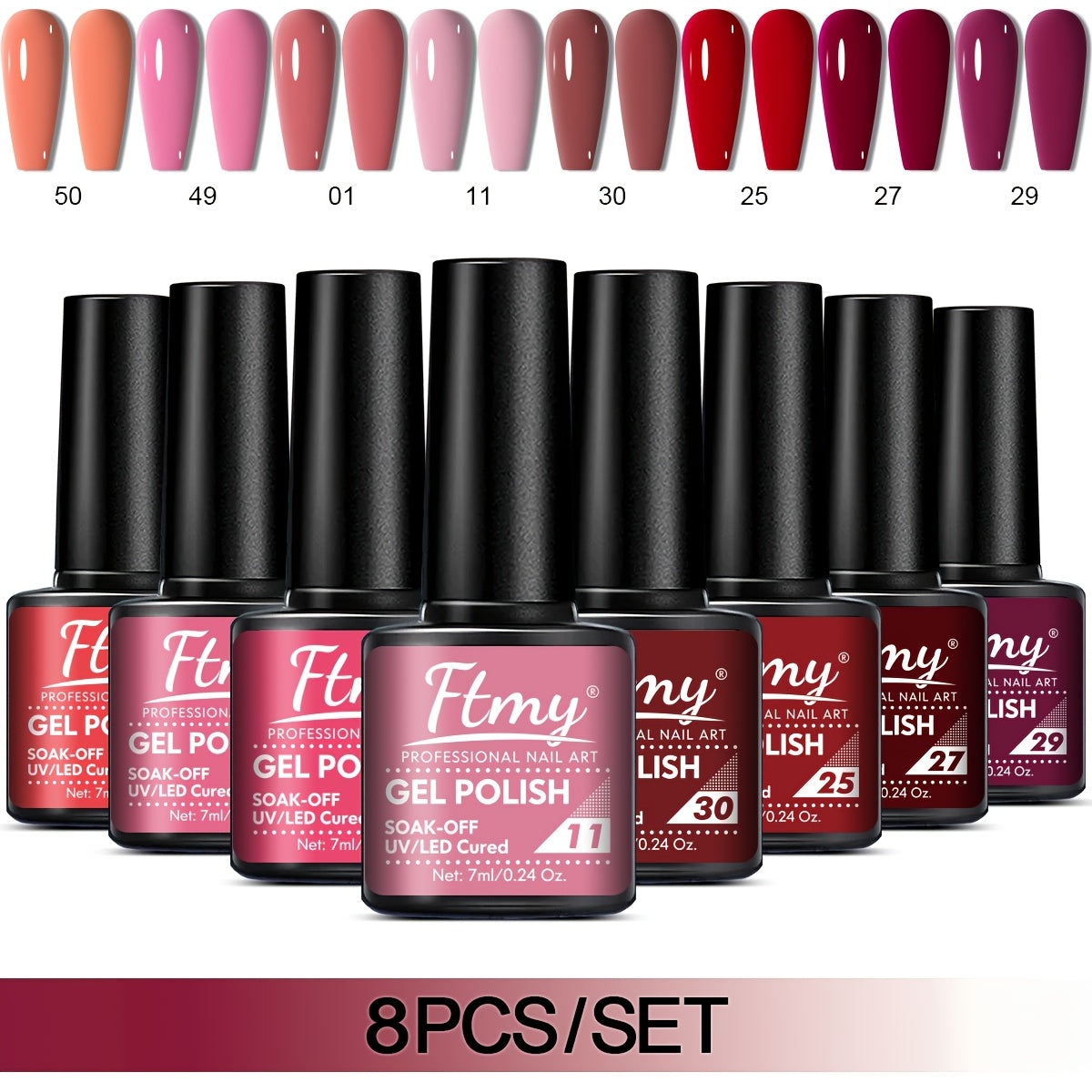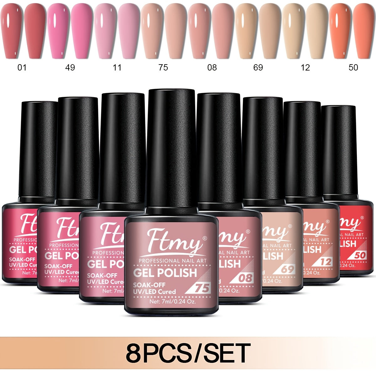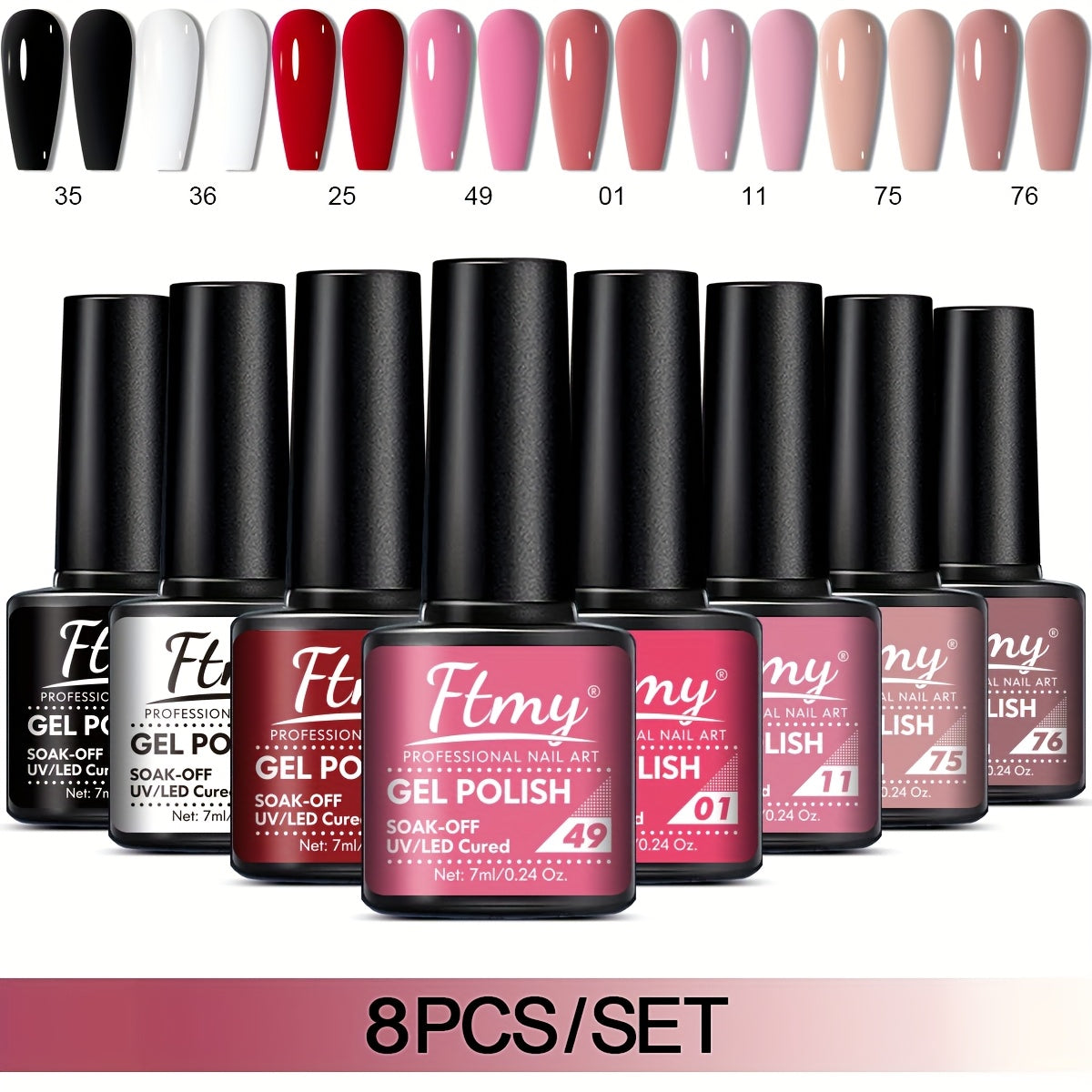 [Long-Lasting Nail Gel] 8pcs Gel Nail Polish Set, Long-Lasting Soak-Off UV LED Nail Gel, Unscented, Solid & Glitter Colors, 7ml Each
