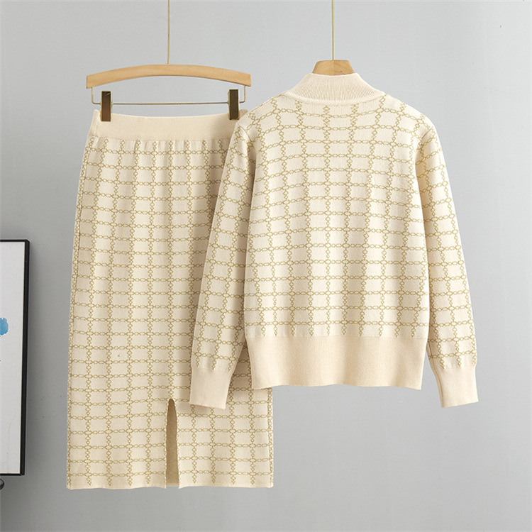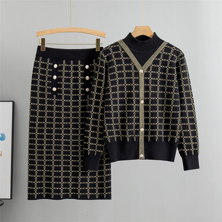 Long Sleeve Knitted Dress Two Piece Women Autumn Winter French High Sense Sheath Skirt Sets