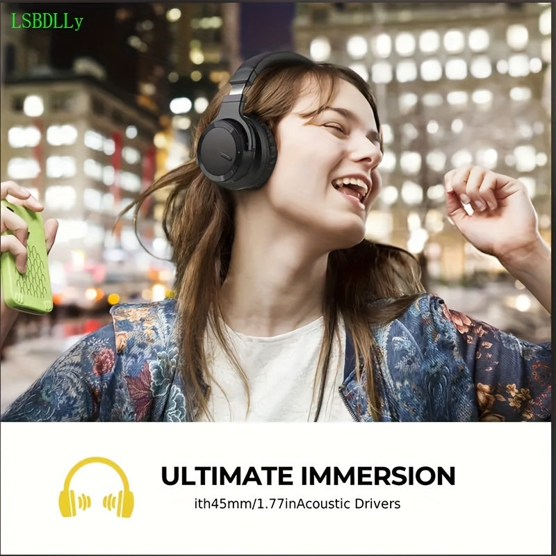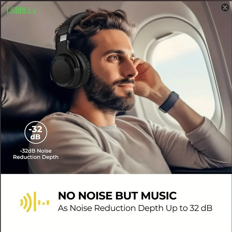 LSBDLLy Casque antibruit actif sans fil, basses riches, appels clairs, 30 heures d'autonomie, confortable et adapté, noir