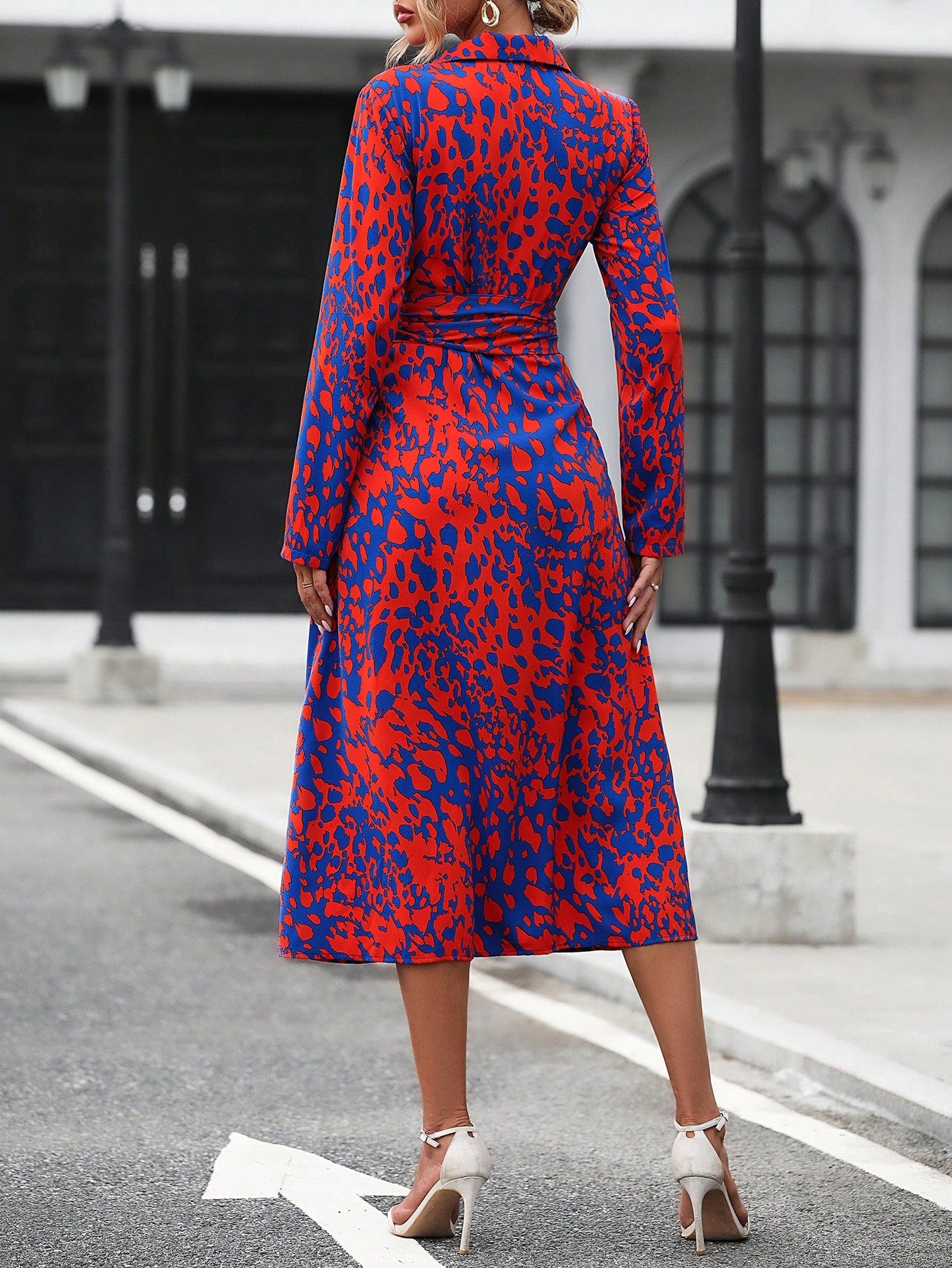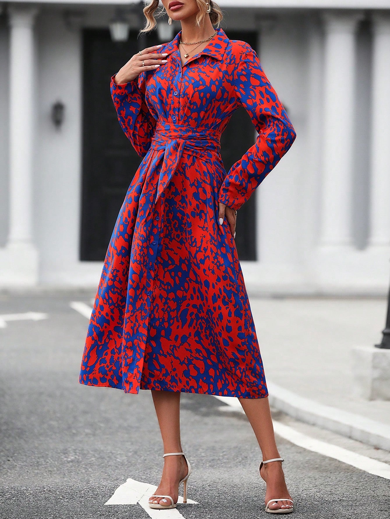 LUNE Allover Print Belted Shirt Dress Maxi Women Outfit