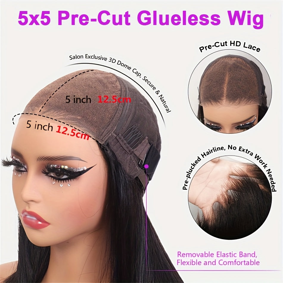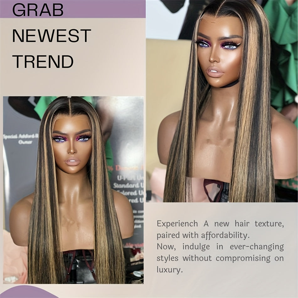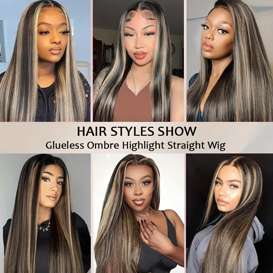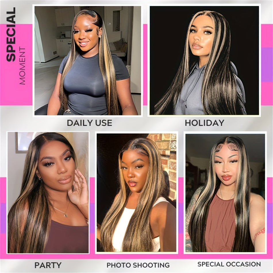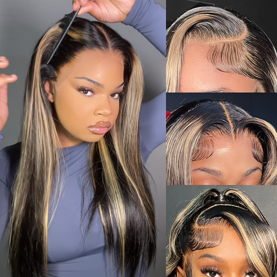 Luxurious 200% Density 5x5 Pre-Cut Lace Front Wig - Bone Straight Blonde Highlights, 100% Brazilian Virgin Human Hair, Natural Hairline, Glueless Design for Women, Ready to Use - Perfect for Everyday or Vacation Style
