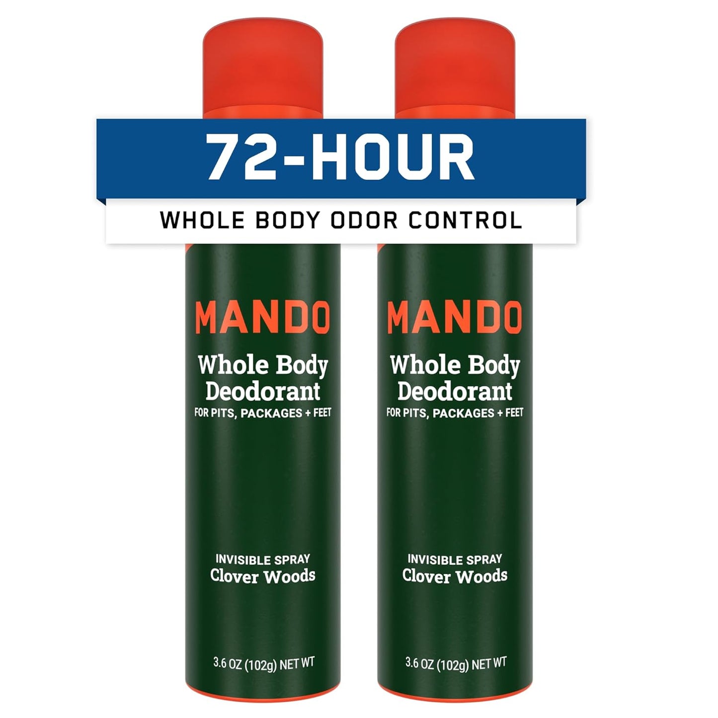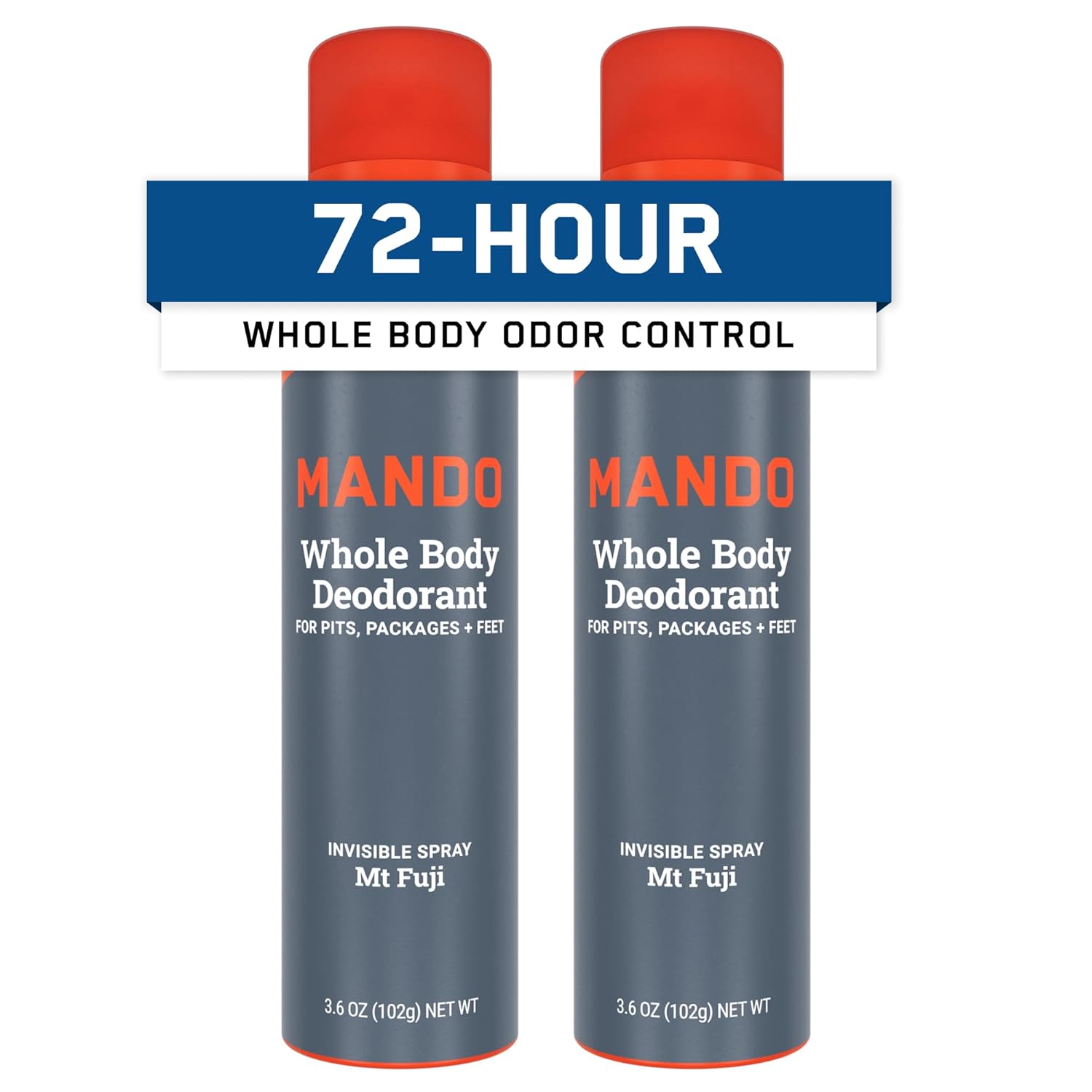 Mando Whole Body Deodorant For Men - Invisible Spray Deodorant - 72 Hour Odor Control - Low Irritation Formula - Aluminum Free, Benzene Free - 3.6 ounce Cans (Pack of 2) - Mt Fuji