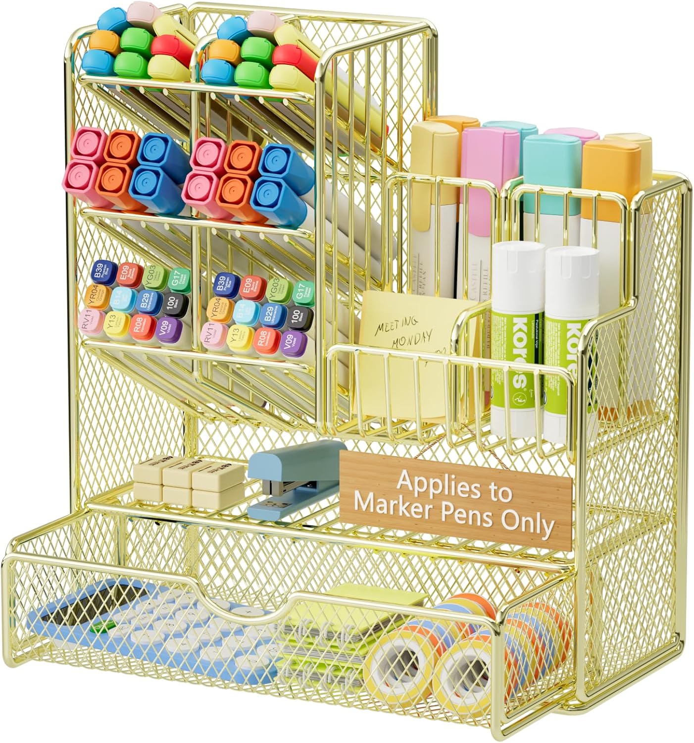 Marbrasse Mesh Pen Holder for Desk, Multi-Functional Pencil Organizer with Drawer, Desk Organizers and Accessories for Office Art Supplies (Black)
